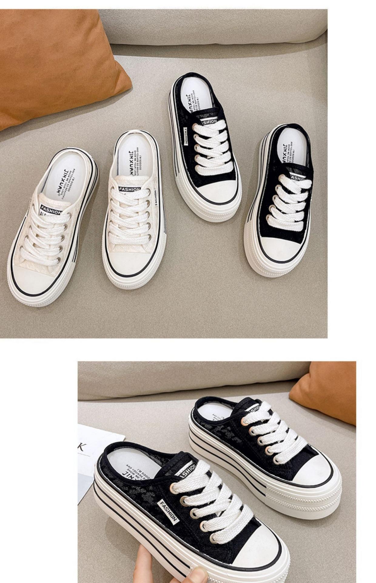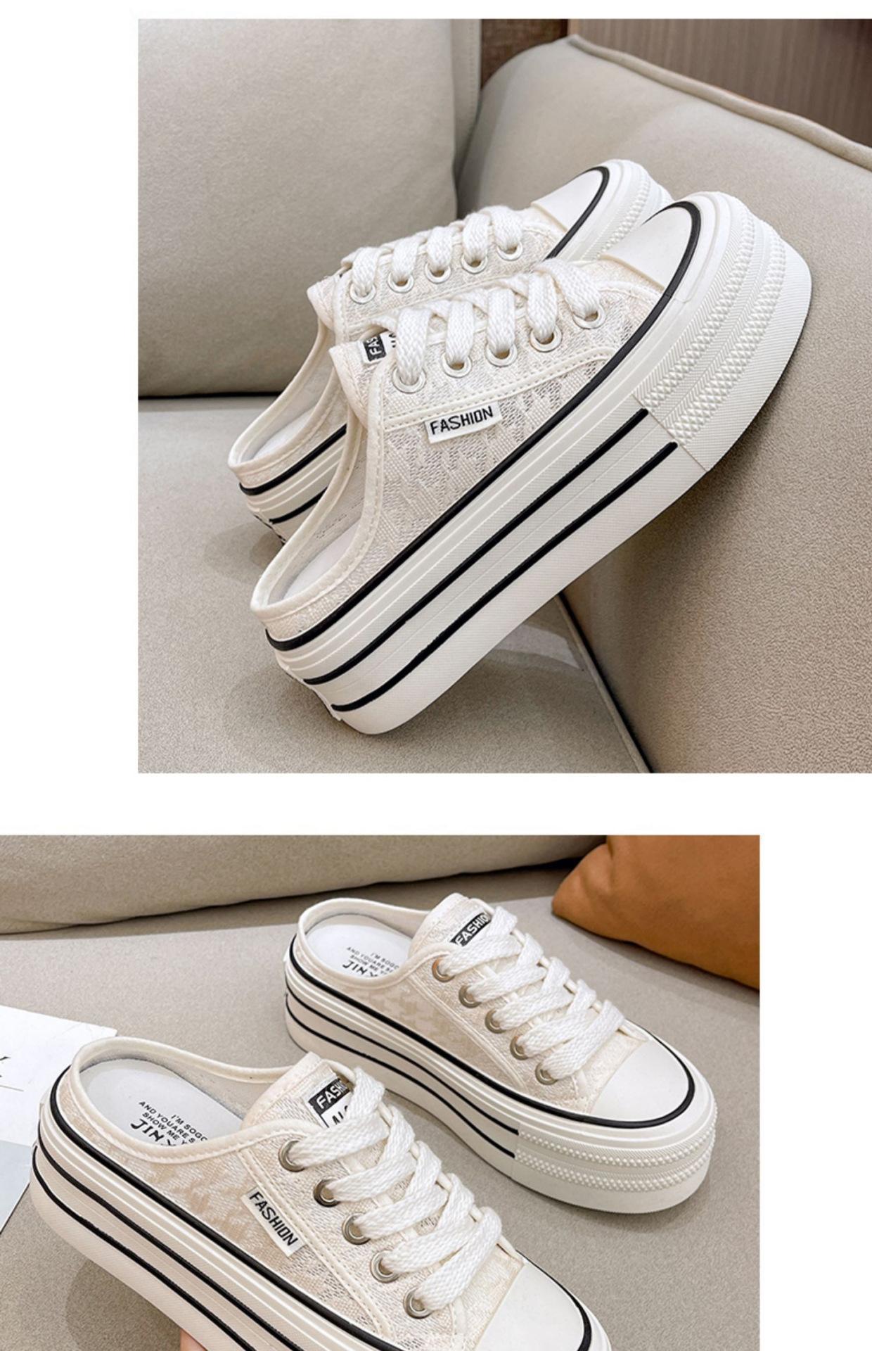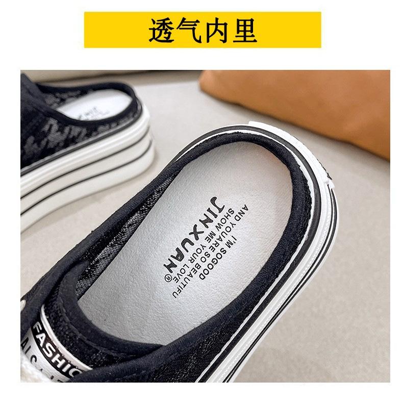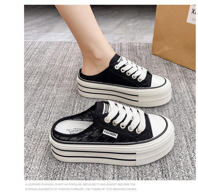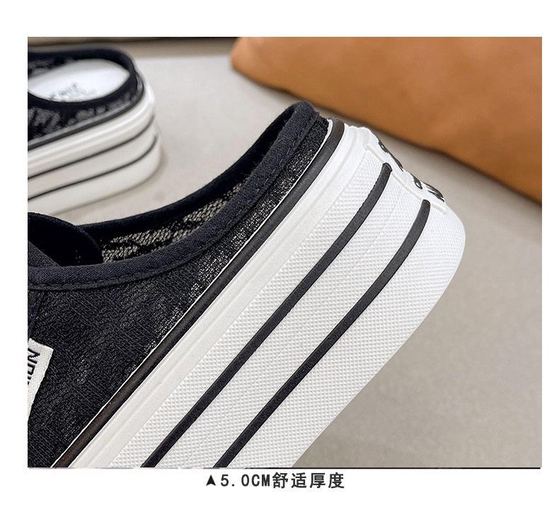 Verano 2025 Nuevo Medio Fondo Ins Encaje Transpirable Plataforma Versátil Zapatos de Suela Gruesa Sandalias de Punta Cerrada para Mujer