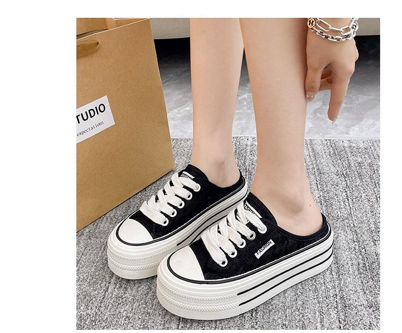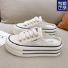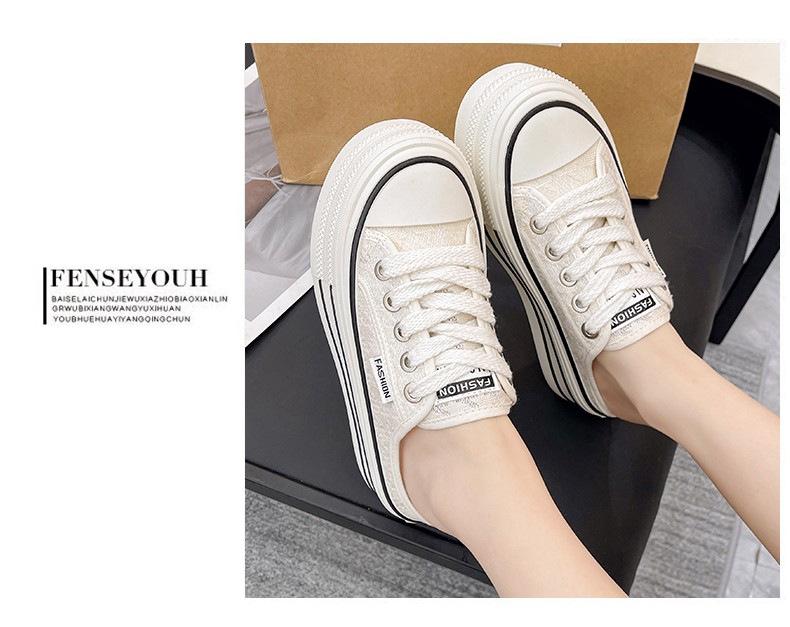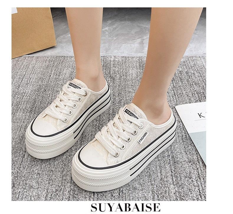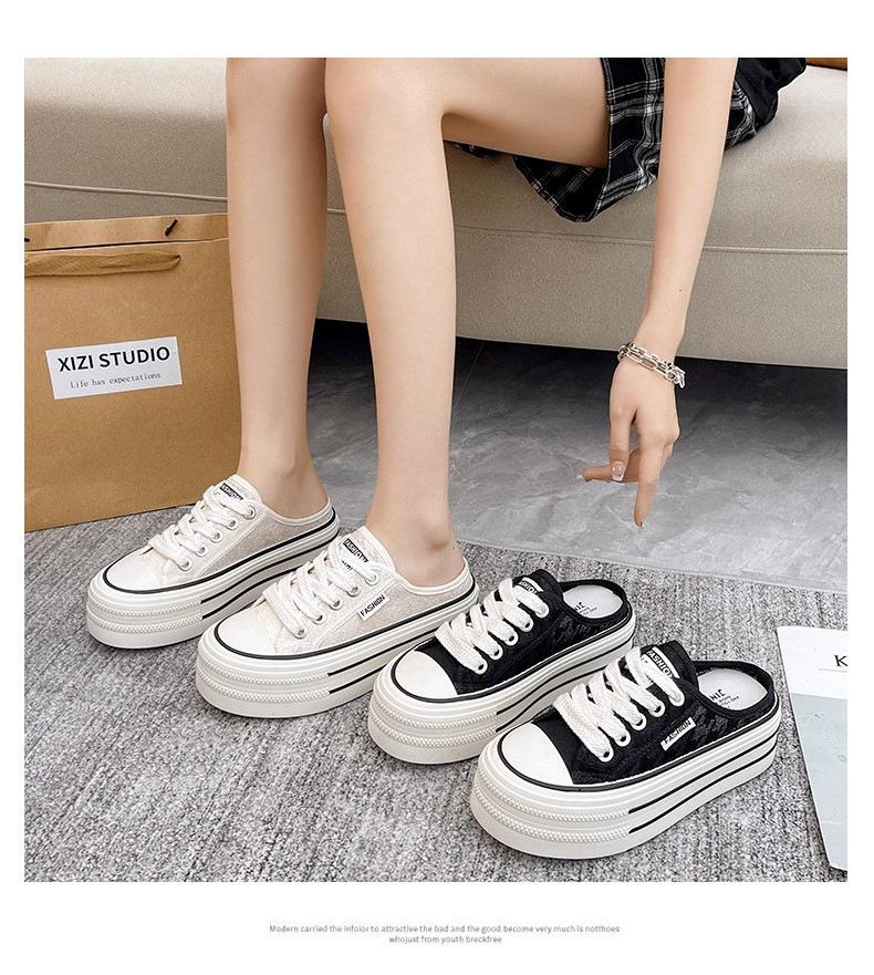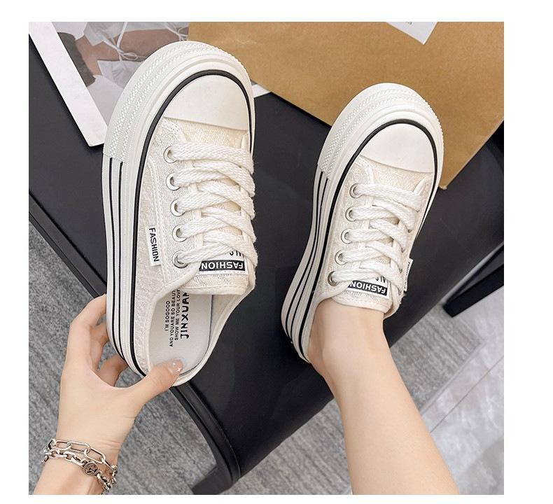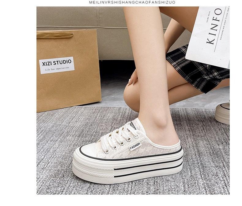 Verano 2025 Nuevo Medio Fondo Ins Encaje Transpirable Plataforma Versátil Zapatos de Suela Gruesa Sandalias de Punta Cerrada para Mujer