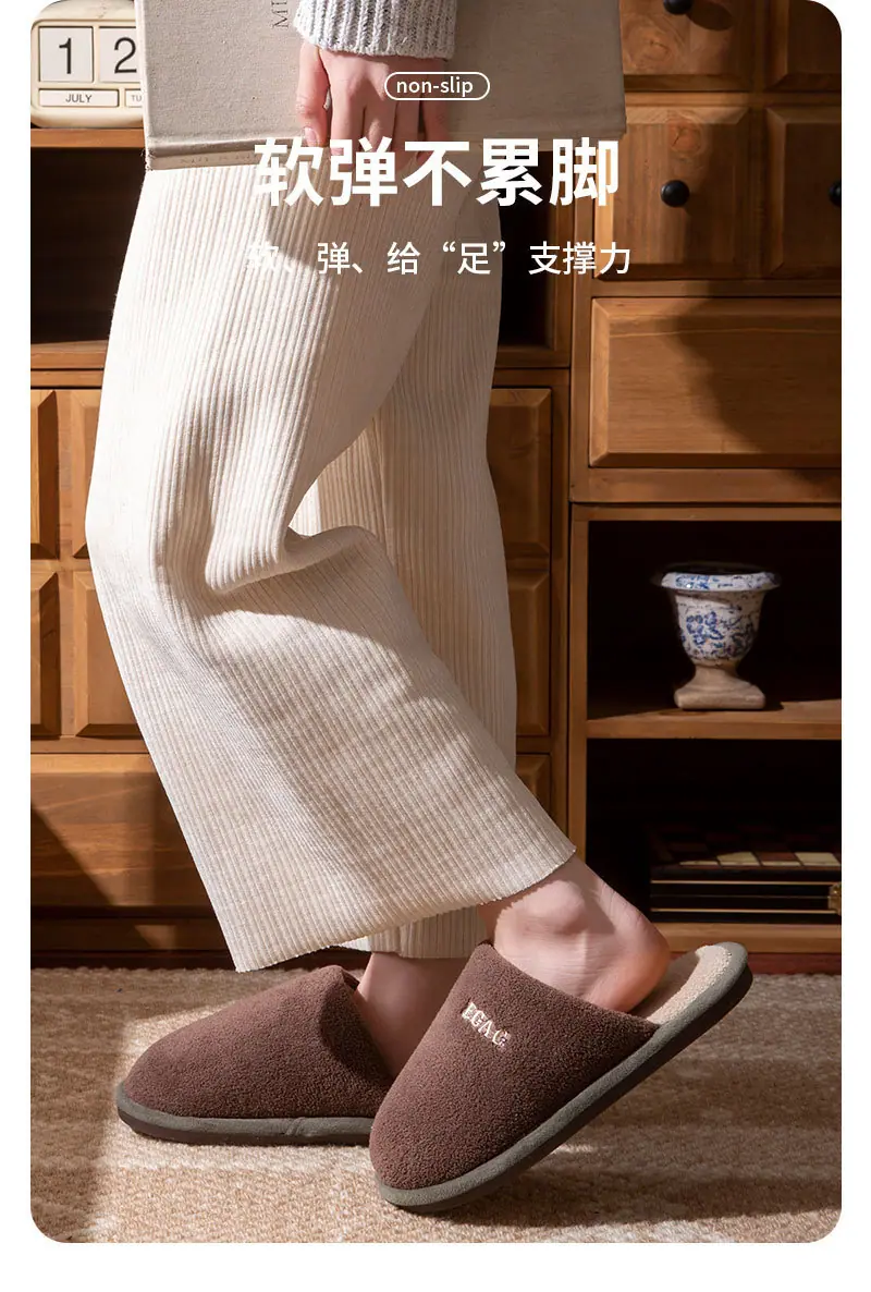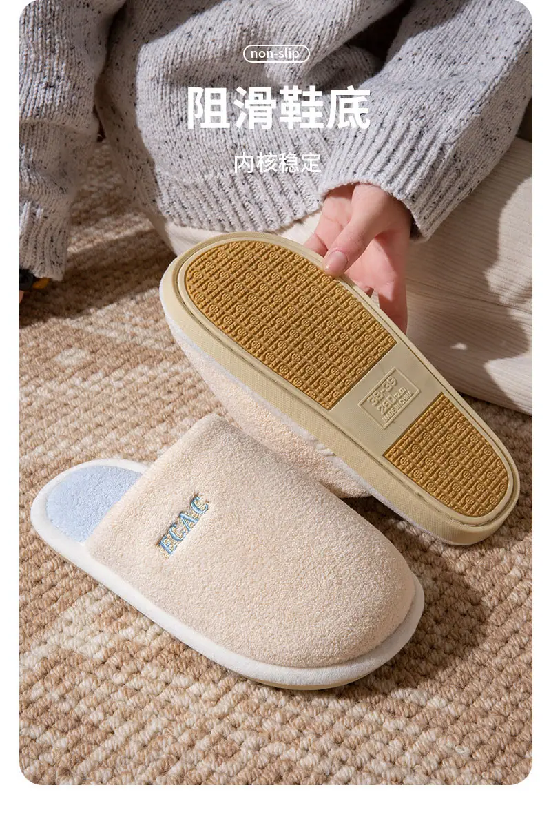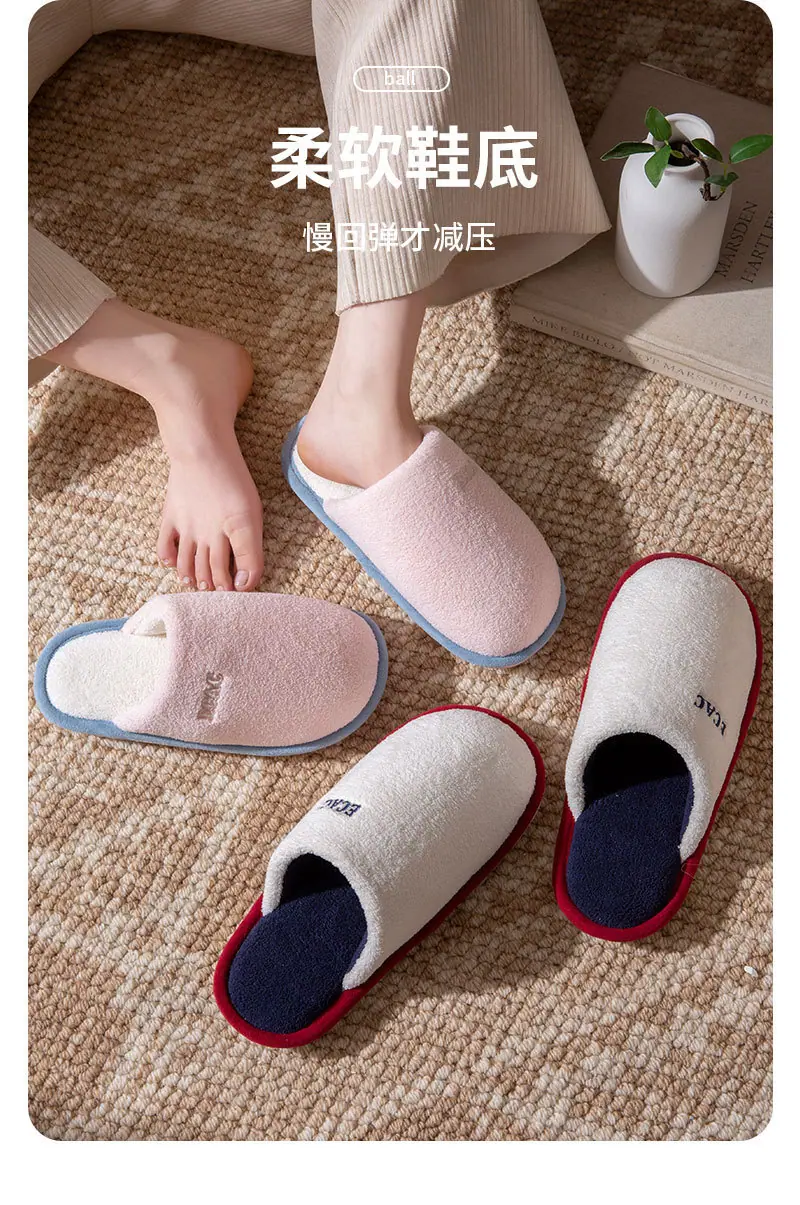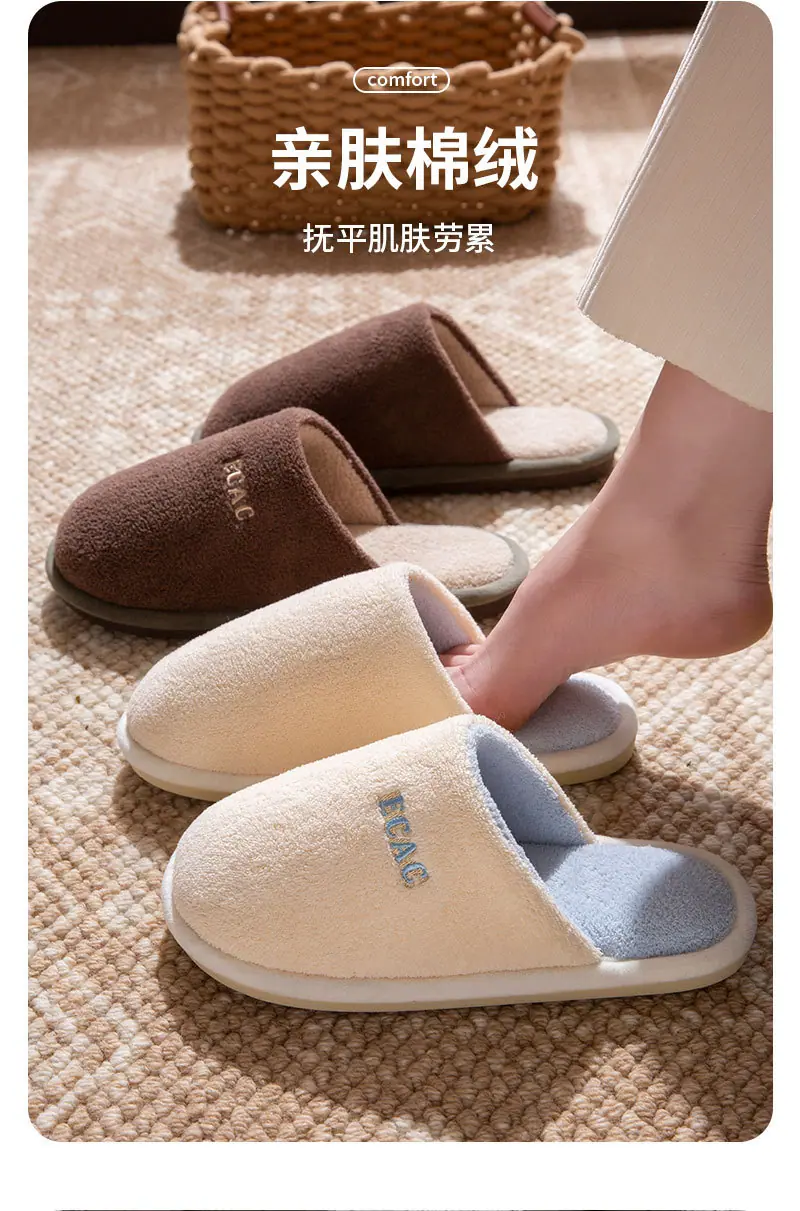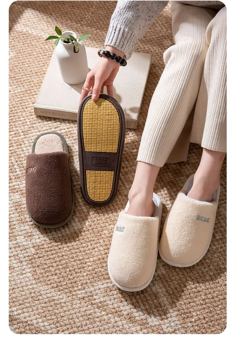 Pantuflas de Algodón Japonés para Mujer Otoño e Invierno Nuevo Pareja Hogar Interior Antideslizantes Puntera Cerrada Zapatos de Confinamiento Pantuflas de Piso para Hombre