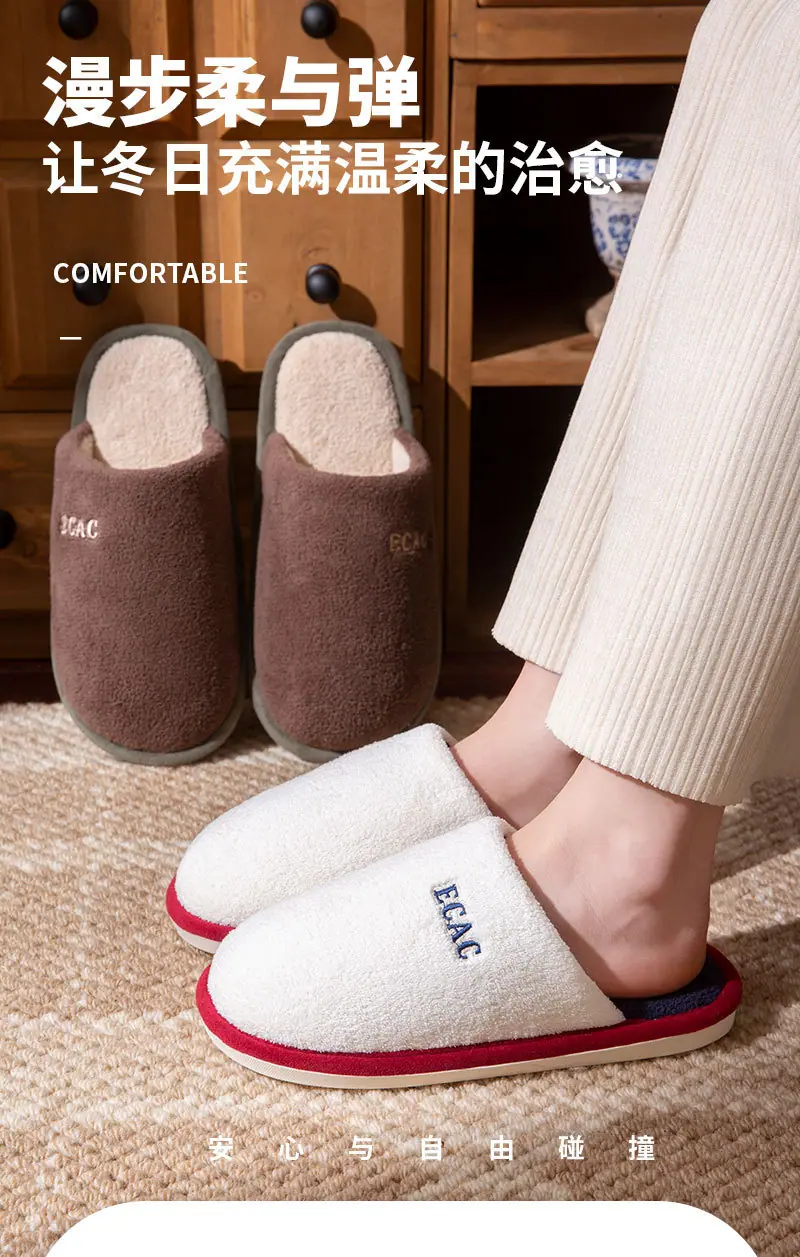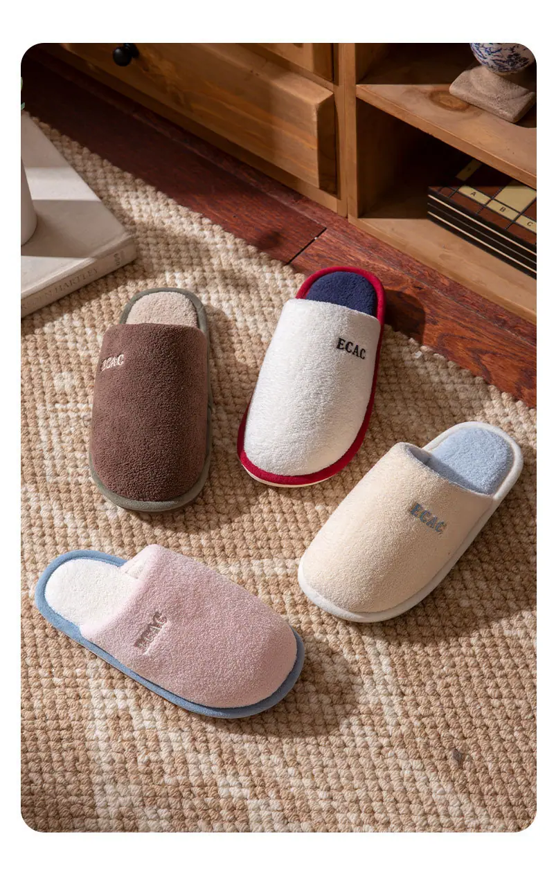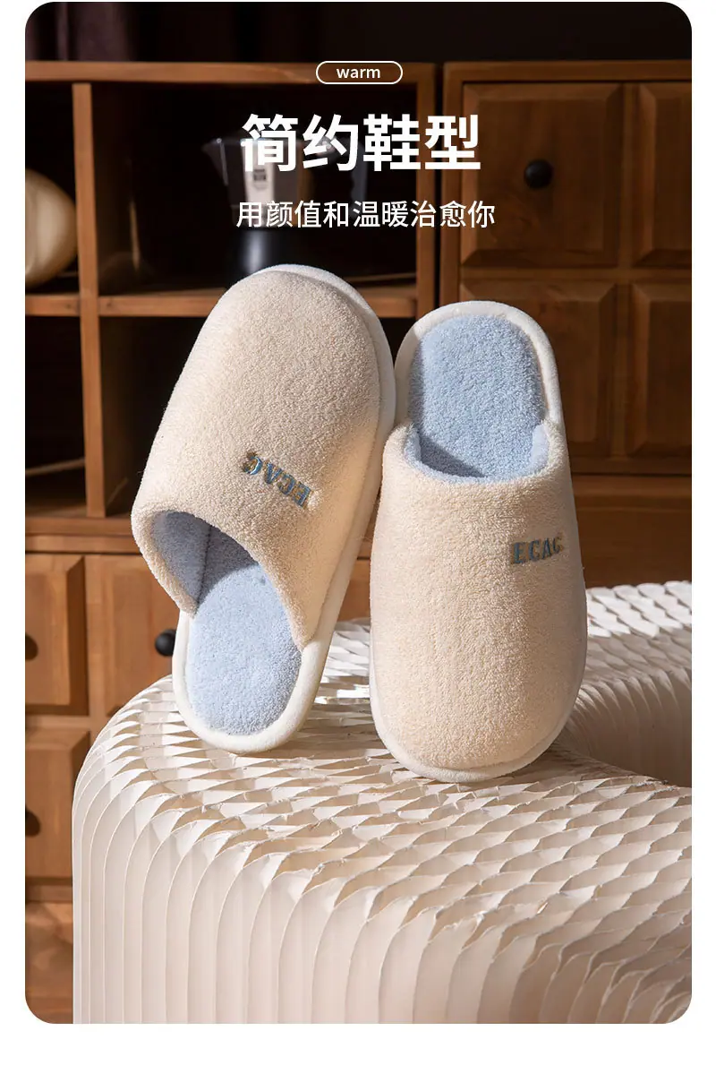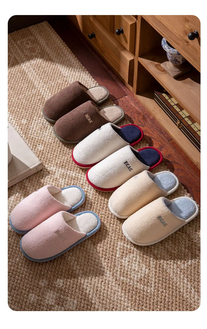 Pantuflas de Algodón Japonés para Mujer Otoño e Invierno Nuevo Pareja Hogar Interior Antideslizantes Puntera Cerrada Zapatos de Confinamiento Pantuflas de Piso para Hombre