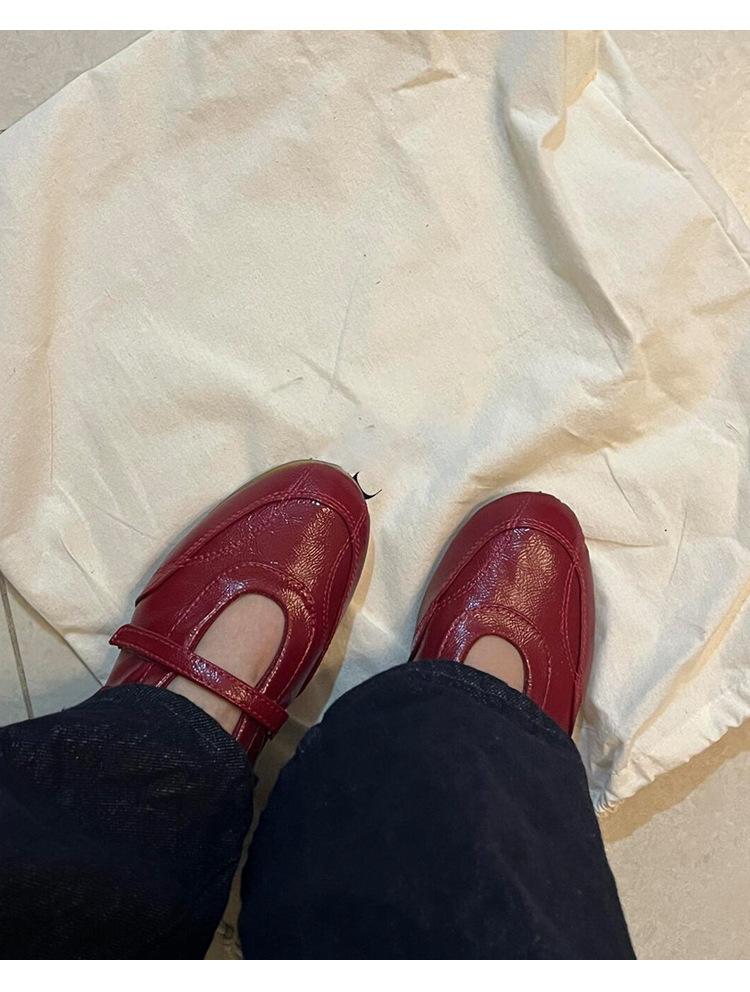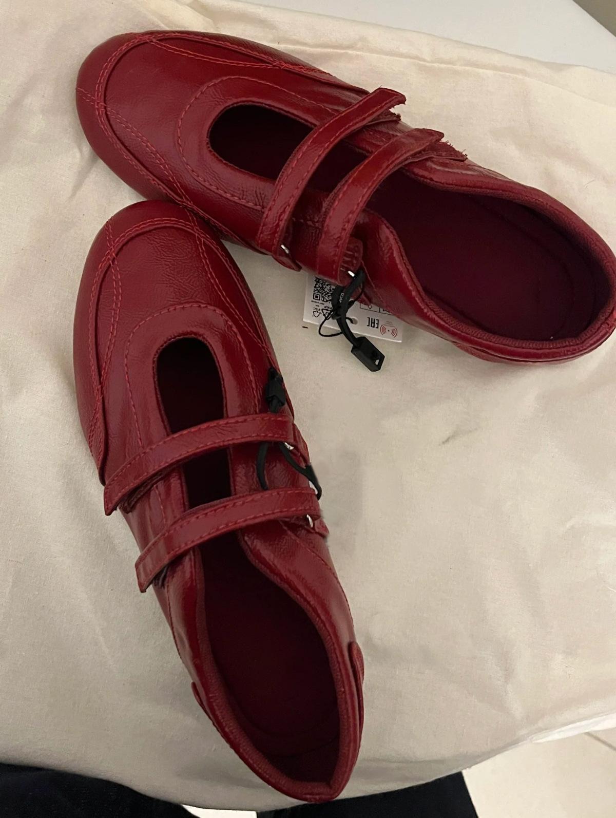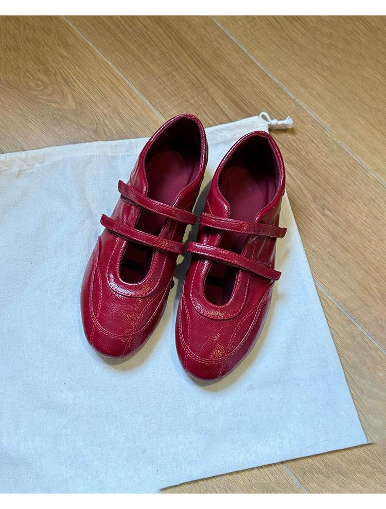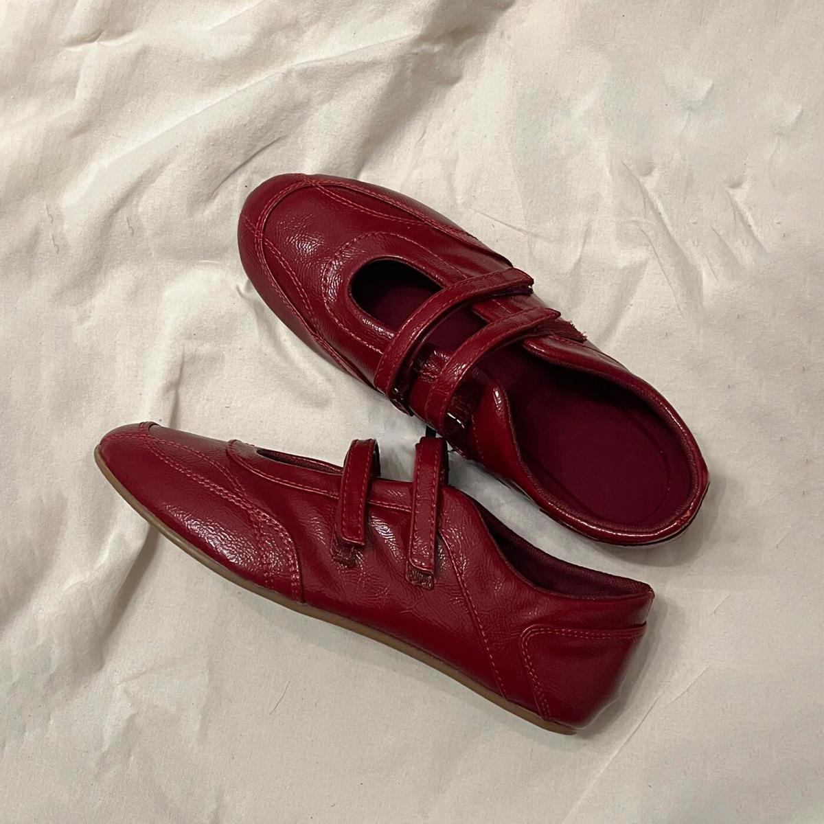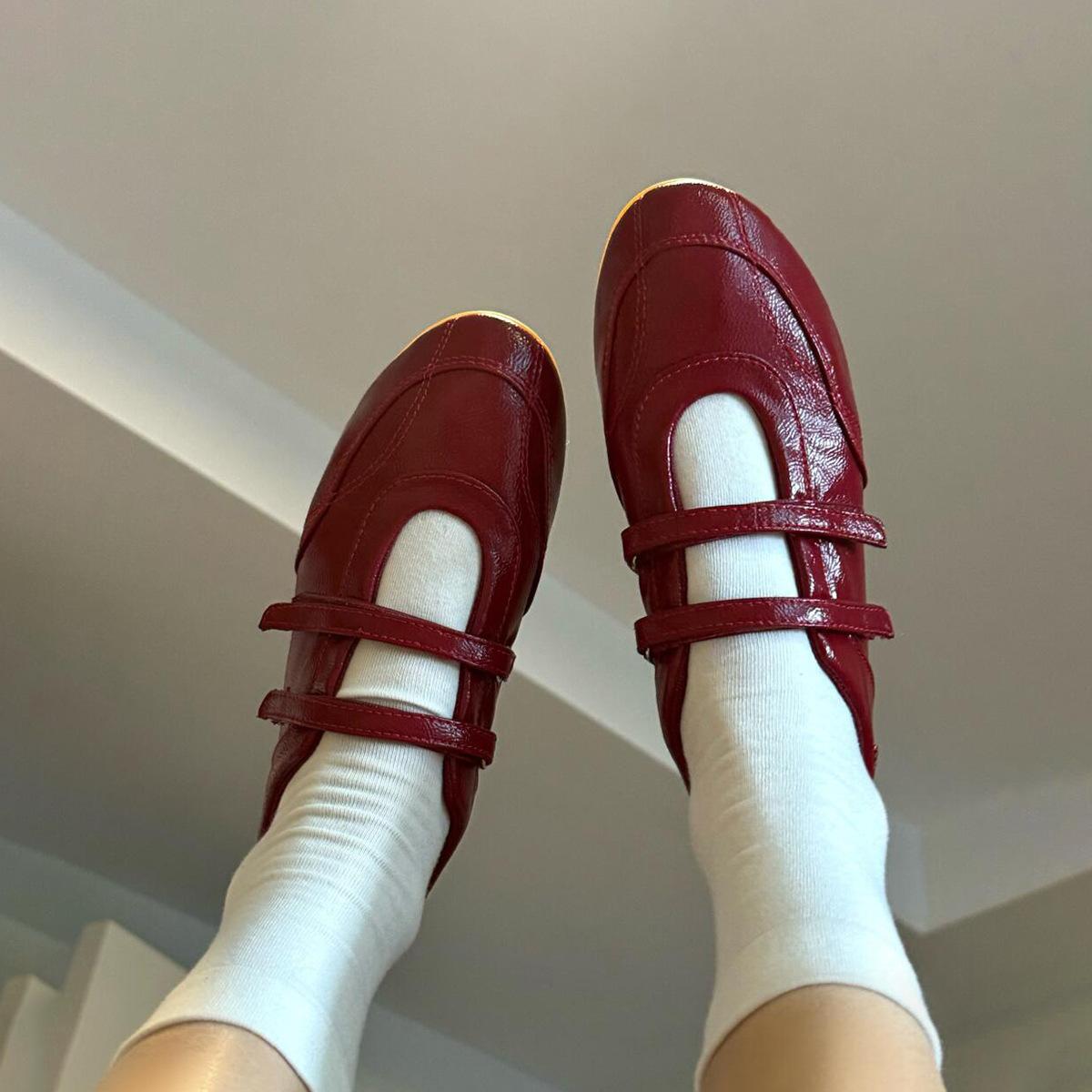 ¡Listo en Stock y Enviado en Segundos! Zapatos Retro Rojos Franceses Mary Jane para Mujer Velcro Casual Zapatos de Ballet Zapatos Planos para Mujer