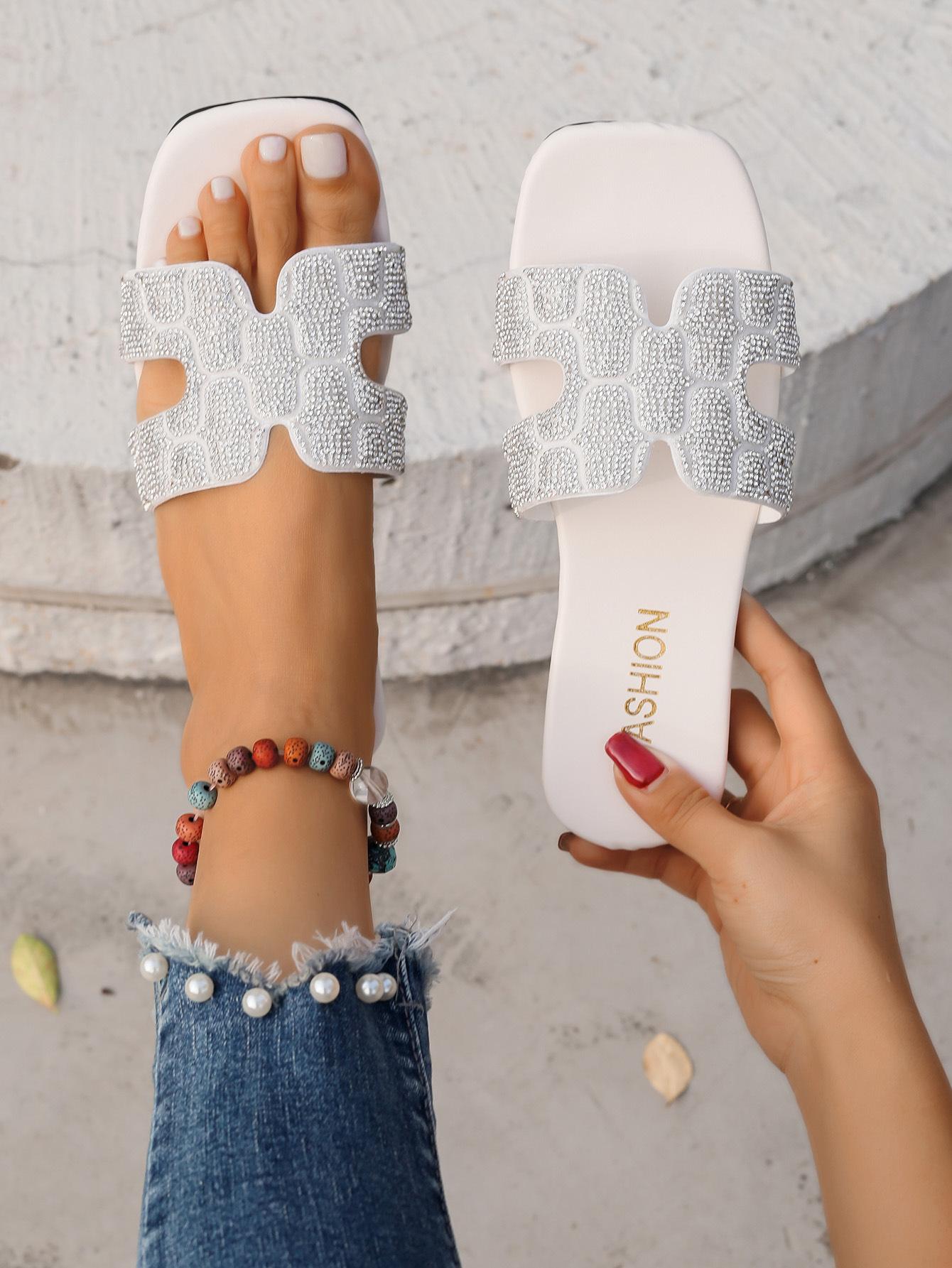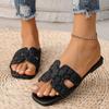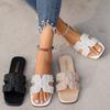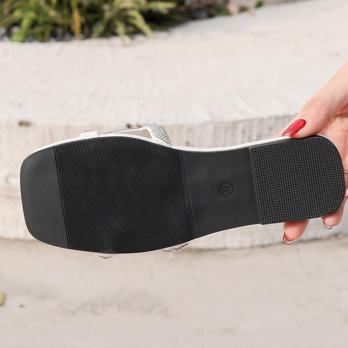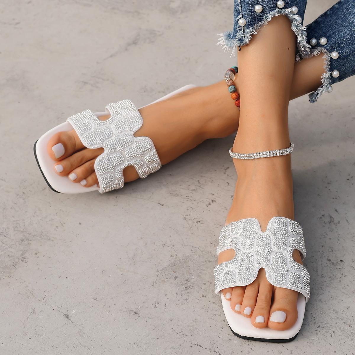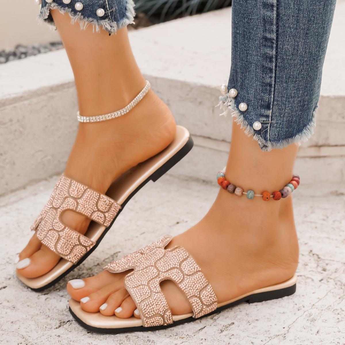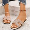 Sandalias de Punta Descubierta para Mujer Primavera y Verano Ropa Exterior 2025 Nuevas Flats Casuales Cómodas con Pedrería Zapatos de Playa Pantuflas Talla Grande