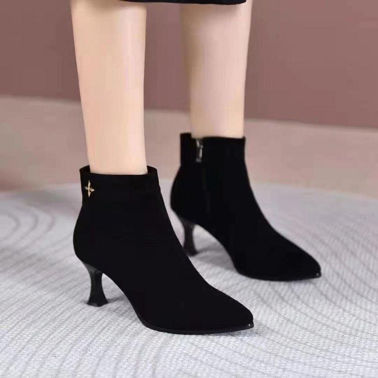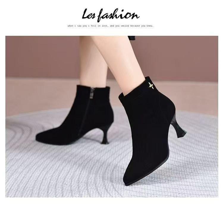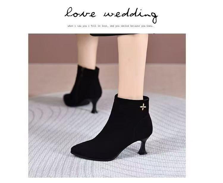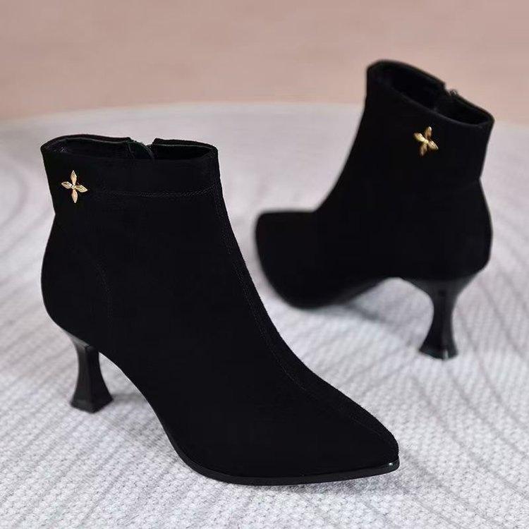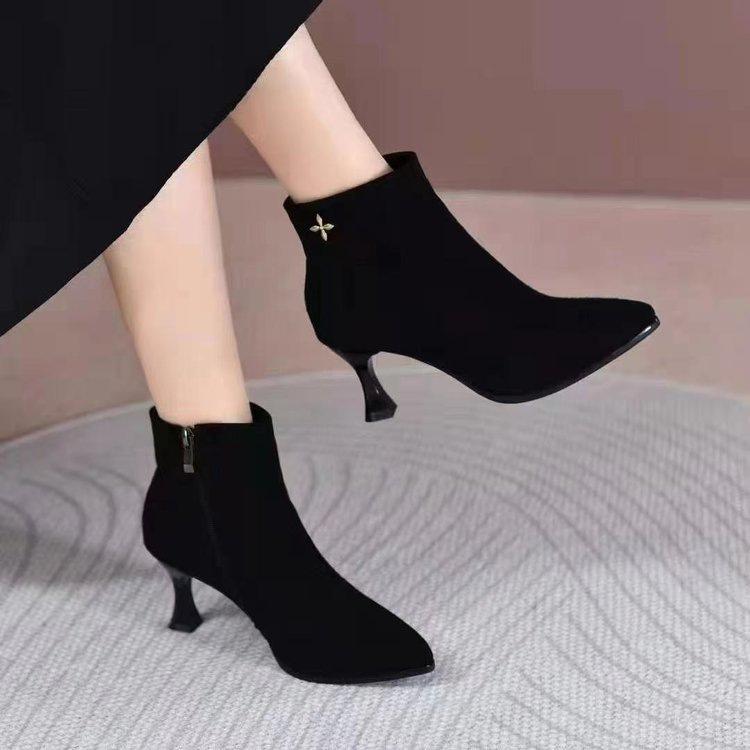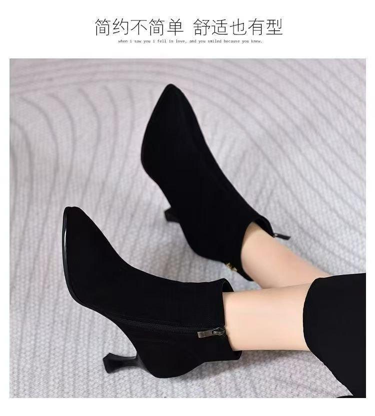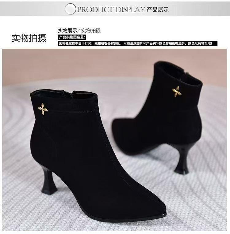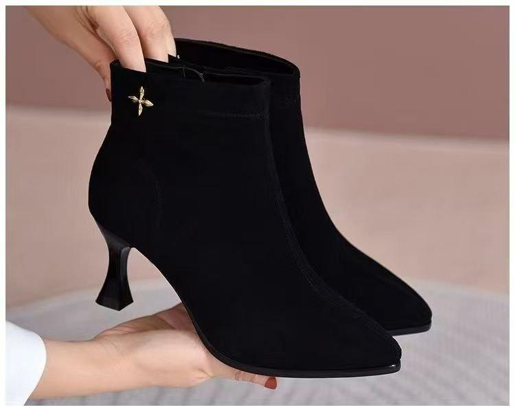Botas de tacón de aguja para mujer, ideales para otoño e invierno. Botas de ante con tacón medio y punta fina, perfectas para otoño e invierno. Botines de ante color nude para mujer.