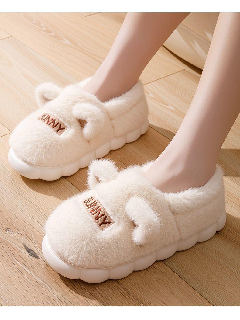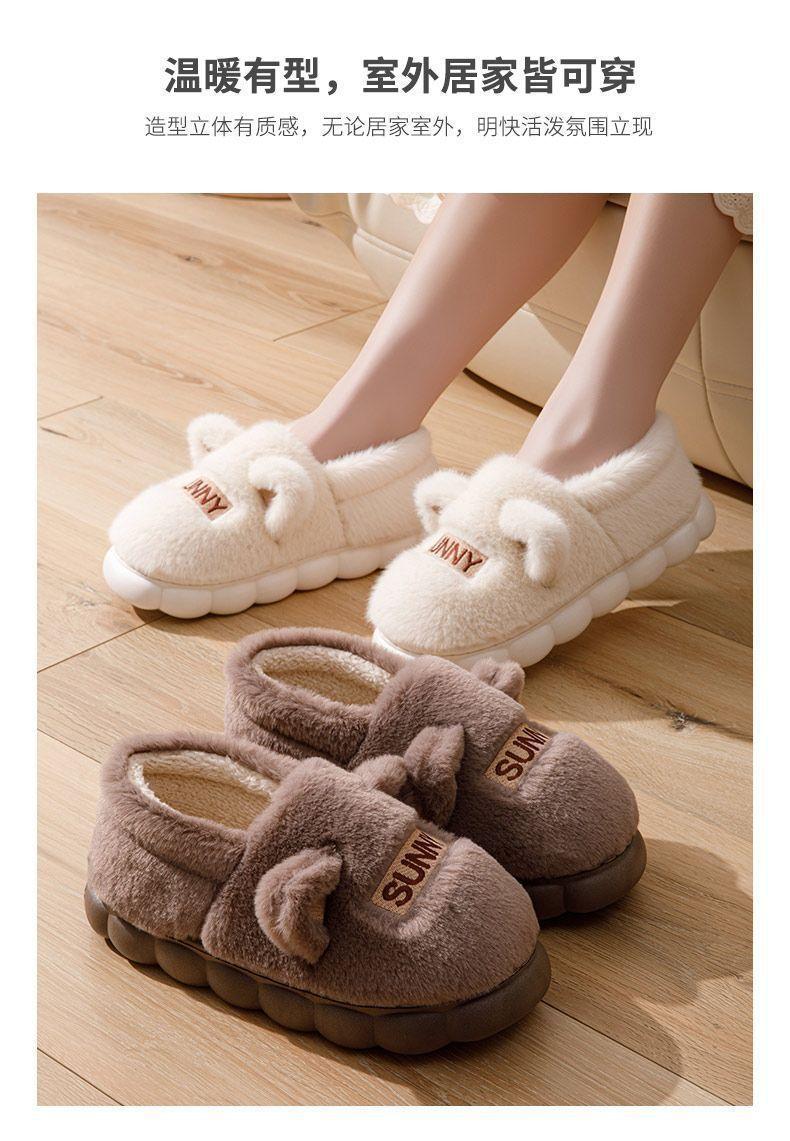 Par Hogar Suela Gruesa Exterior Felpa Cálido Algodón Zapatos Zapatillas de Algodón para Hombre Invierno Nuevo Estilo Talón Cerrado