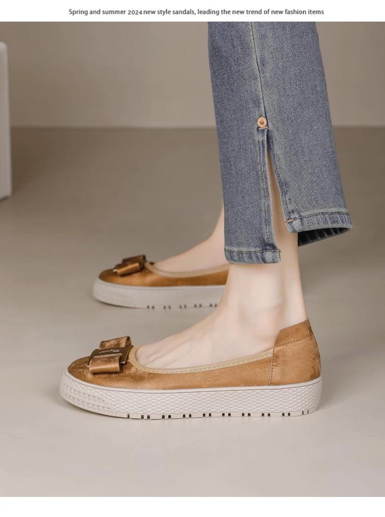 2025 Primavera y Otoño Nuevo Británico Versátil Punta Redonda Corte Bajo Plano Slip-On Perezoso Suela Gruesa Zapatos de Pescador Zapatos Individuales Zapatos de Mujer