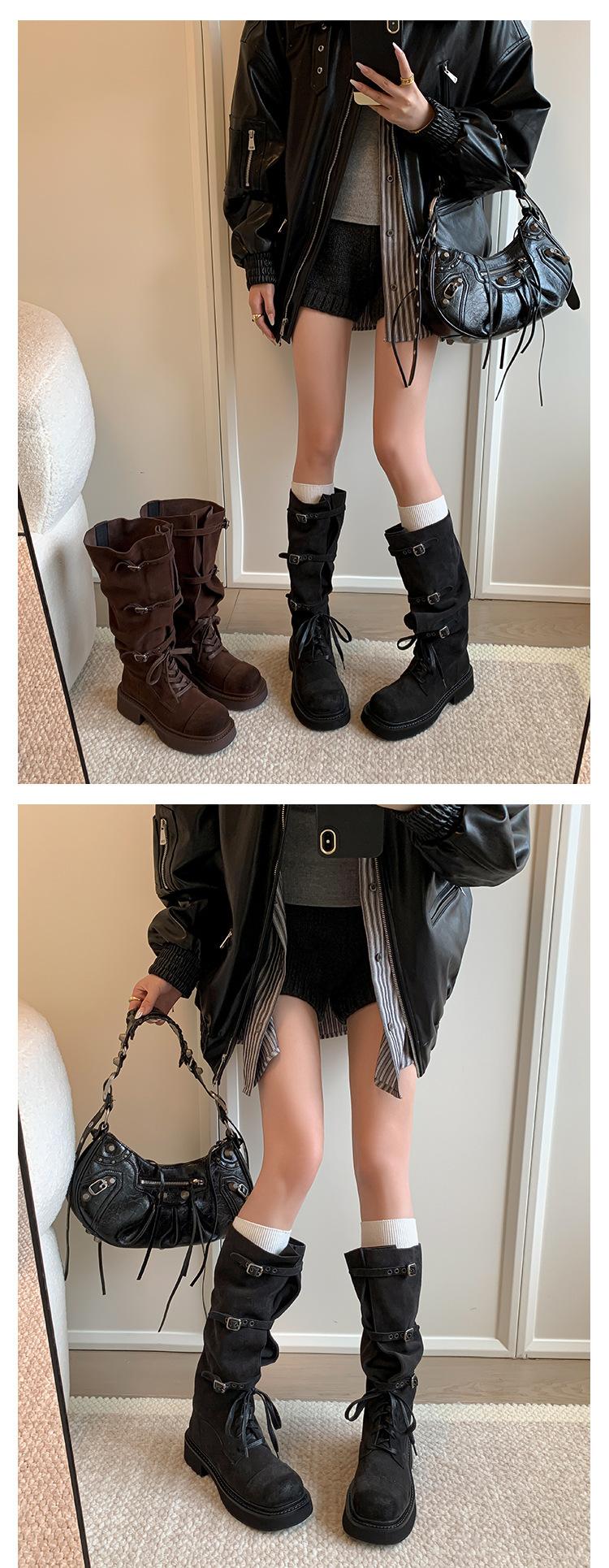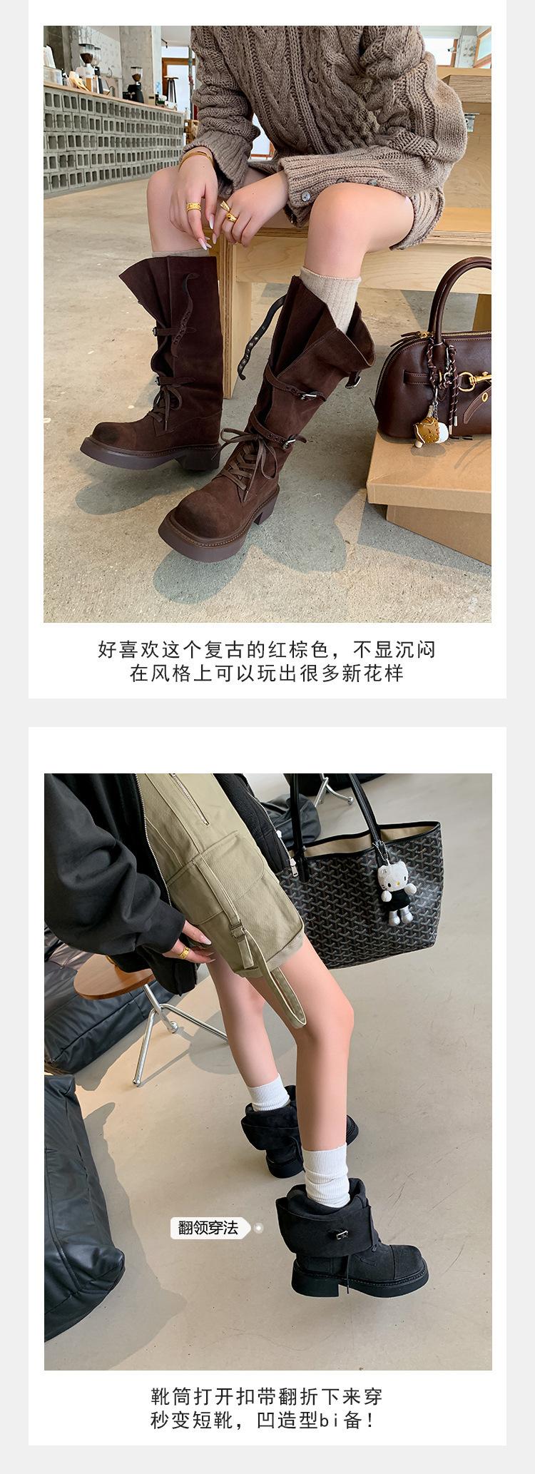 Botas altas hasta la rodilla de punta cuadrada para mujer 2025 Otoño/Invierno Nueva Moda Versátiles Botas de Caballero Tacón Grueso Botas Slouch Modernas