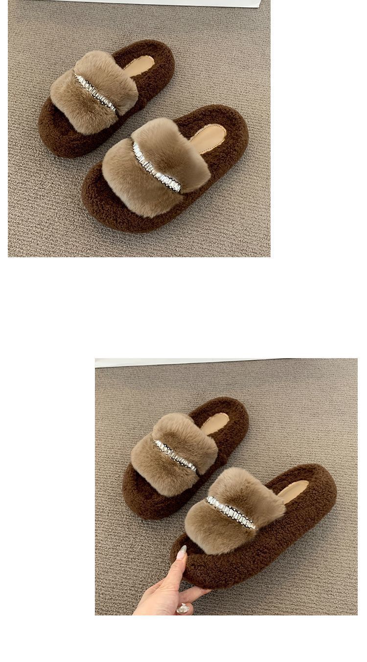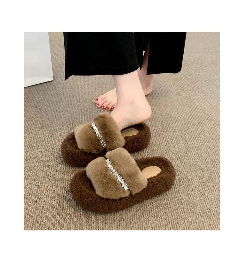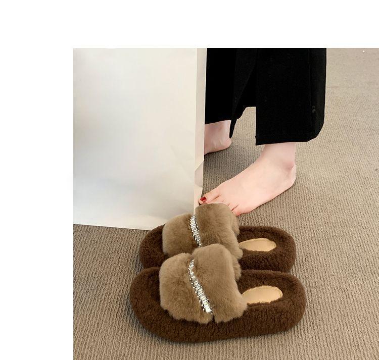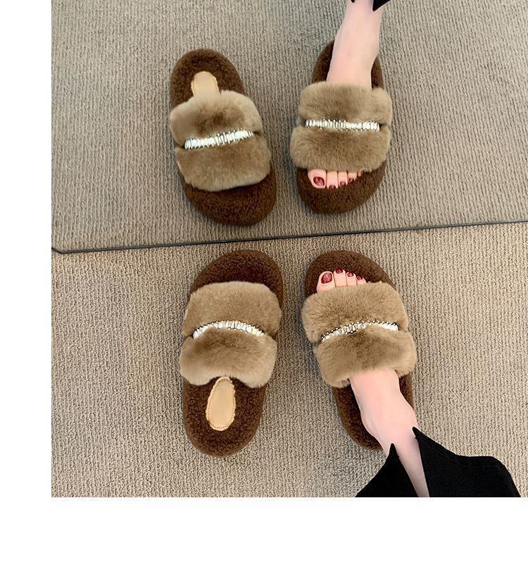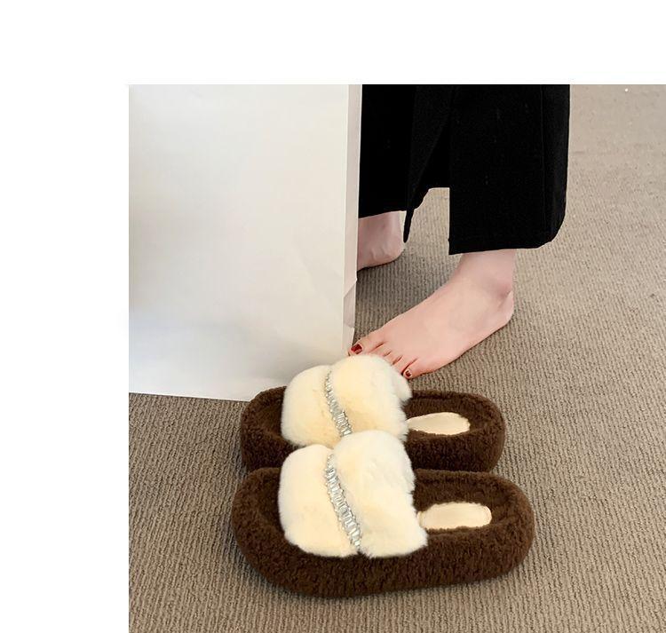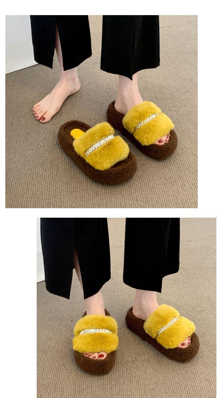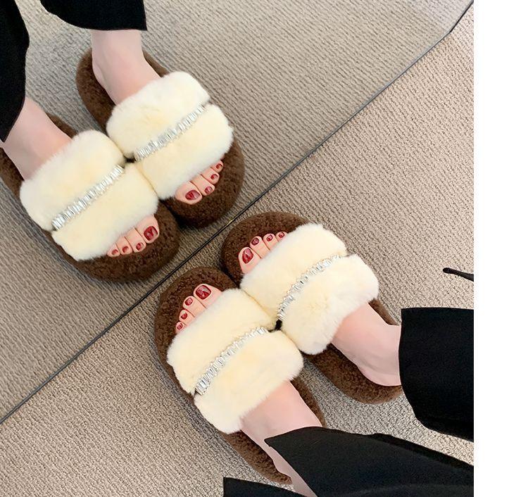 2025 Otoño/Invierno Nuevas Pantuflas Peludas de Suela Gruesa para Mujer Moda Exterior Versátil para Casa Interior/Exterior Pantuflas de Algodón Perezosas para Mujer