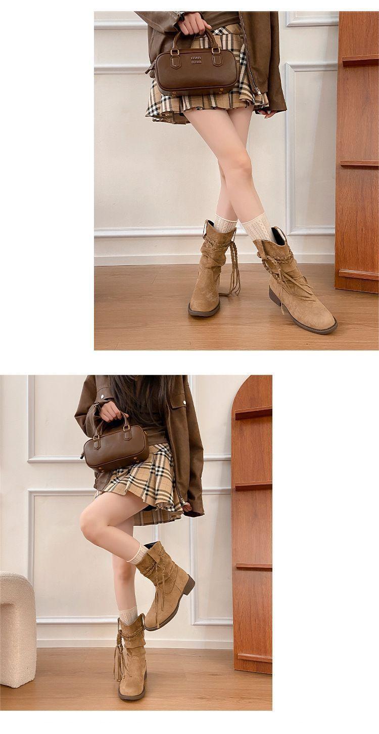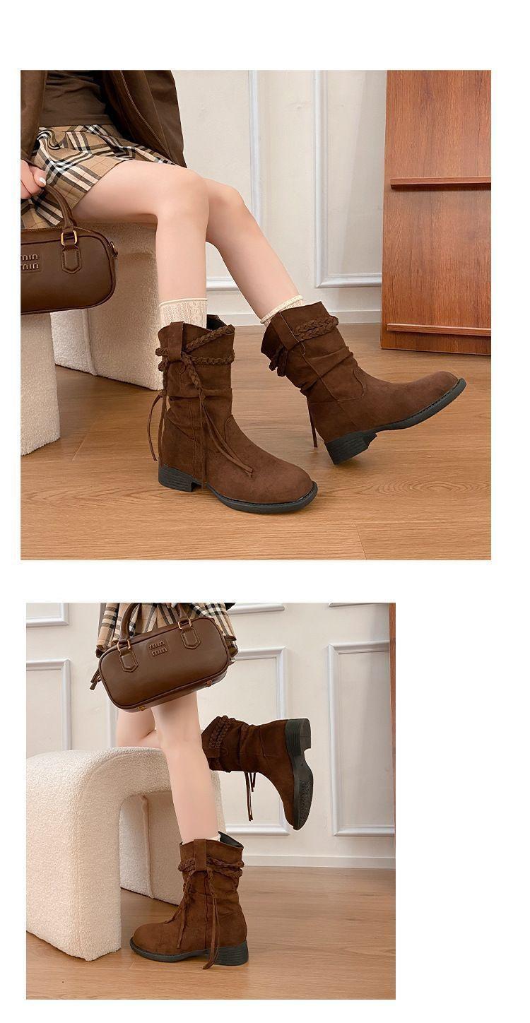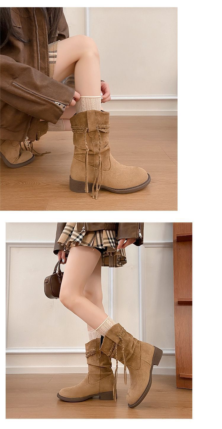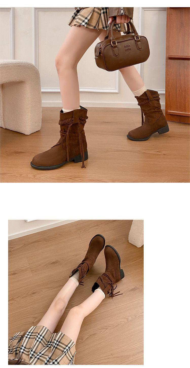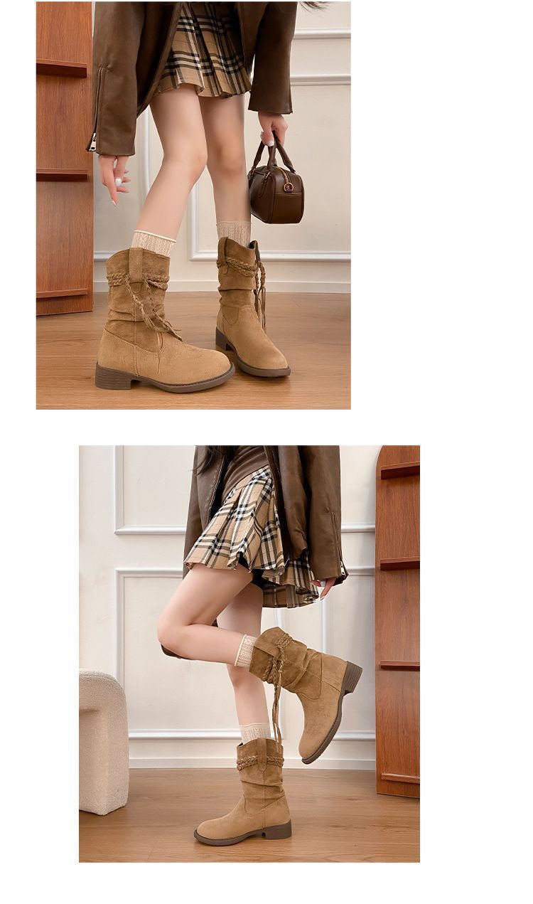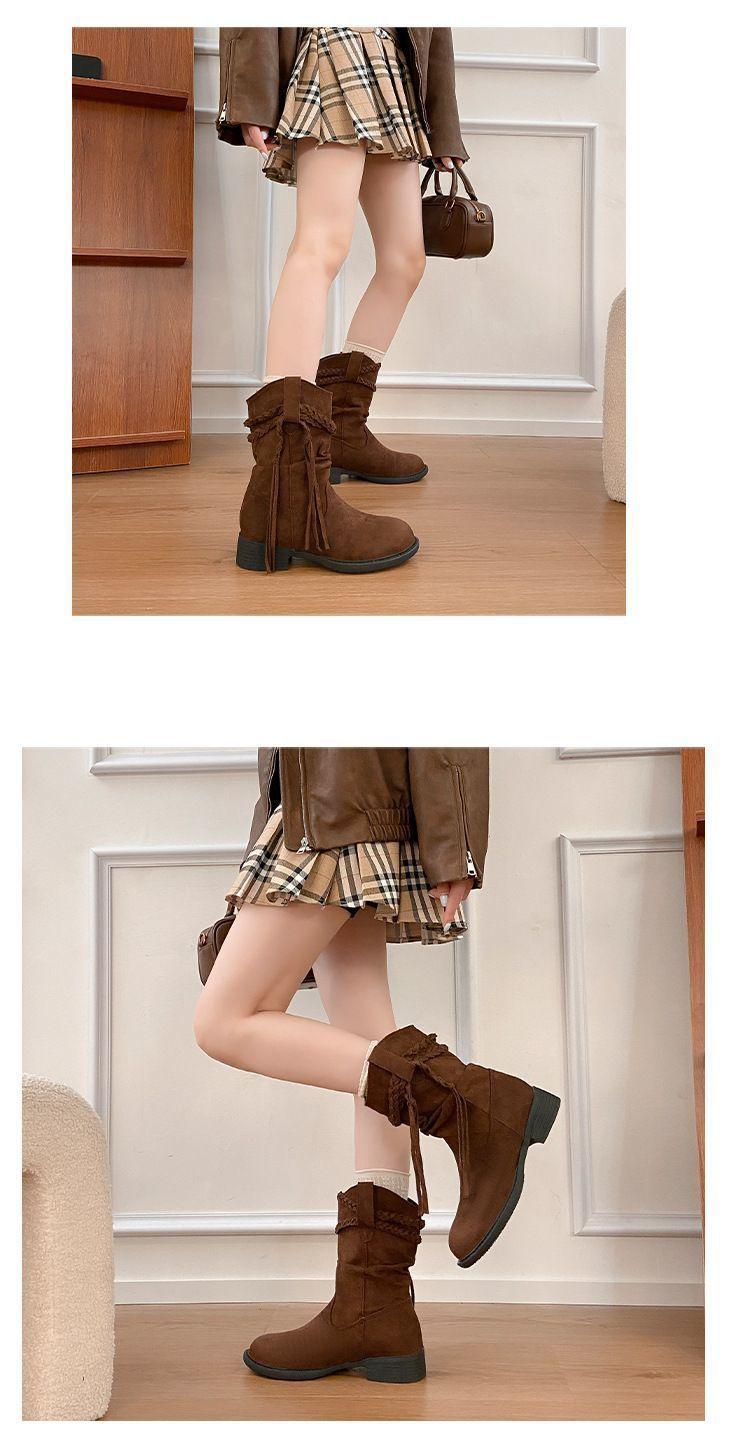 Botas Martin Retro de Punta Redonda y Tacón Grueso para Mujer 2025 Moda Otoño/Invierno Sobre la Rodilla Adelgazantes Apiladas de Media Caña