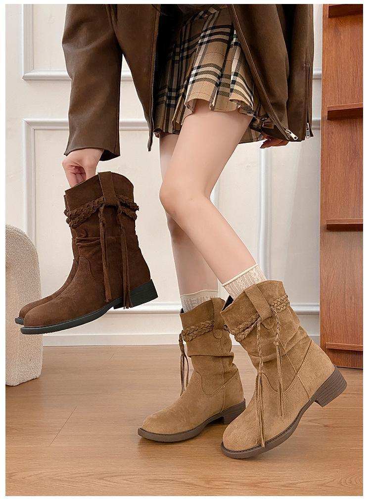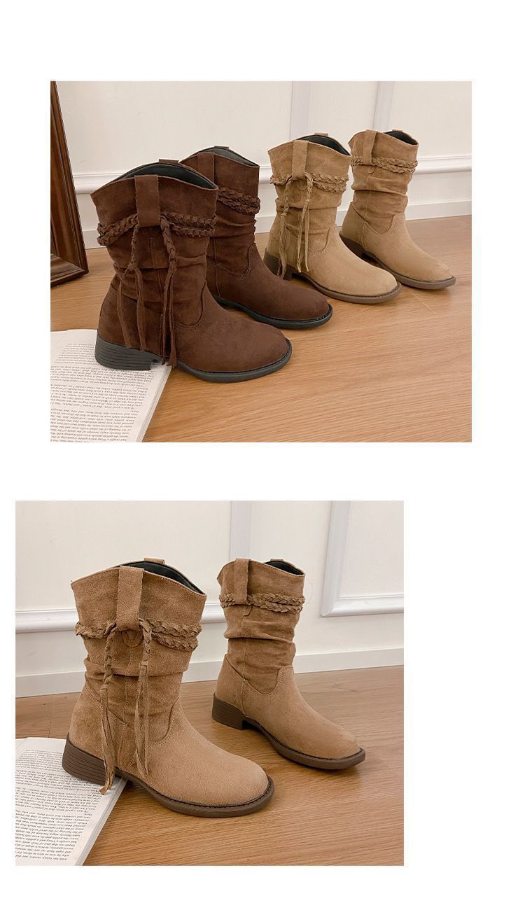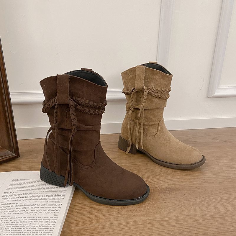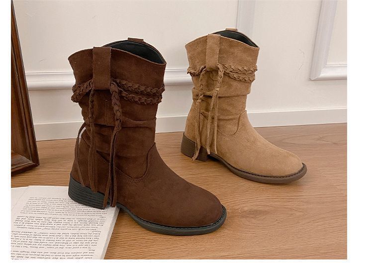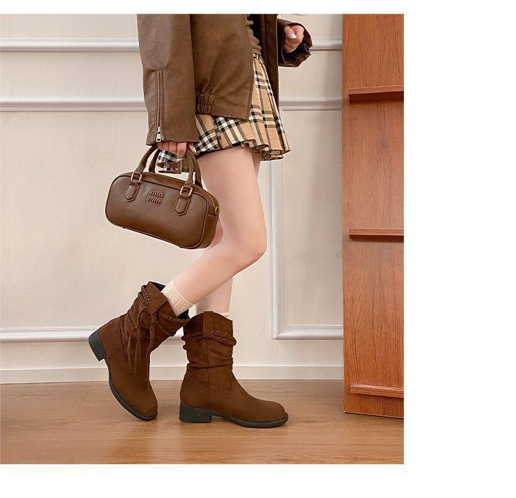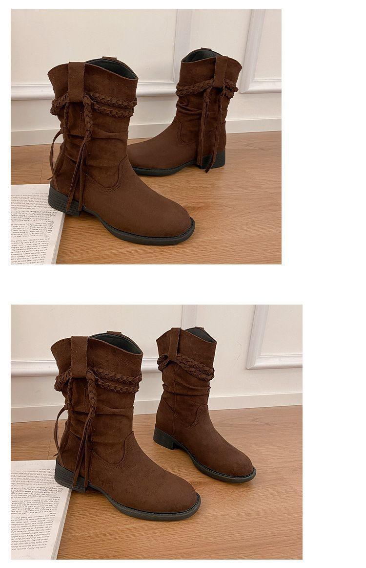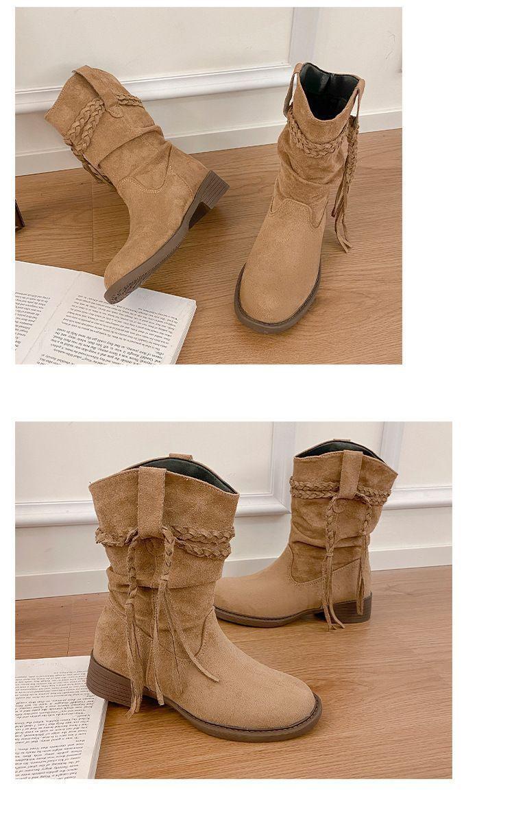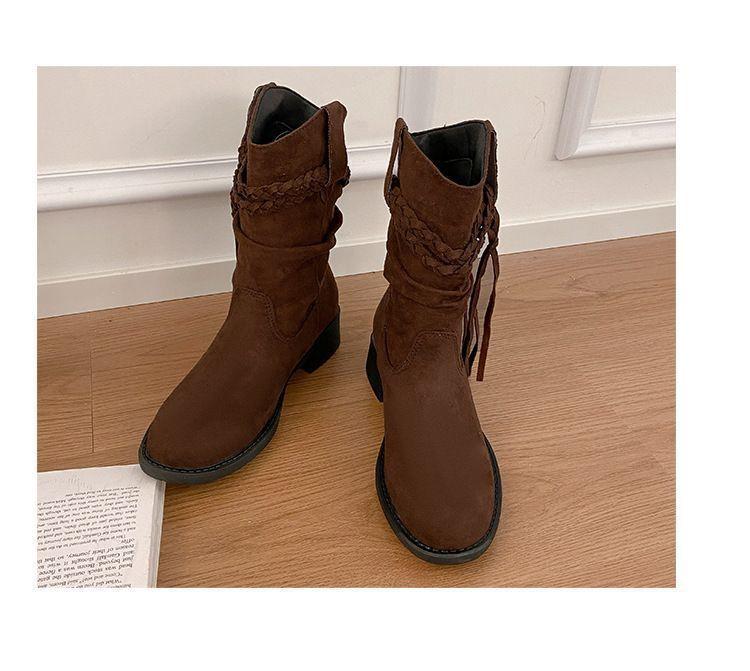 Botas Martin Retro de Punta Redonda y Tacón Grueso para Mujer 2025 Moda Otoño/Invierno Sobre la Rodilla Adelgazantes Apiladas de Media Caña