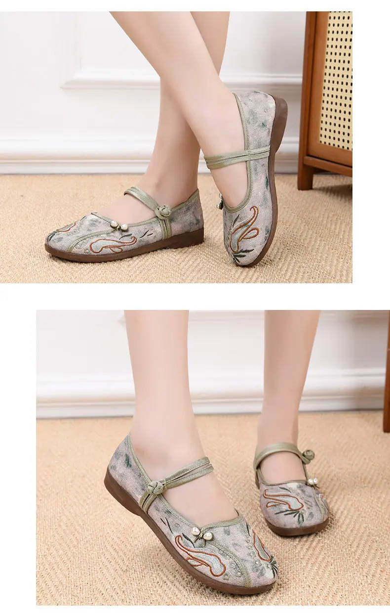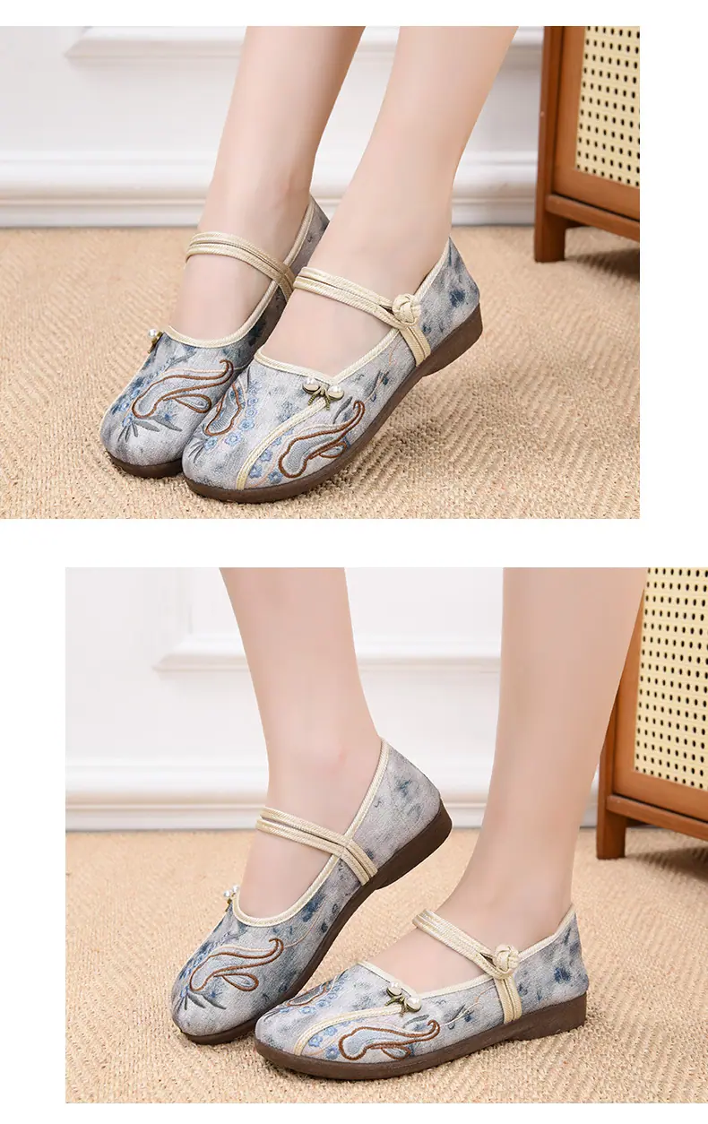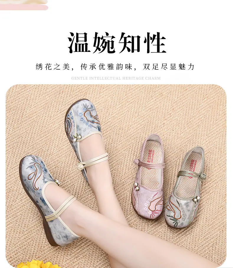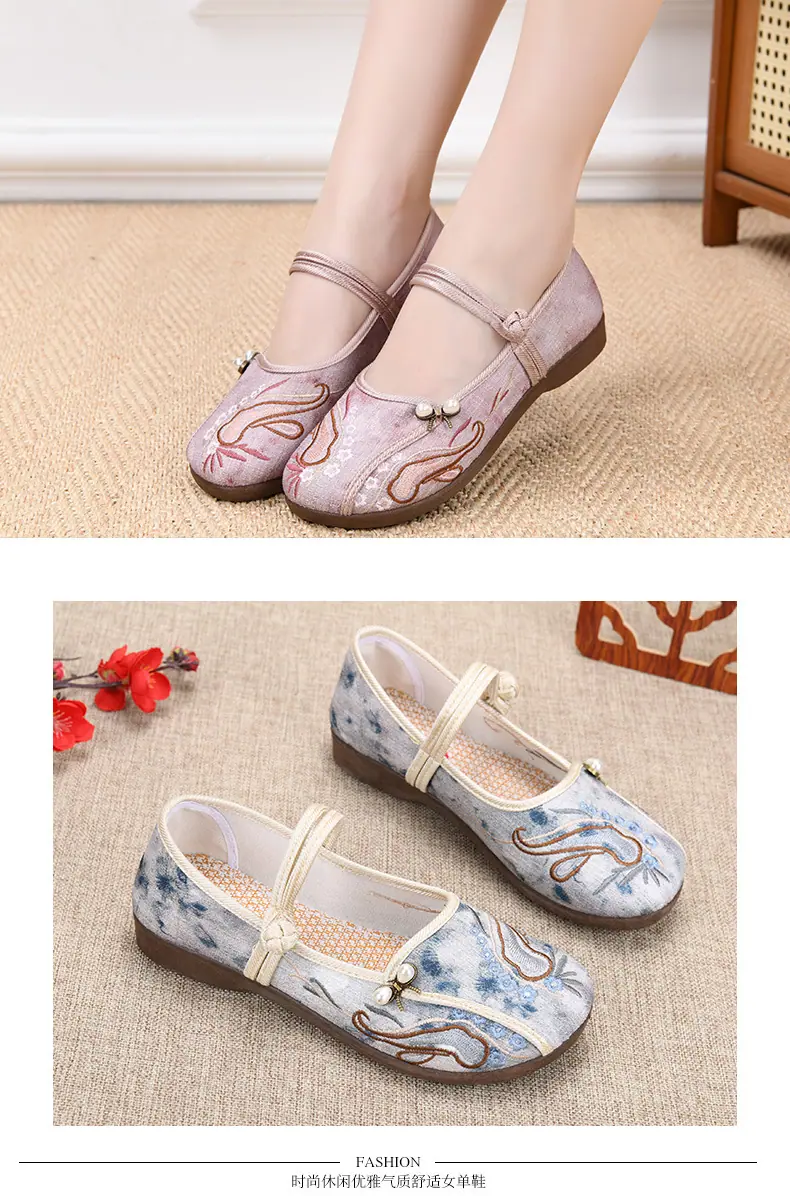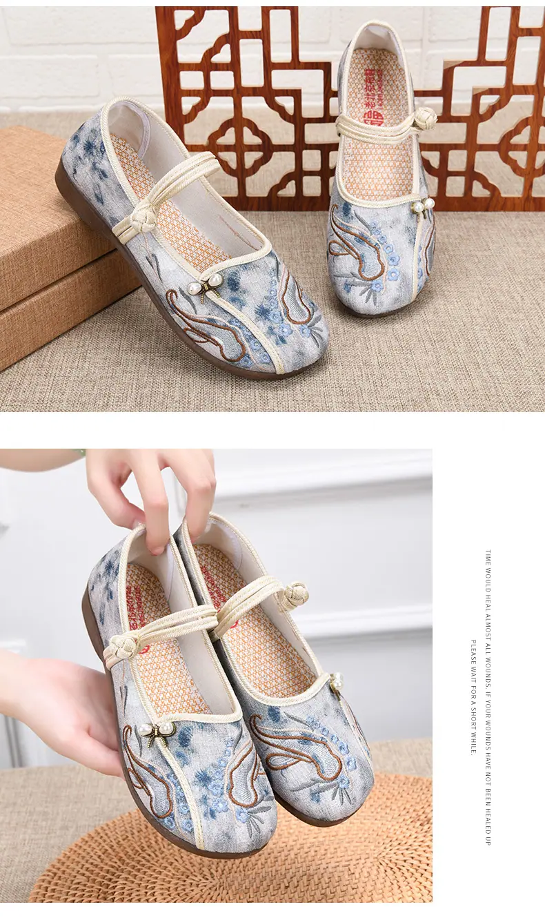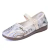 Zapatos Hanfu de Estilo Retro Zapatos de Tela de Pekín Antiguo Zapatos de Boca Baja para Mujer Cómodos Transpirables Estilo Étnico Zapatos de Mujer Tacón Plano Suela Blanda Zapatos Bordados