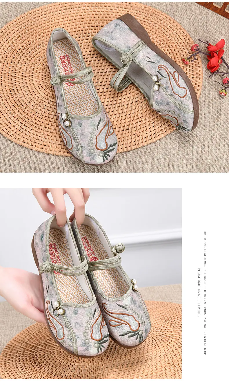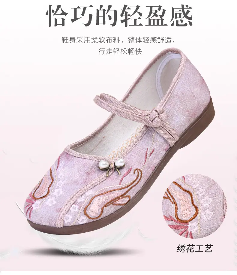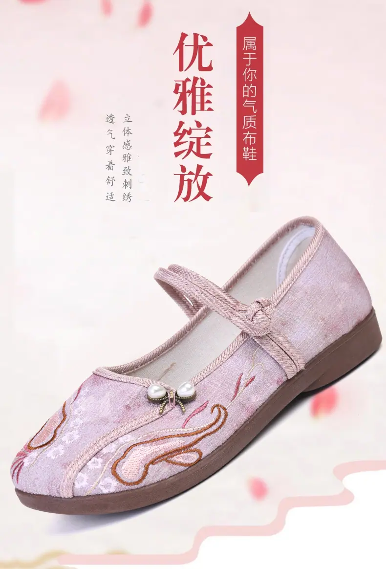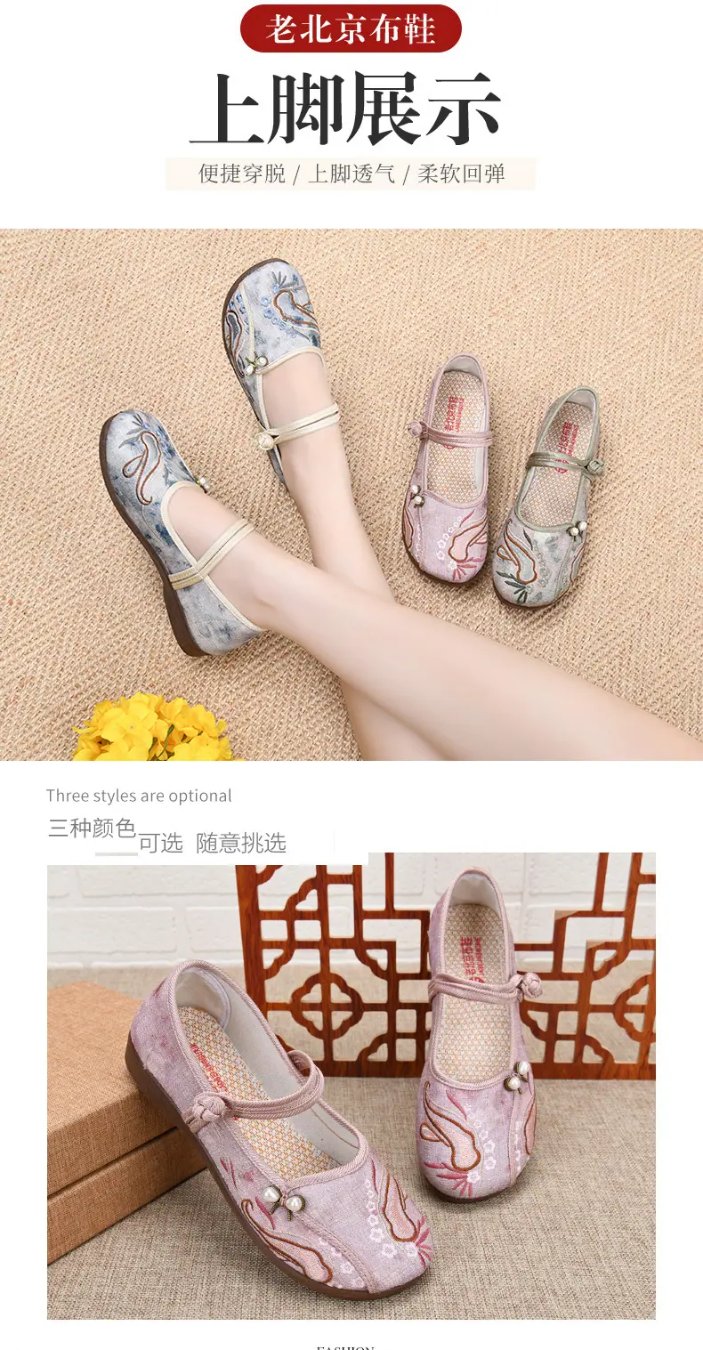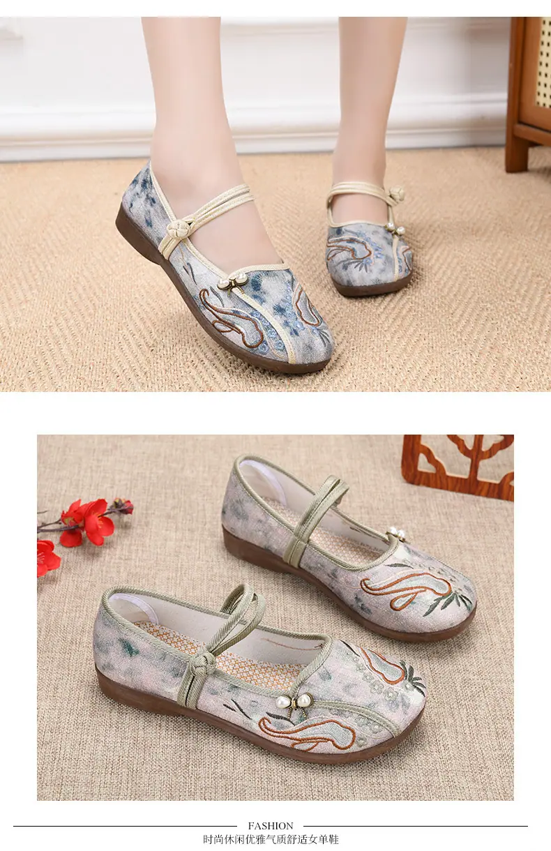 Zapatos Hanfu de Estilo Retro Zapatos de Tela de Pekín Antiguo Zapatos de Boca Baja para Mujer Cómodos Transpirables Estilo Étnico Zapatos de Mujer Tacón Plano Suela Blanda Zapatos Bordados