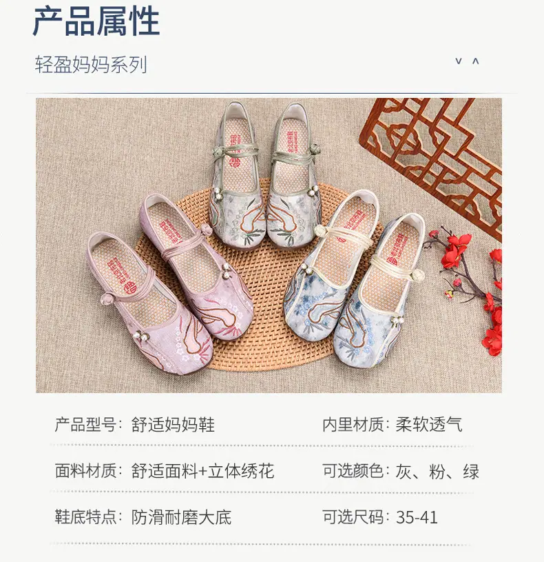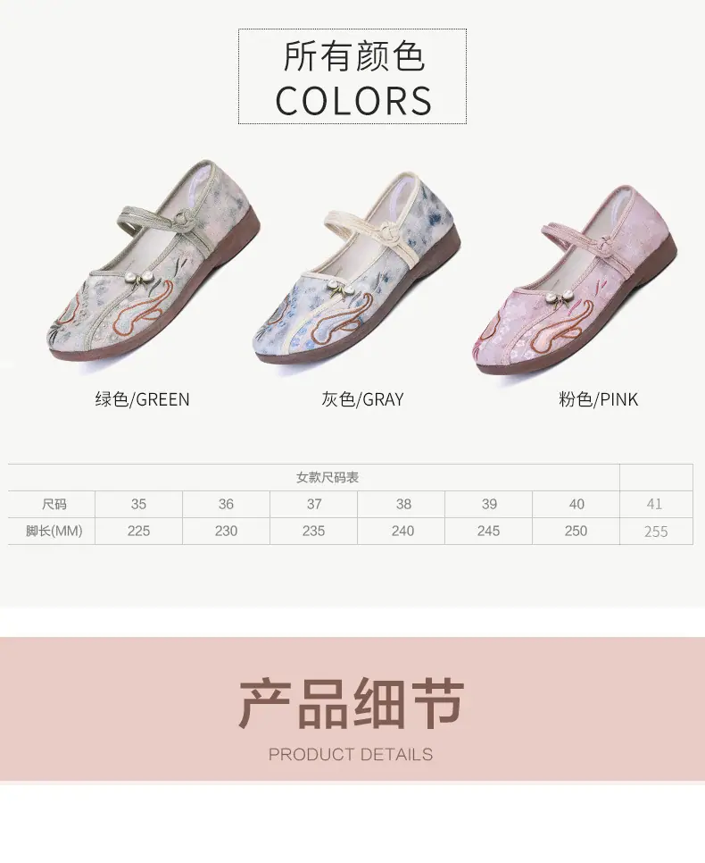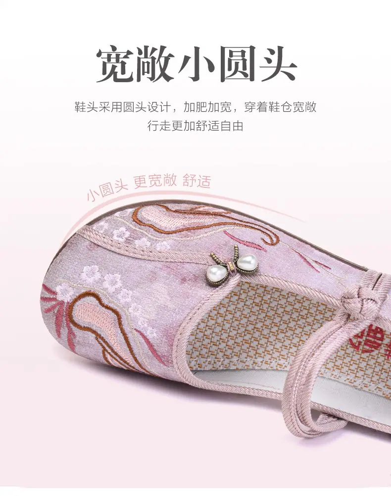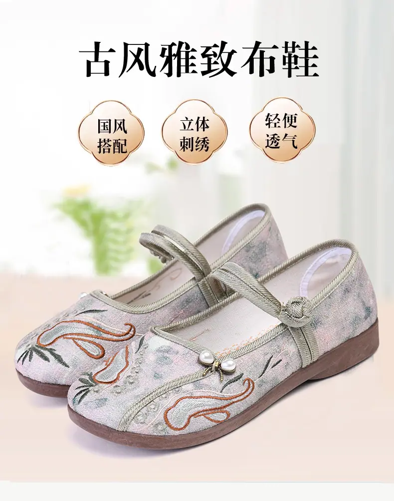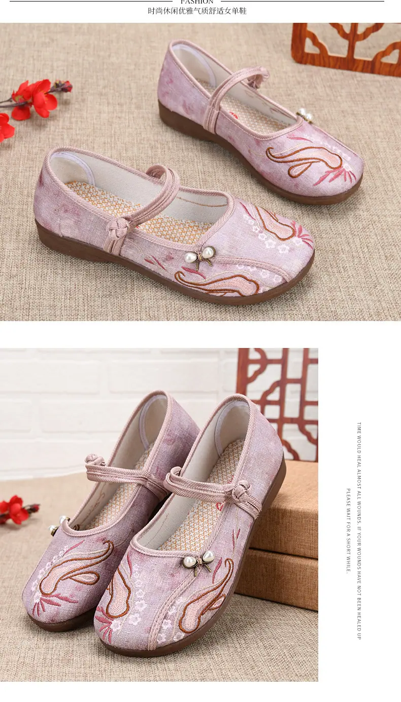 Zapatos Hanfu de Estilo Retro Zapatos de Tela de Pekín Antiguo Zapatos de Boca Baja para Mujer Cómodos Transpirables Estilo Étnico Zapatos de Mujer Tacón Plano Suela Blanda Zapatos Bordados