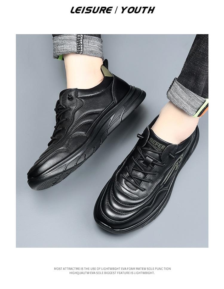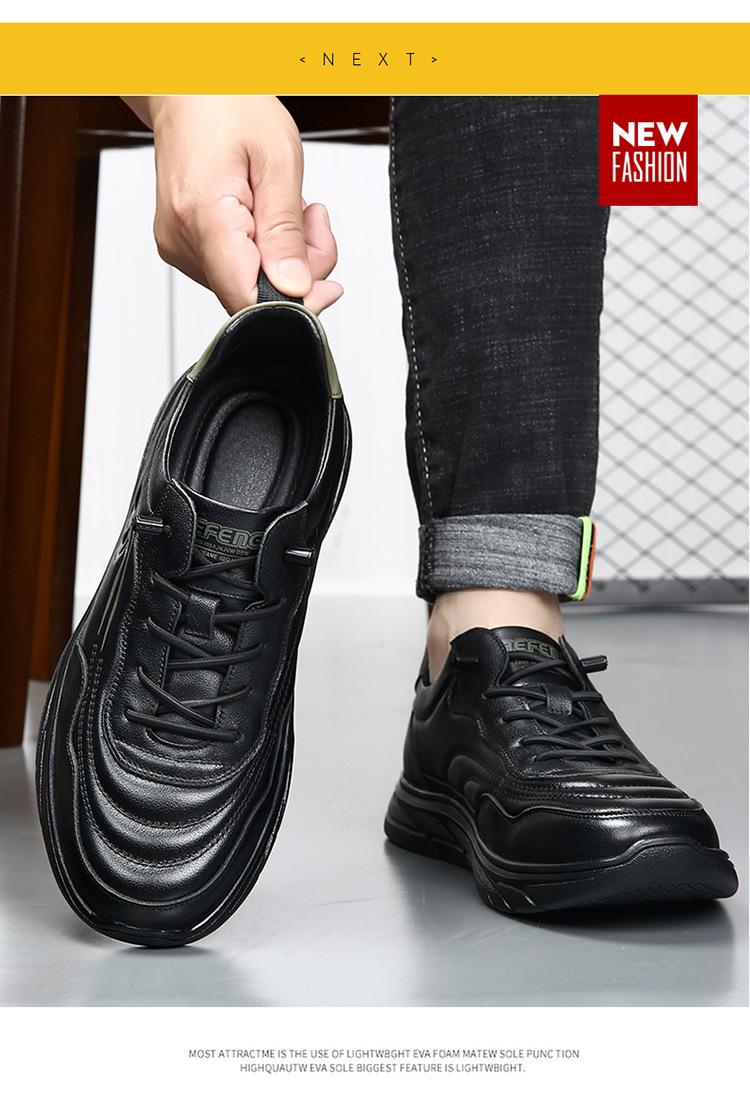 Otoño/Invierno 2025 Nuevos Zapatos Casuales de Piel de Vaca de Primera Capa de Lujo Ligero Negro Negocios Versátiles Deportivos Zapatos de Cuero