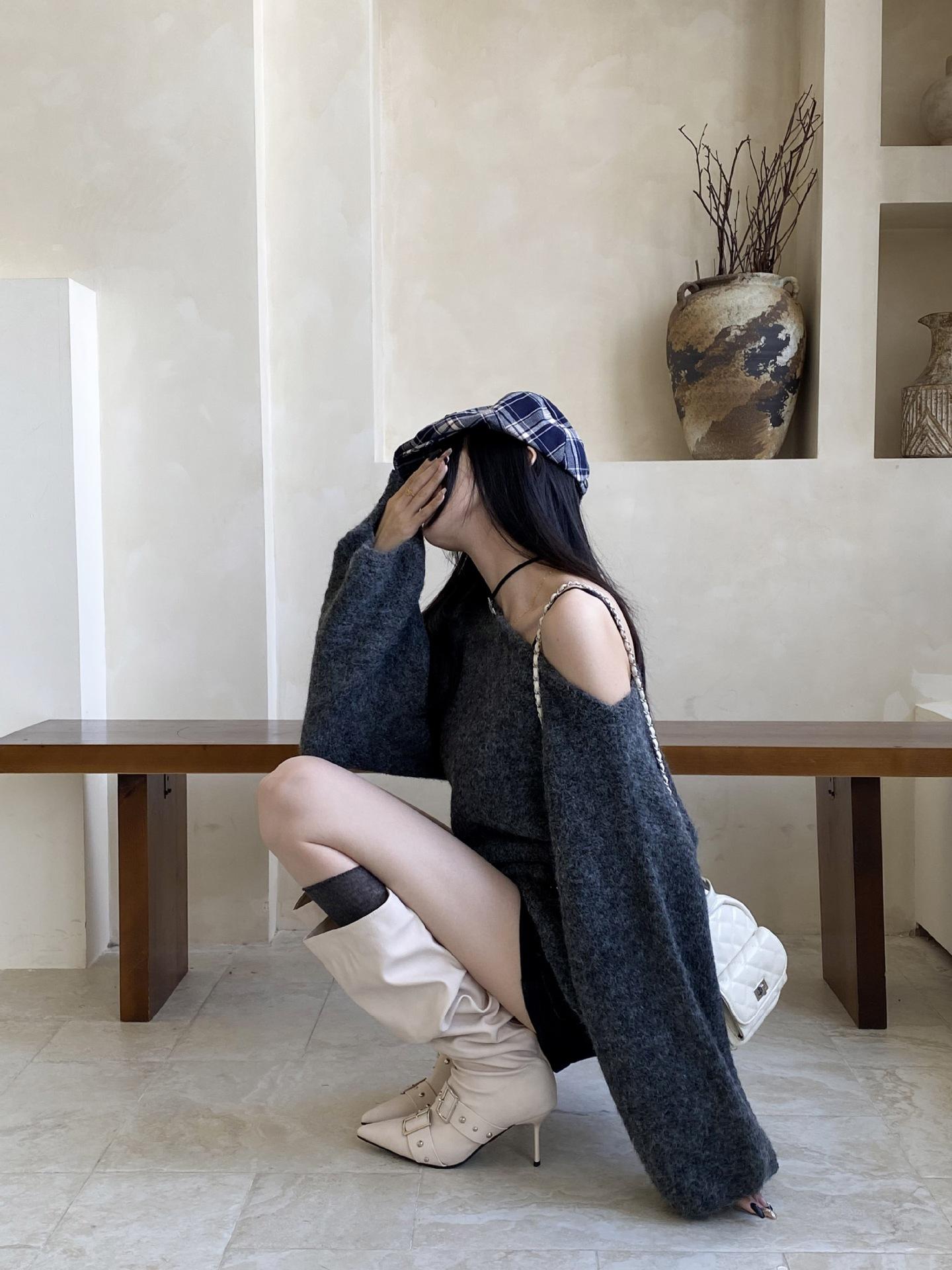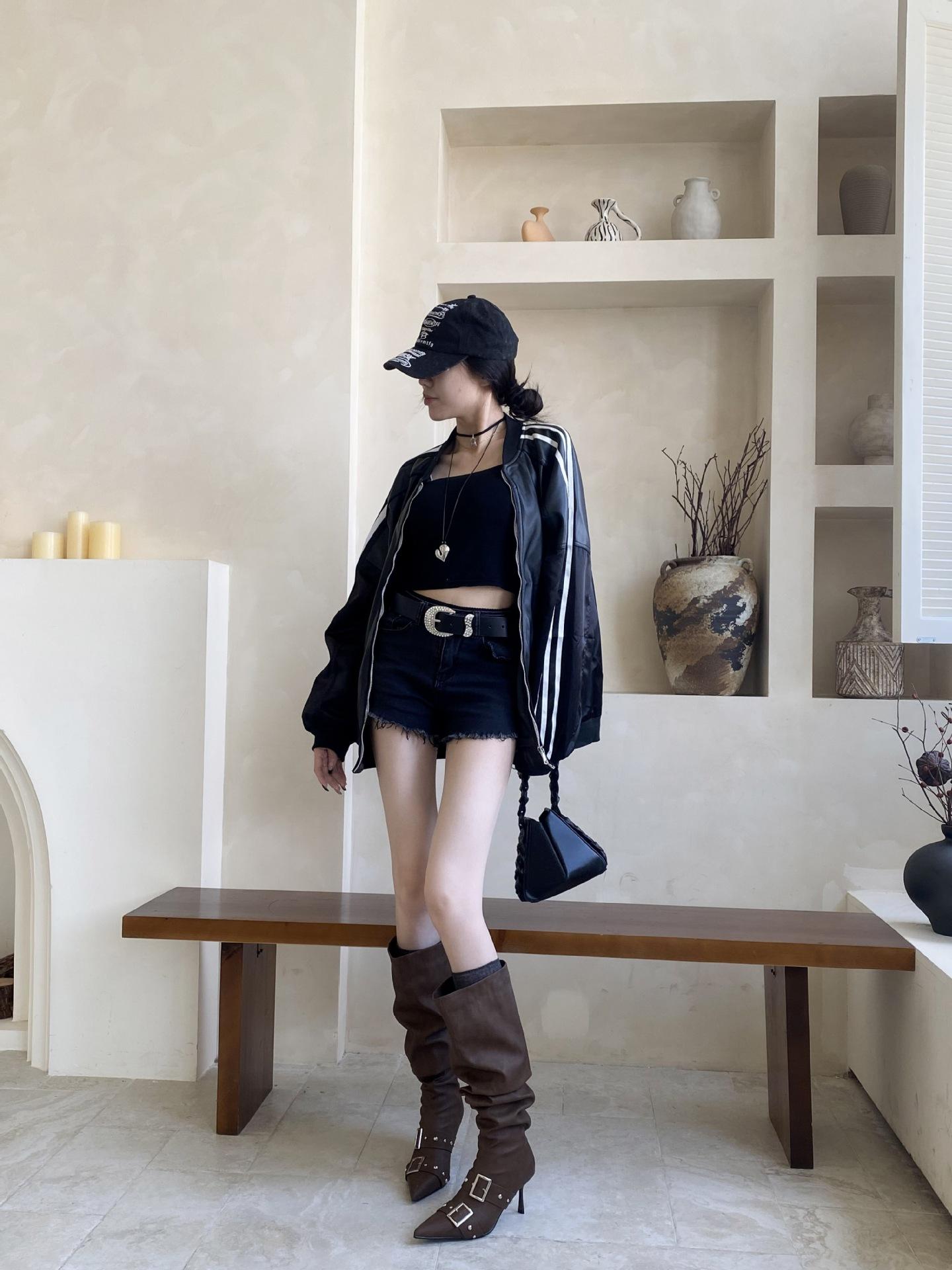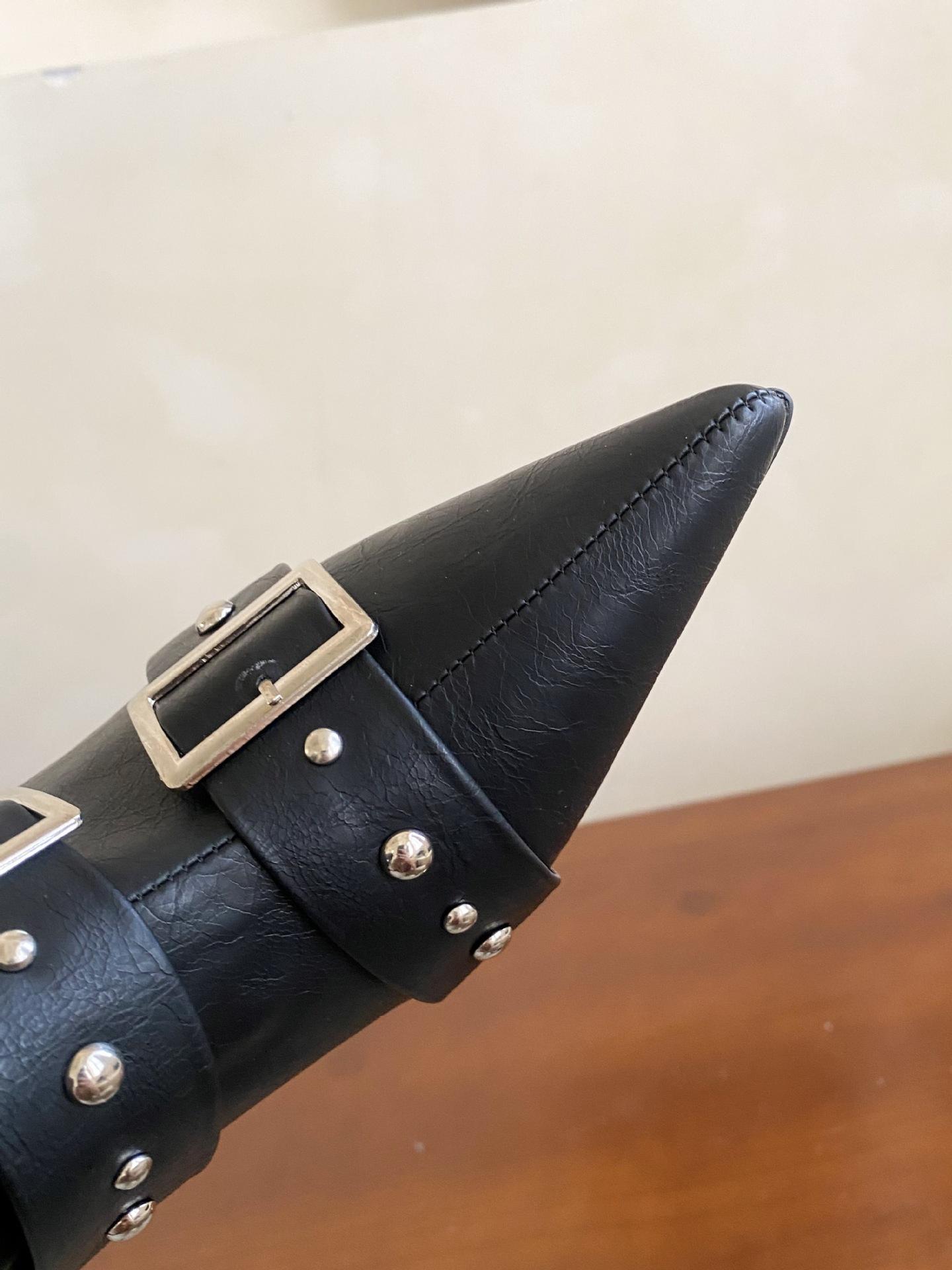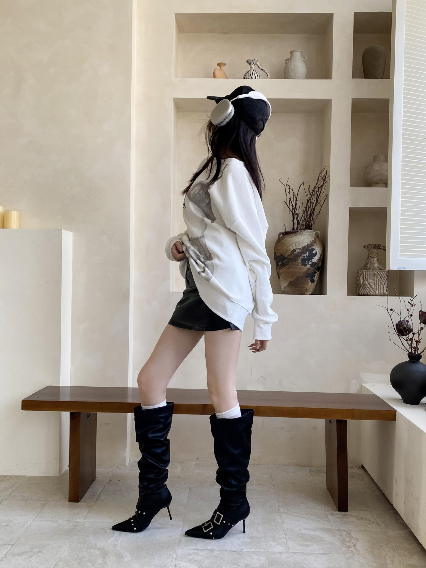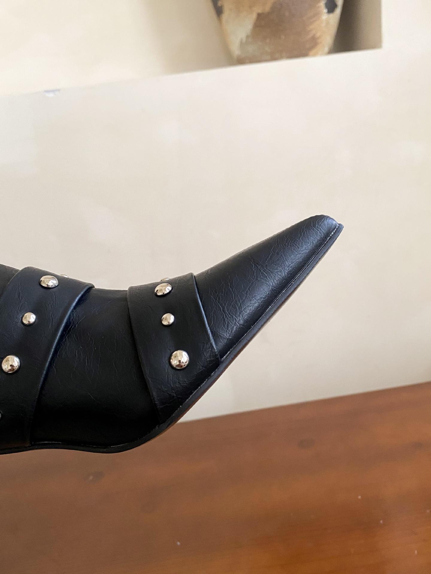 2025 Otoño/Invierno Nuevo Europeo y Americano Punta Afilada Tacón de Aguja Tacón Alto Temperamento Moda Francesa Remache Hebilla Botas Largas de Mujer