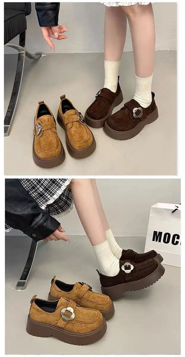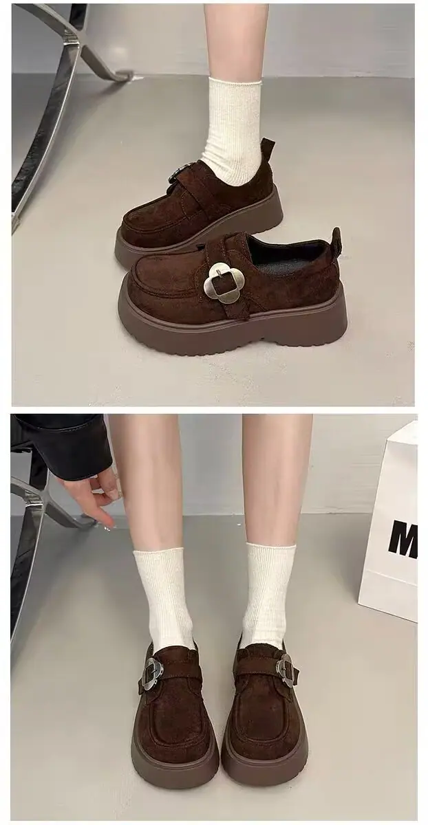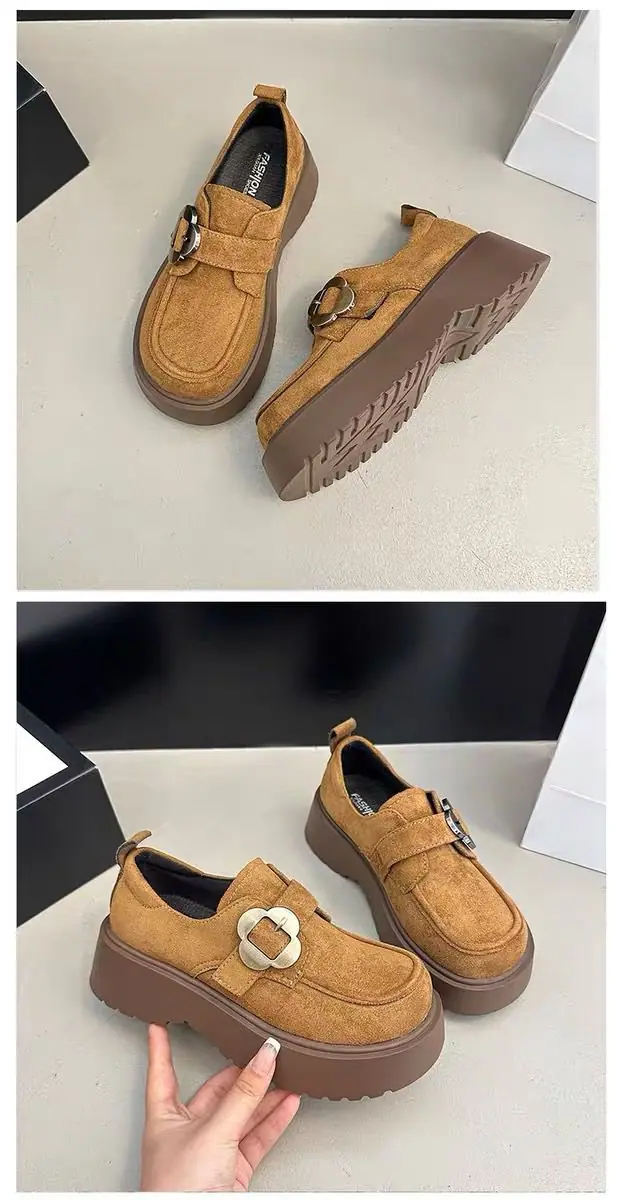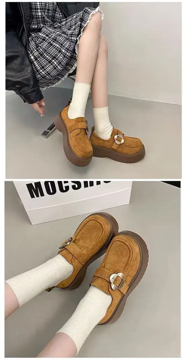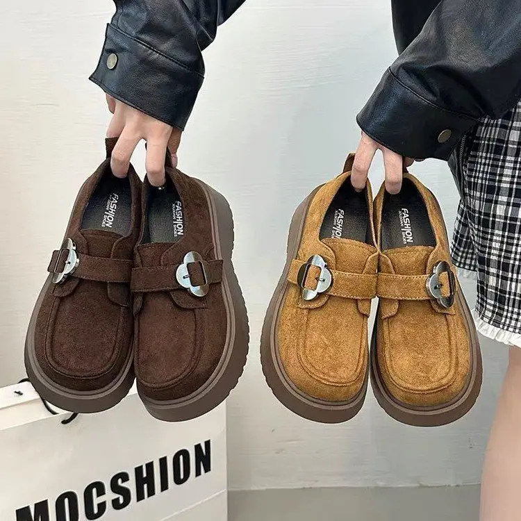 Versátiles mocasines Birkenstock para mujer de otoño 2025, estilo popular de celebridad de internet, temperamento, suela gruesa que aumenta la altura, zapatos individuales