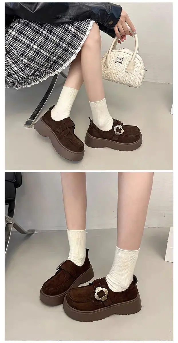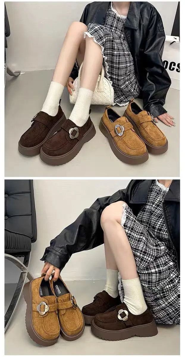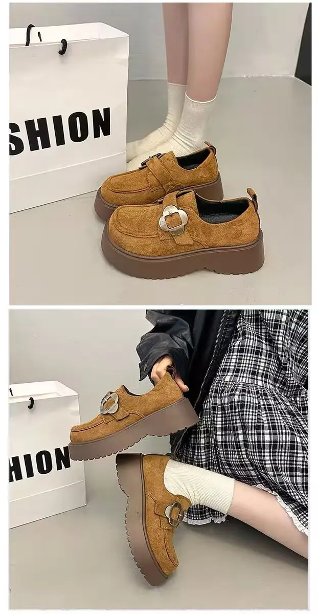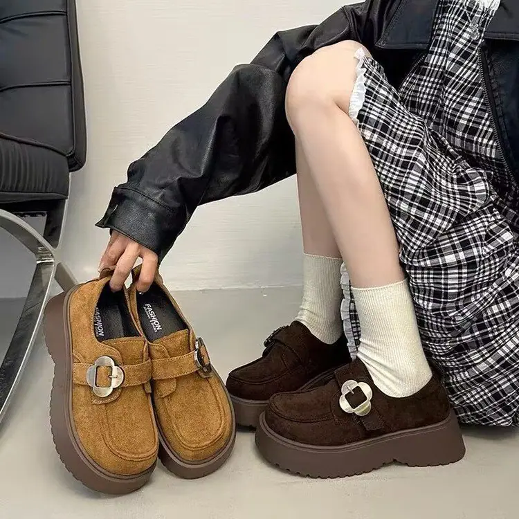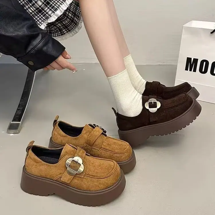 Versátiles mocasines Birkenstock para mujer de otoño 2025, estilo popular de celebridad de internet, temperamento, suela gruesa que aumenta la altura, zapatos individuales