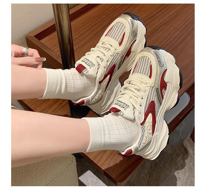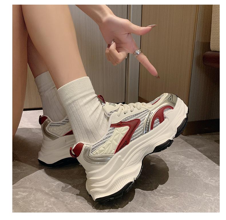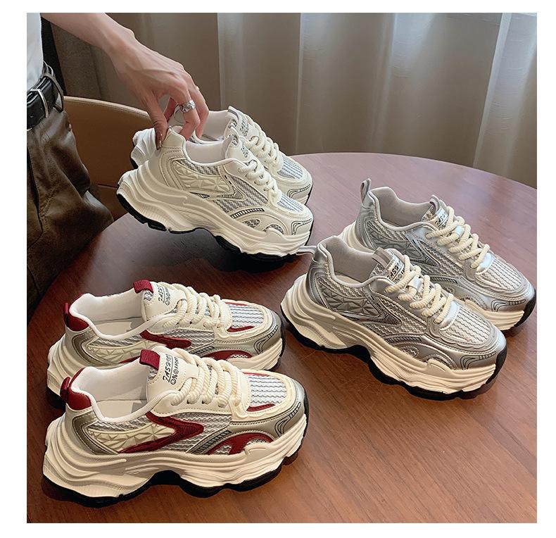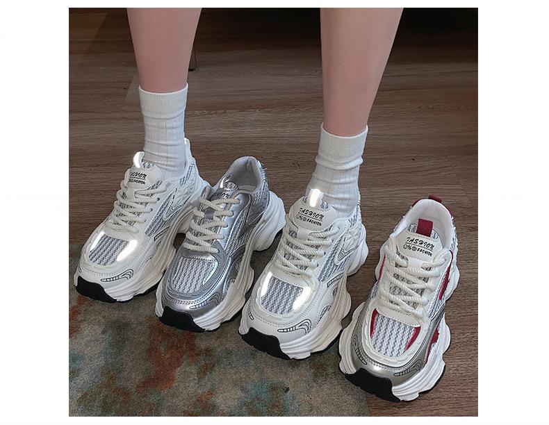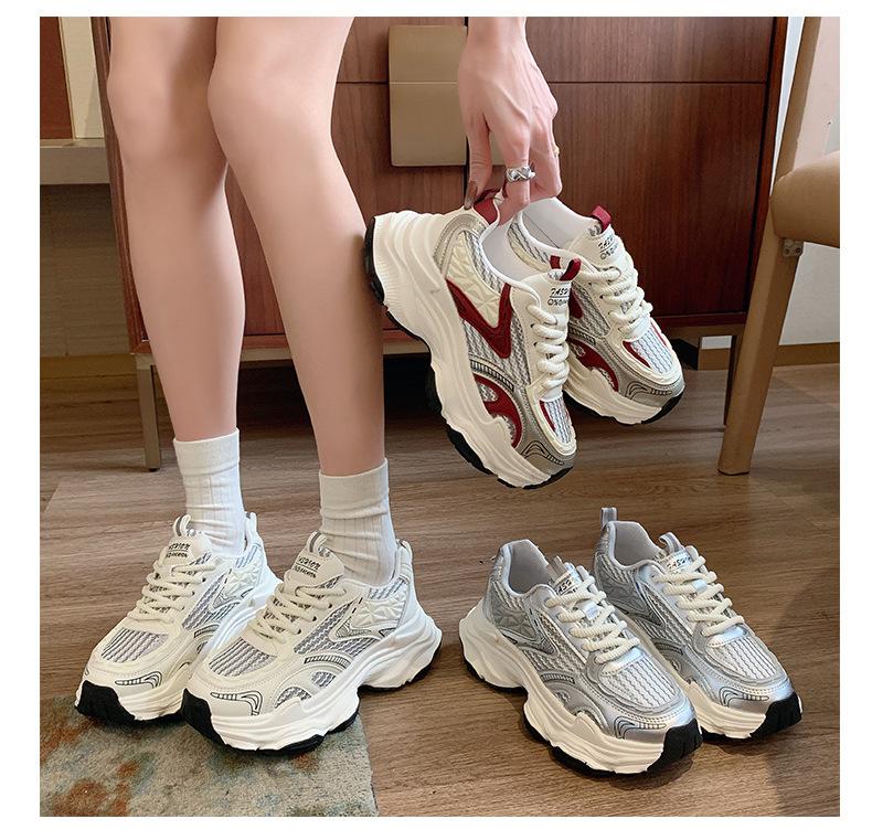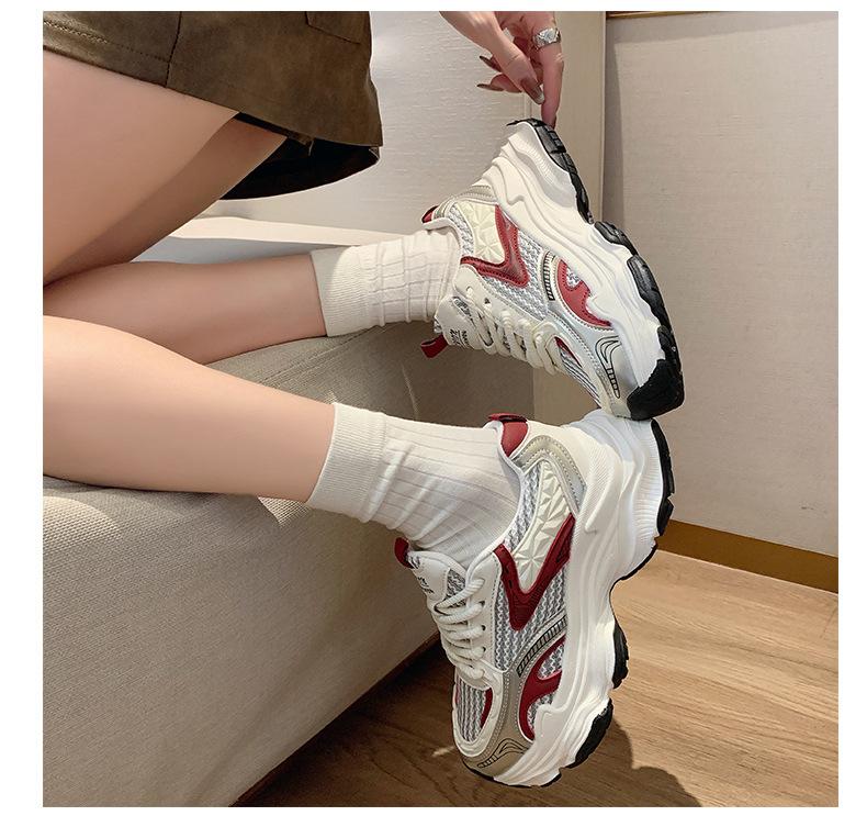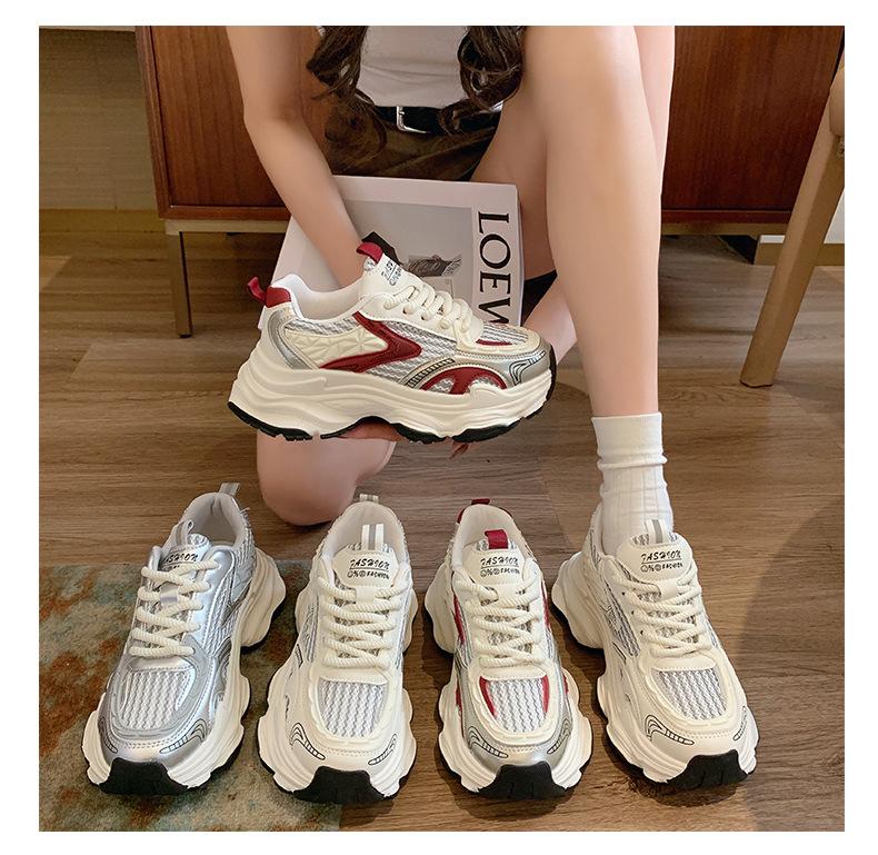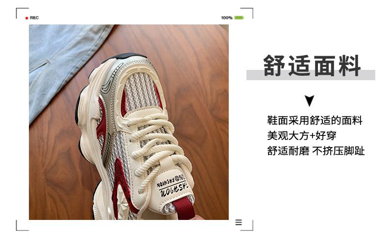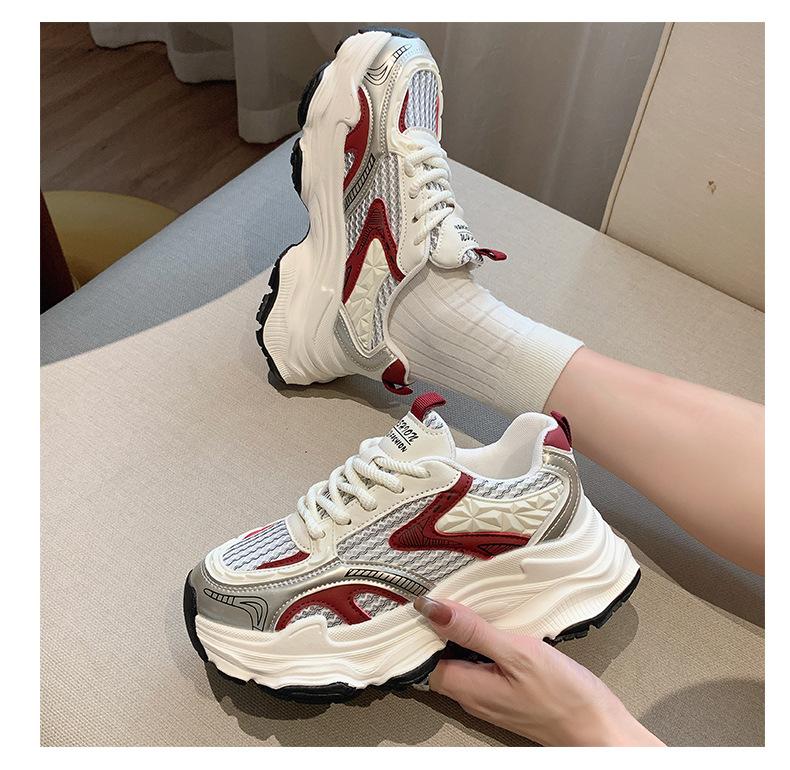 Tenis de Papá de Suela Gruesa para Mujer 2025 Nuevo Verano Malla Transpirable Estudiante Calle Malla Única Casual Zapatos Deportivos Rojos