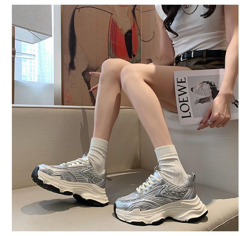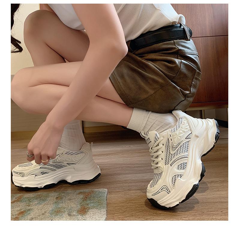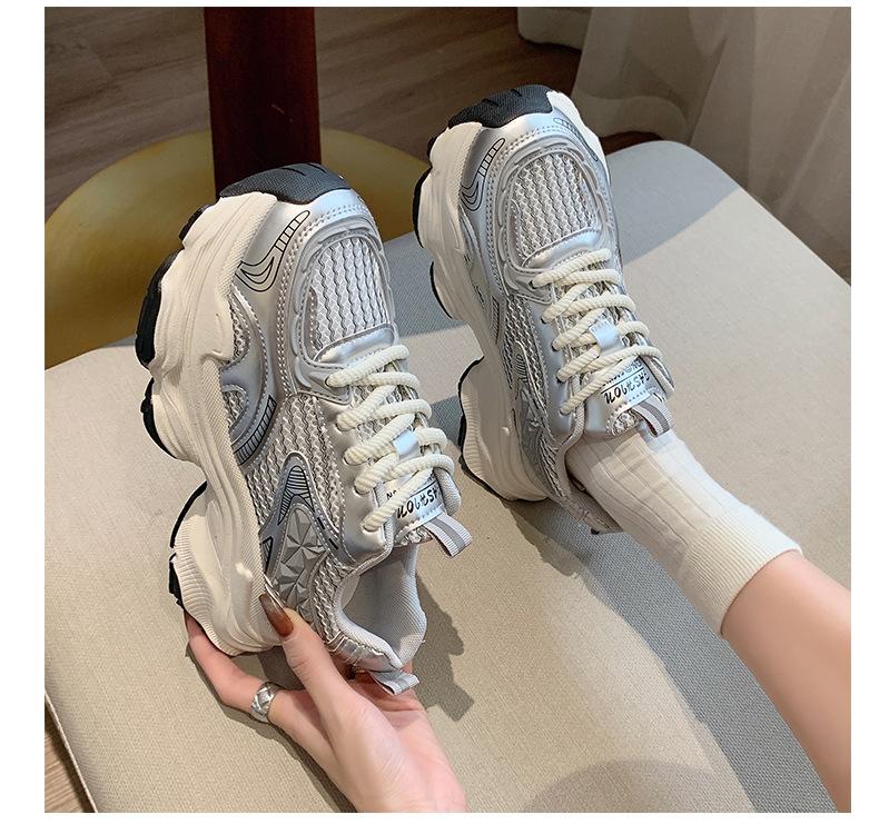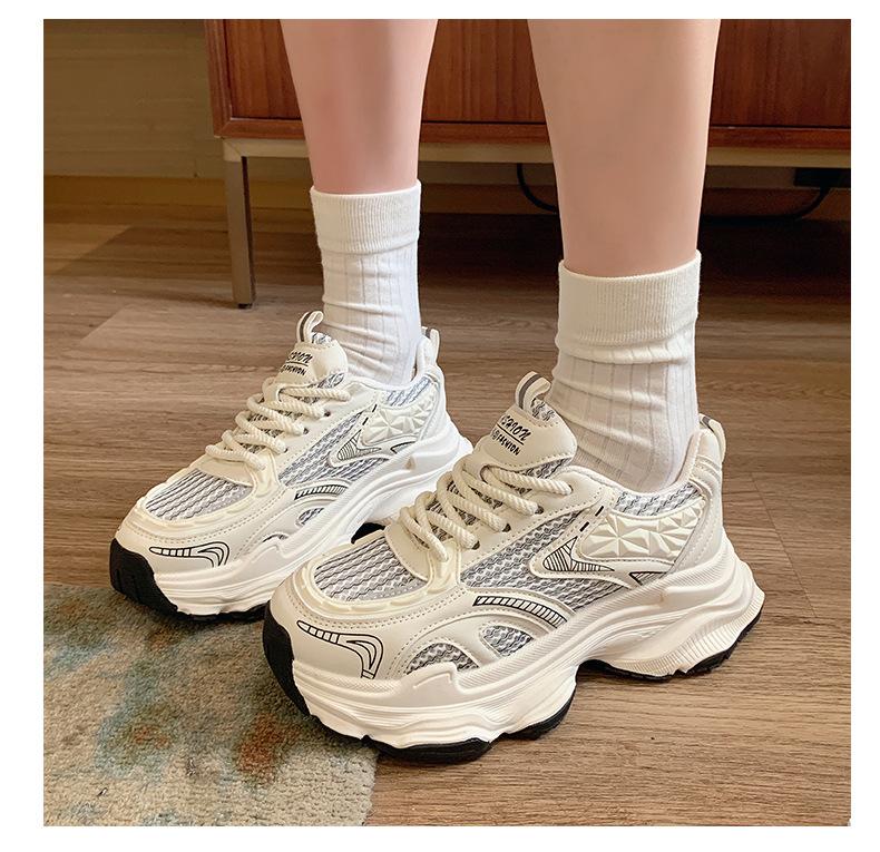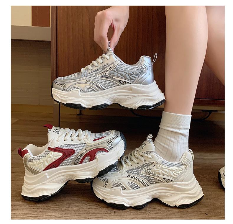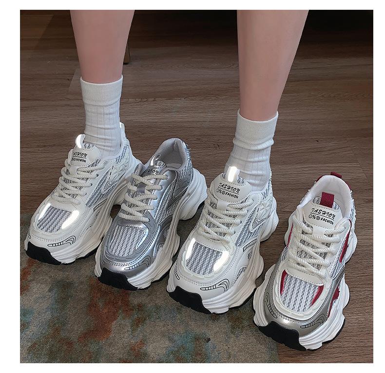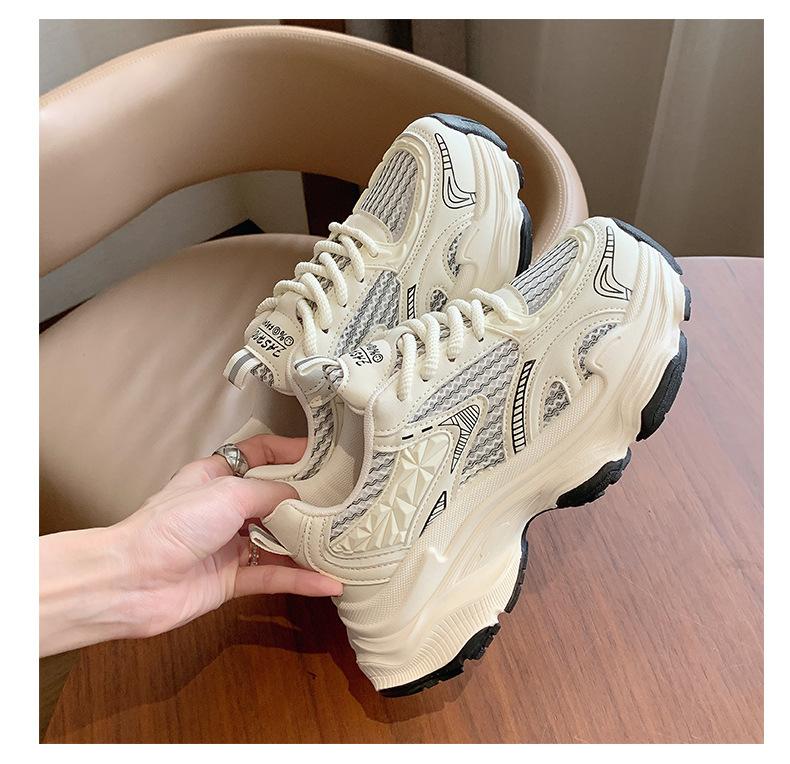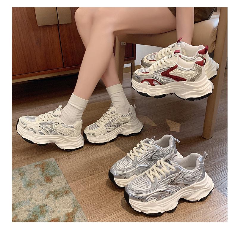 Tenis de Papá de Suela Gruesa para Mujer 2025 Nuevo Verano Malla Transpirable Estudiante Calle Malla Única Casual Zapatos Deportivos Rojos