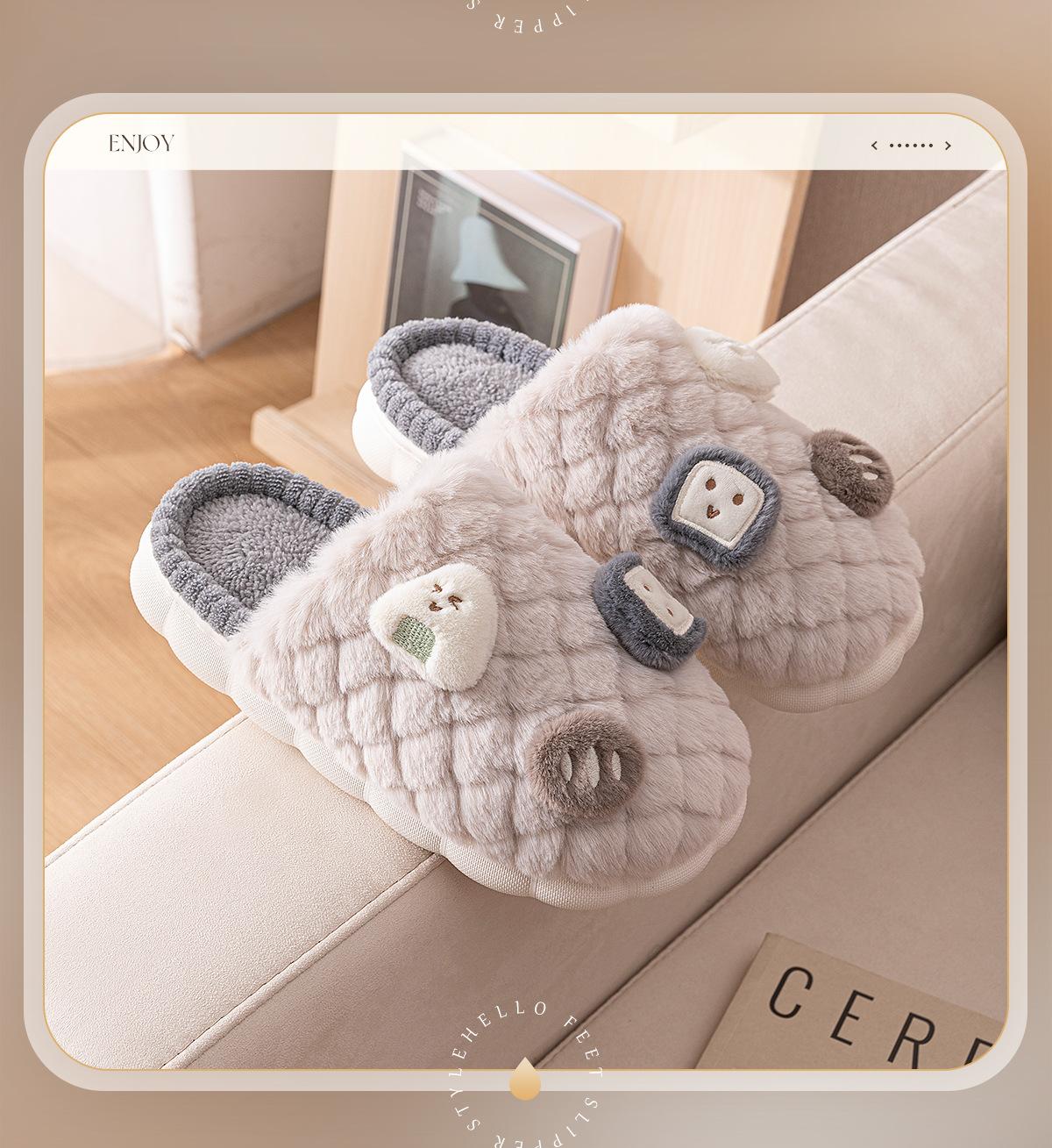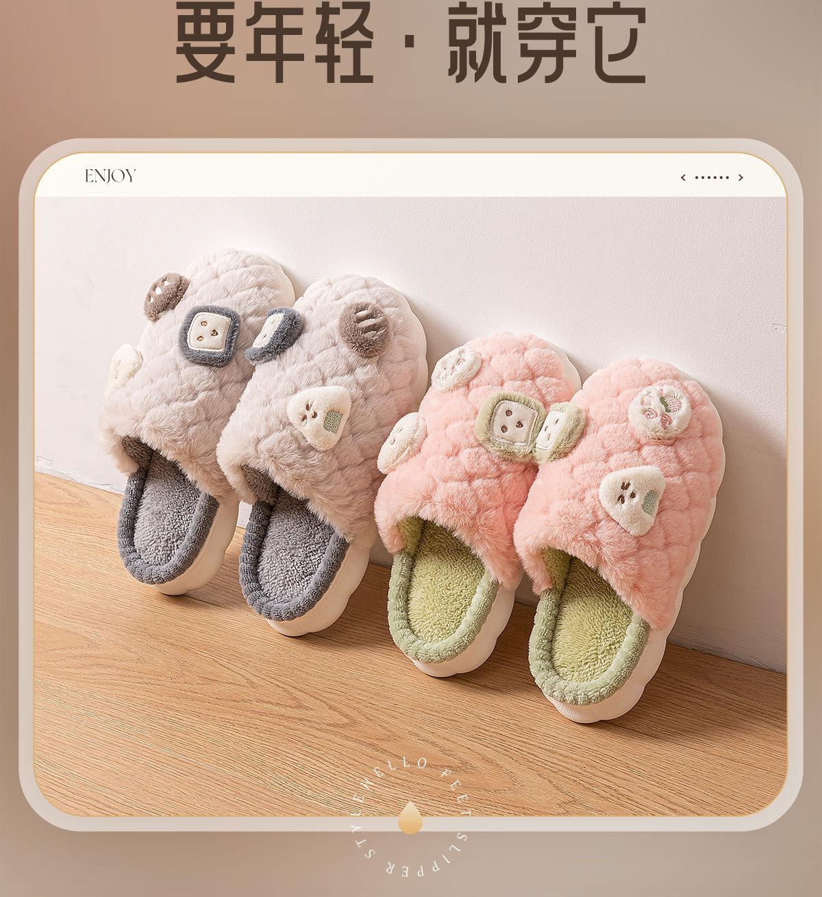 Pantuflas de Algodón al Por Mayor para Mujer Otoño e Invierno Interior Hogar 2023 Nuevas Antideslizantes Resistentes al Olor Cálidas Peludas de Felpa 56