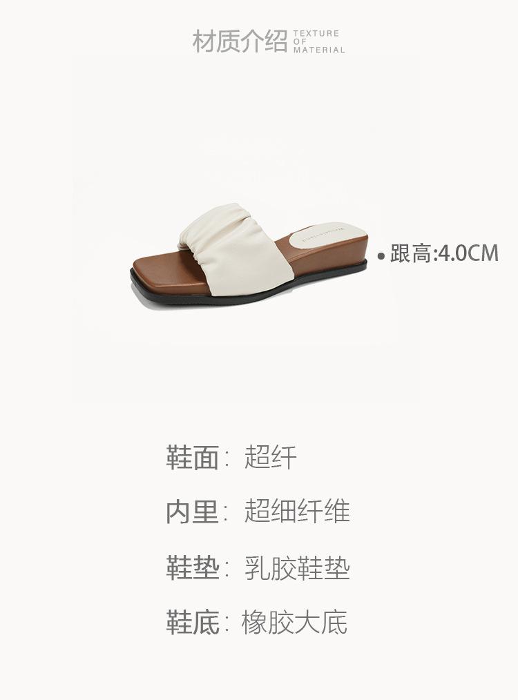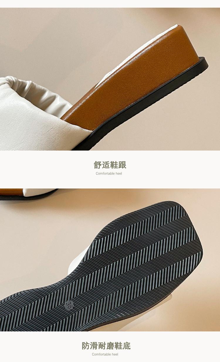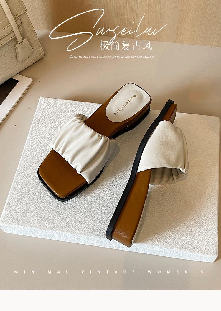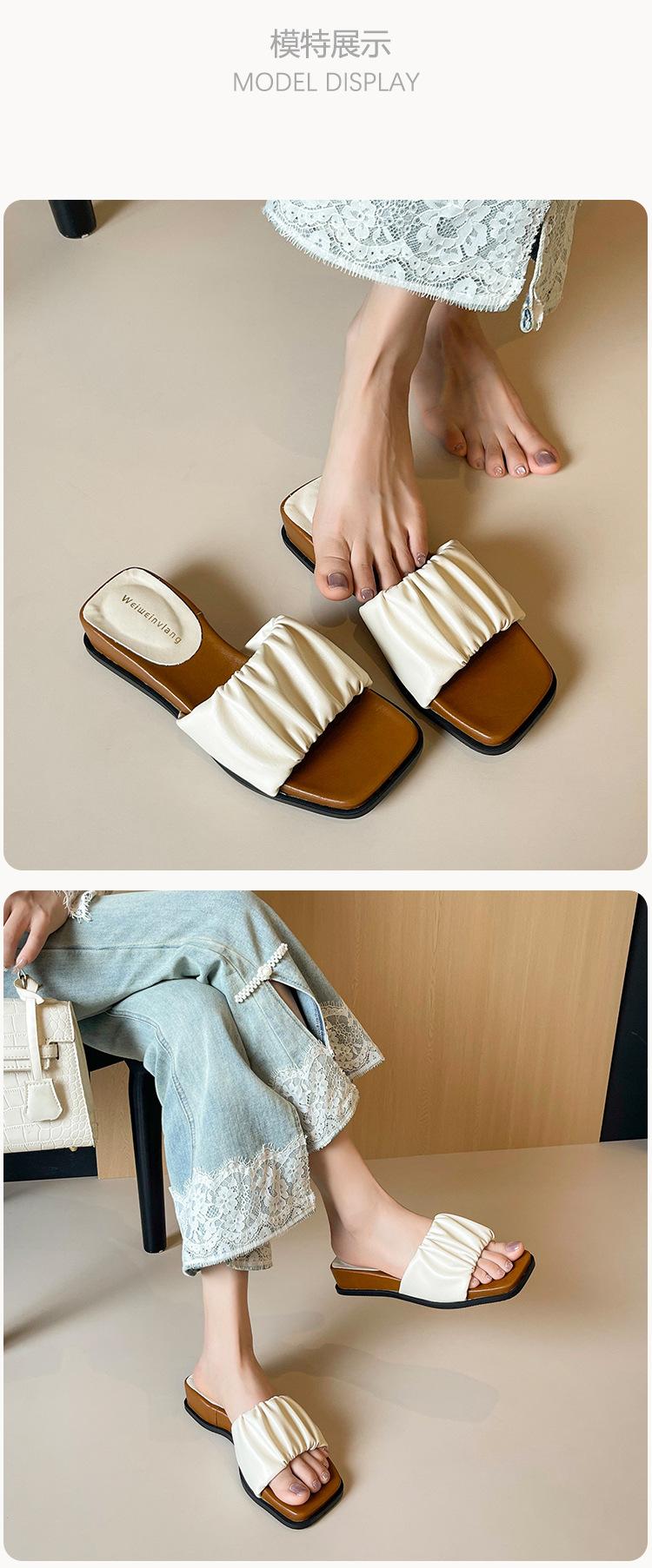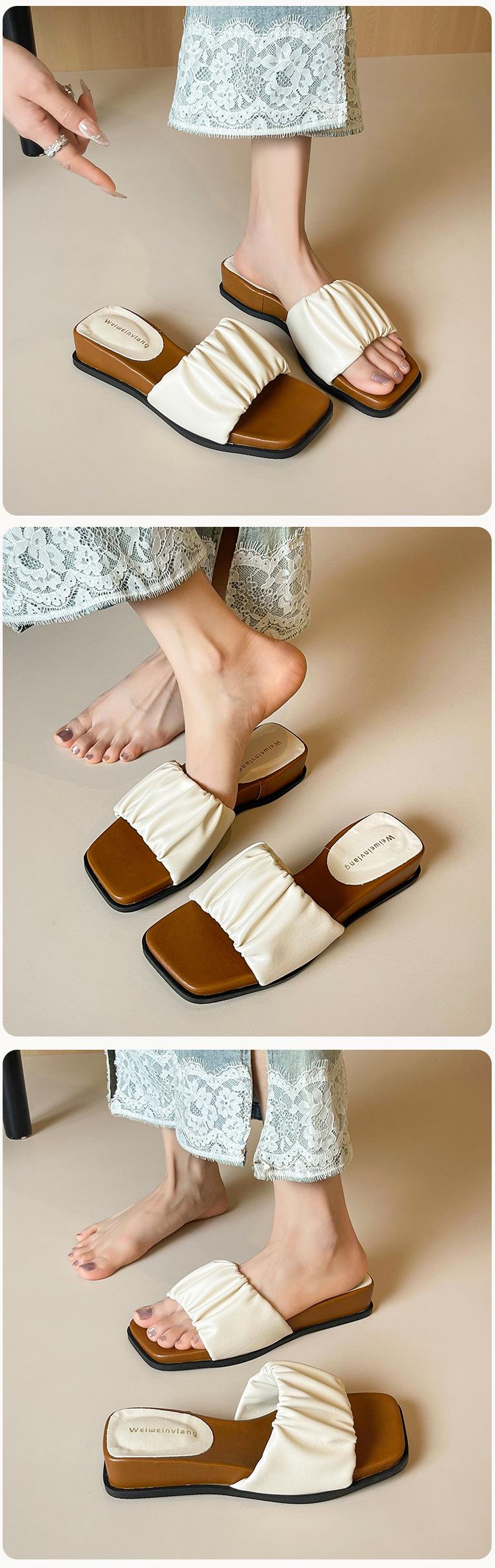 Weiwei Girl 281-7 Sandalias Chanclas de Punta Cuadrada Fruncidas con Punta Abierta para Mujer Verano 2025 Nuevas Sandalias de Suela Gruesa