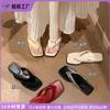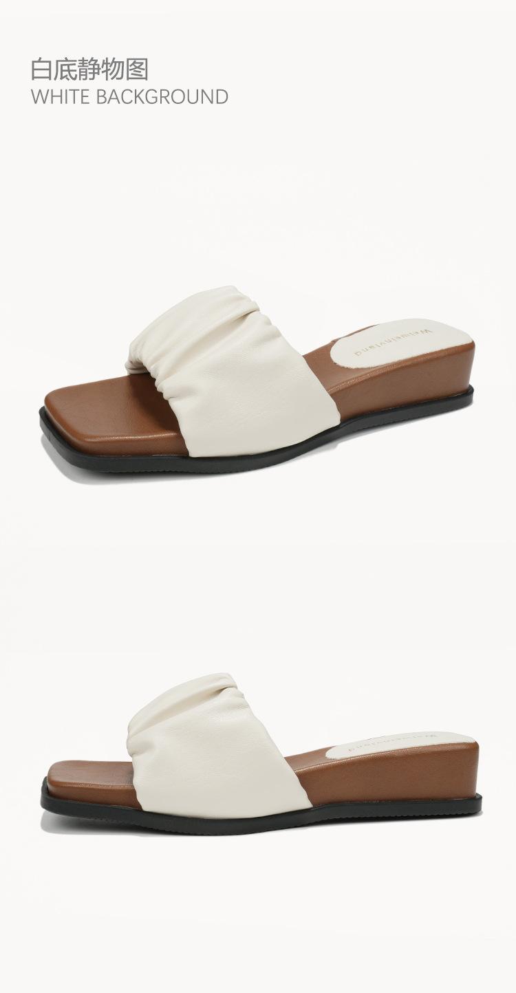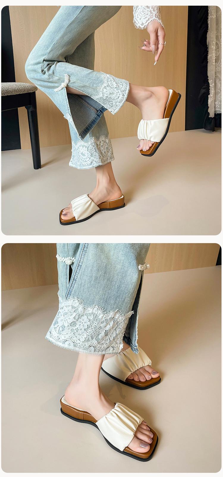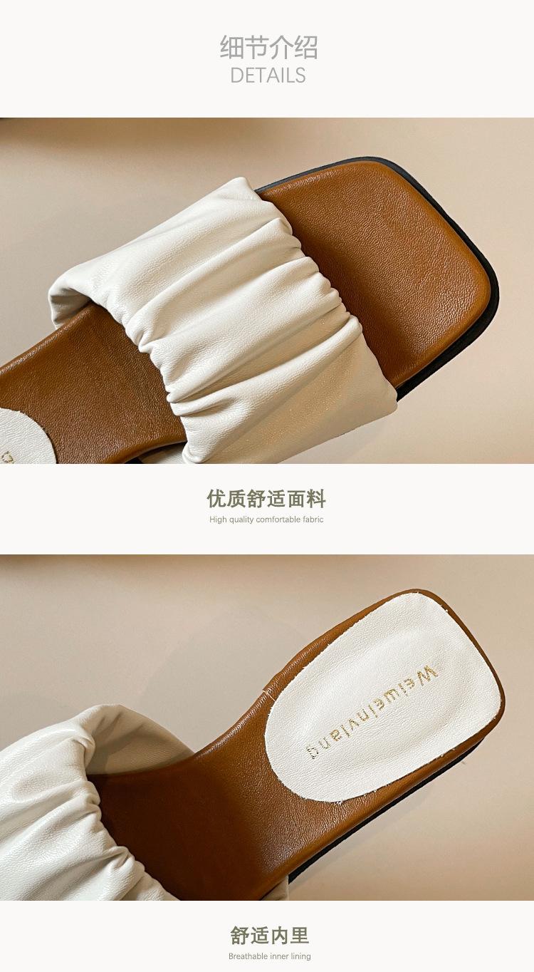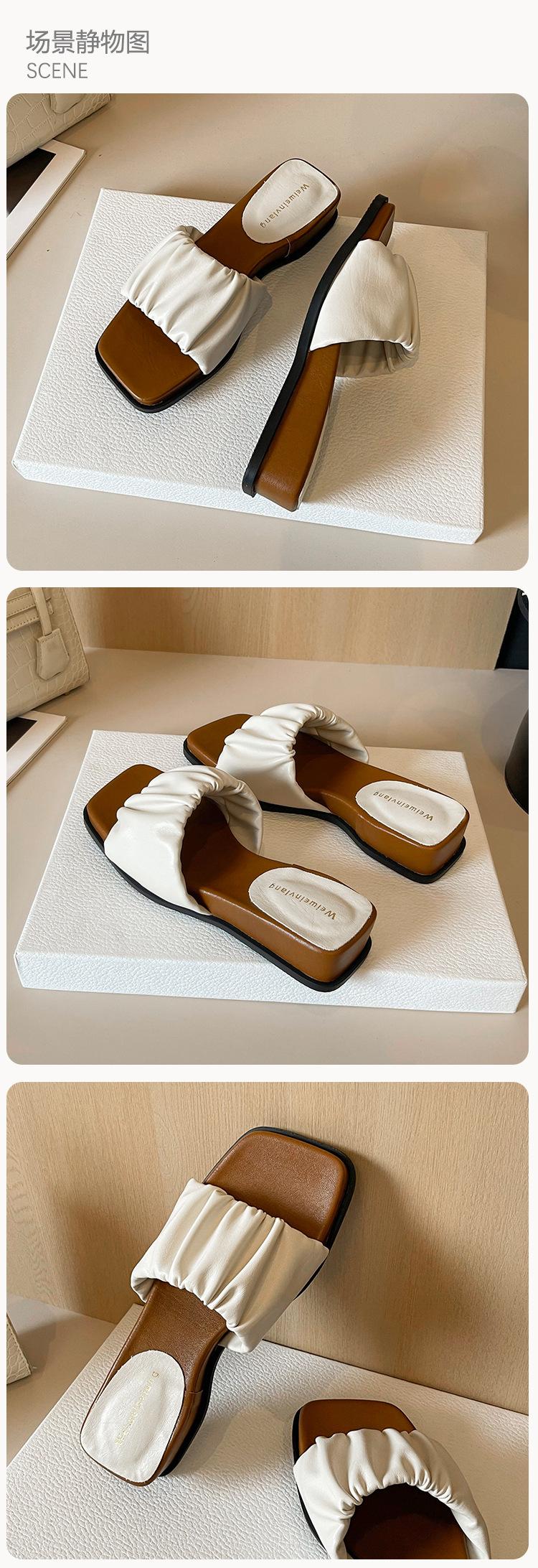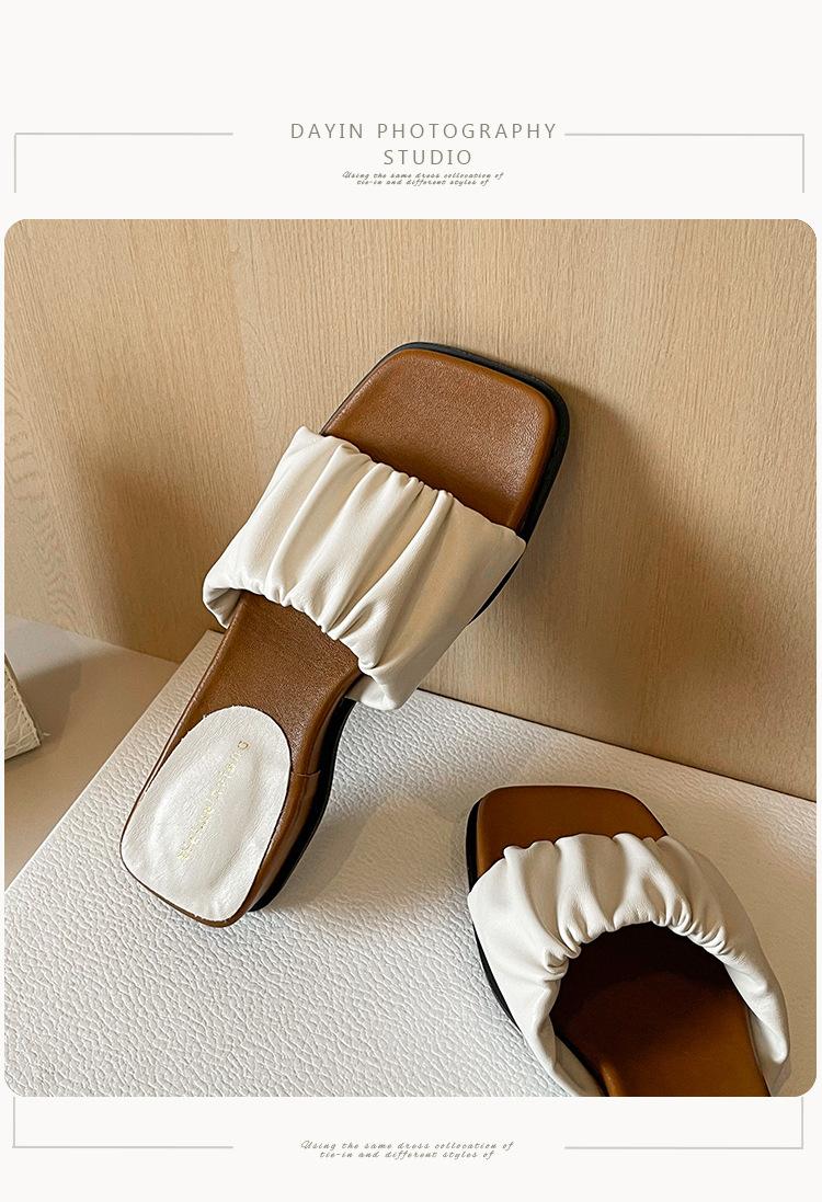 Weiwei Girl 281-7 Sandalias Chanclas de Punta Cuadrada Fruncidas con Punta Abierta para Mujer Verano 2025 Nuevas Sandalias de Suela Gruesa