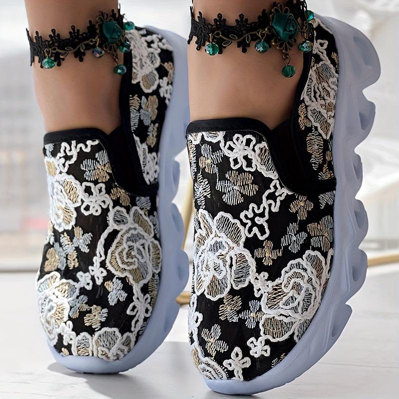 Compra Nuevos Zapatos Individuales de Malla de Encaje Transpirable de Caña Baja para Comercio Exterior para Mujer, Plataforma Casual Transfronteriza, Bordado, Ligeros, Zapatillas Slip-On al por mayor en Joom.pro