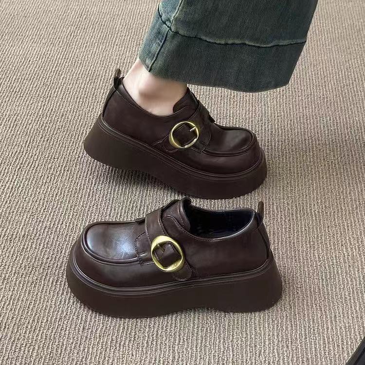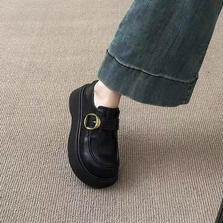 Mocasines de Suela Gruesa para Mujer 2025 Nuevo Primavera y Otoño Zapatos Mary Jane para Mujer Slip-On Negros Estilo Británico Zapatos de Cuero Pequeños al por Mayor