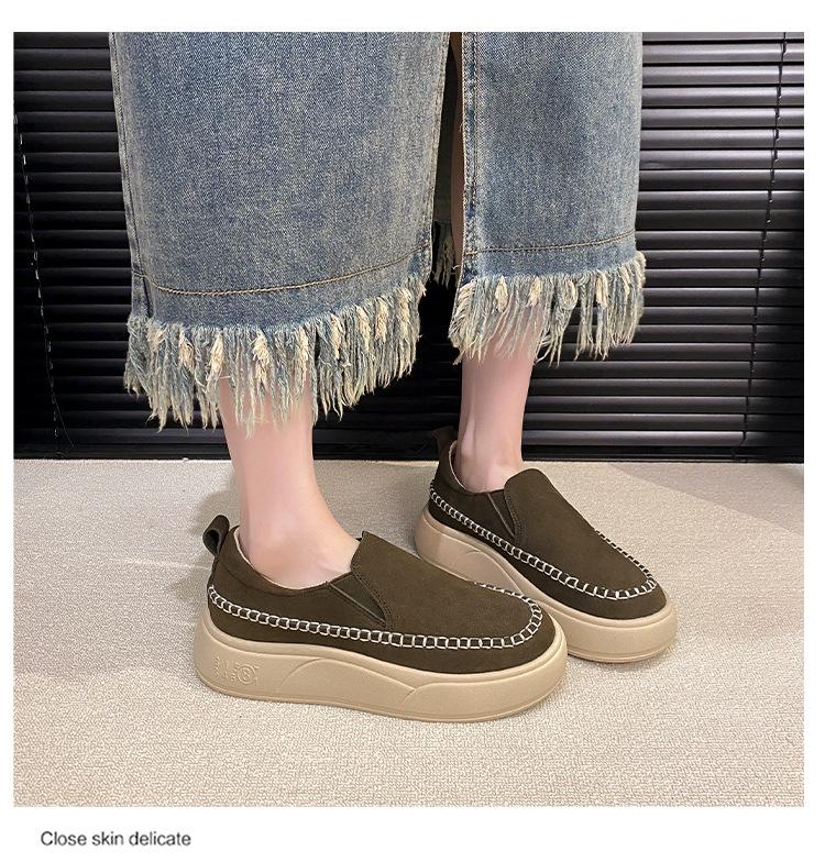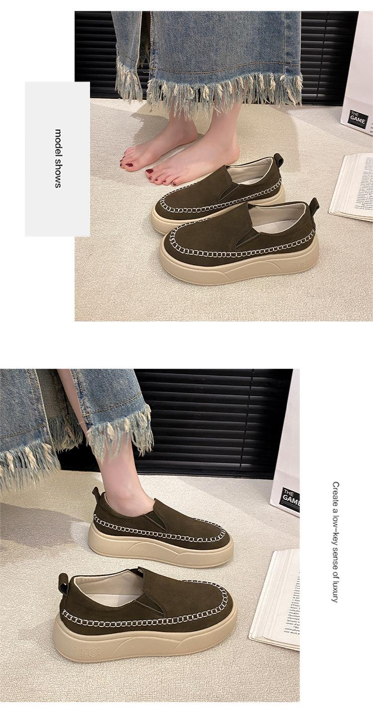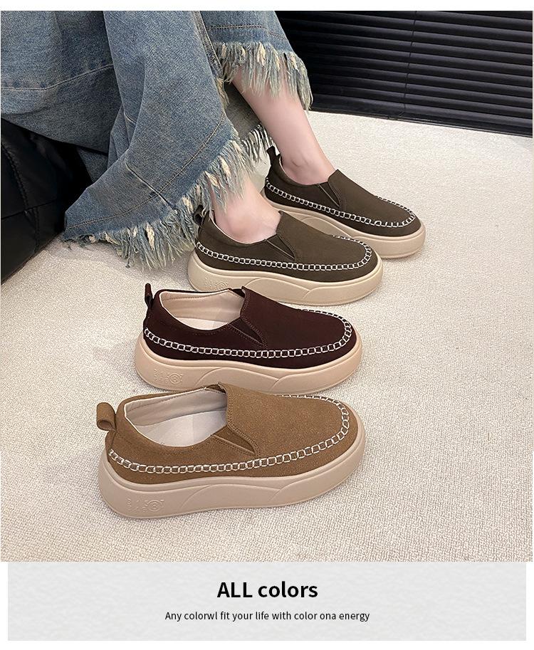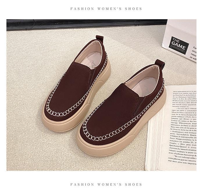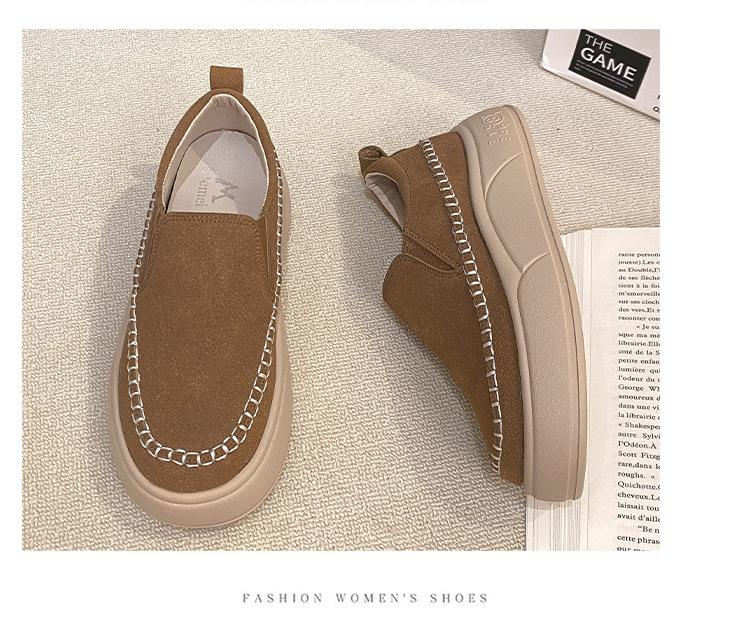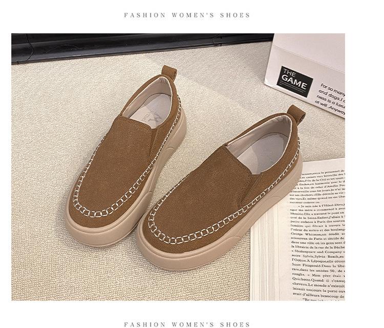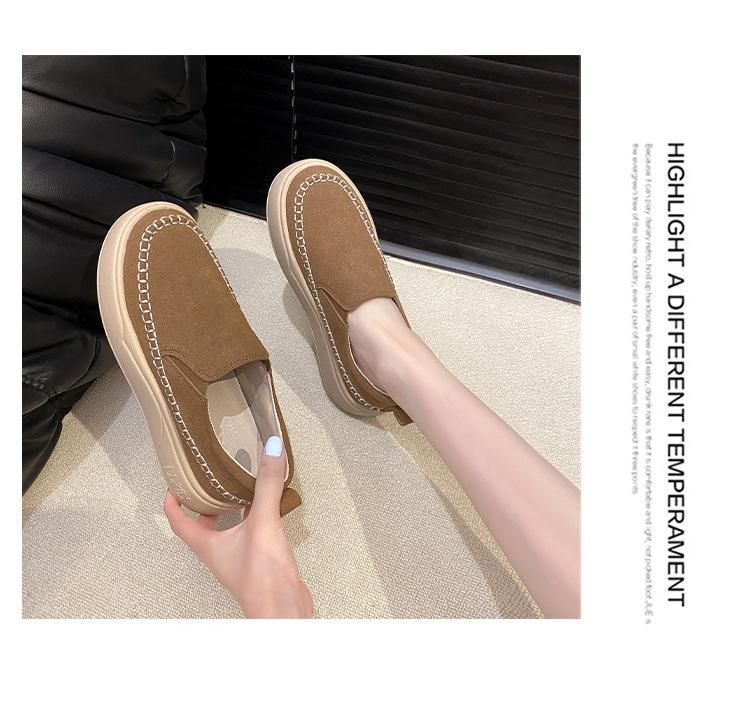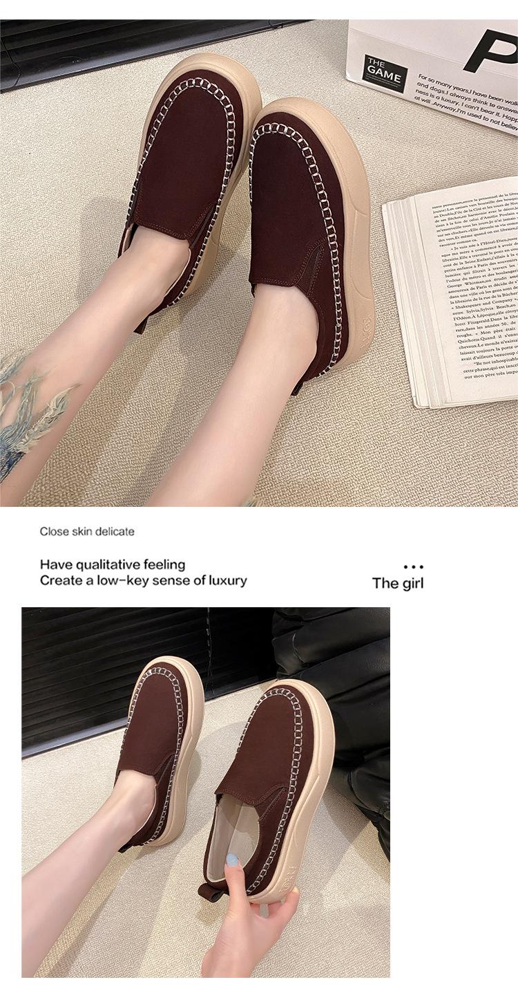 Zapatos de Plataforma de Cuero Genuino Otoño 2025 para Mujer Nueva Moda Zapatos Individuales Mocasines Slip-on Simples Versátiles Suela Gruesa Zapatos Holgazanes