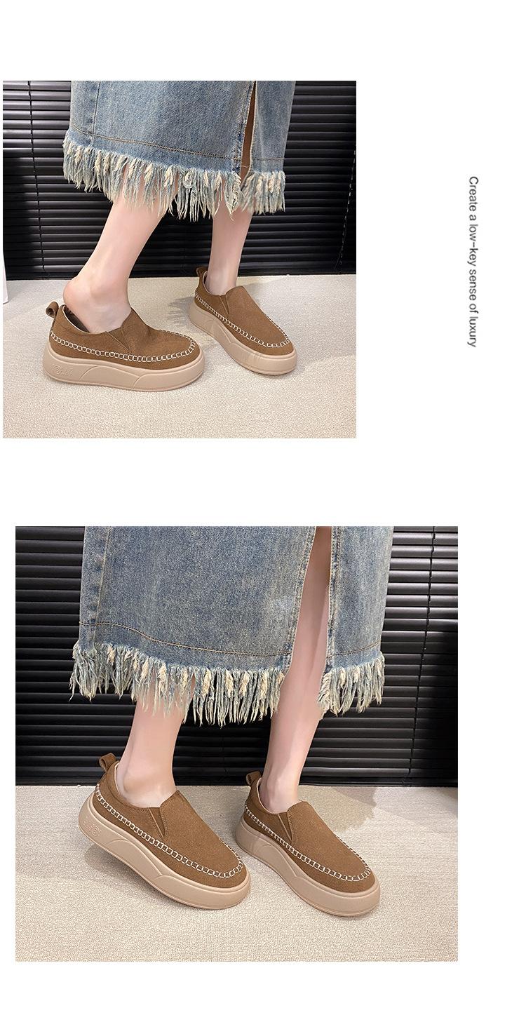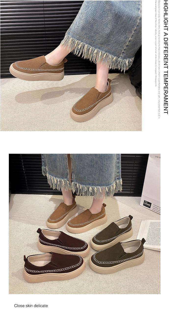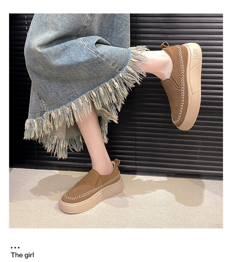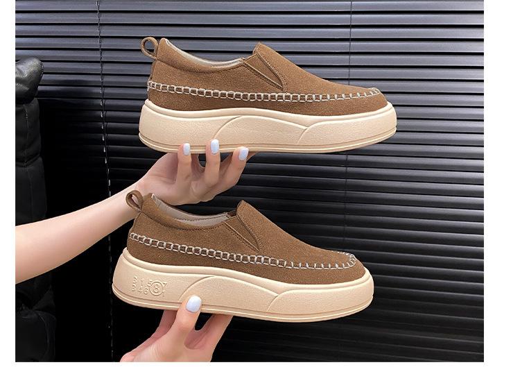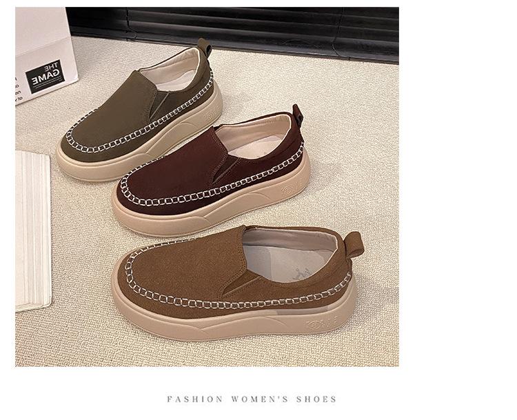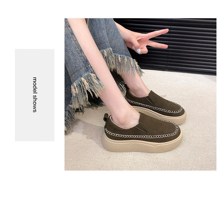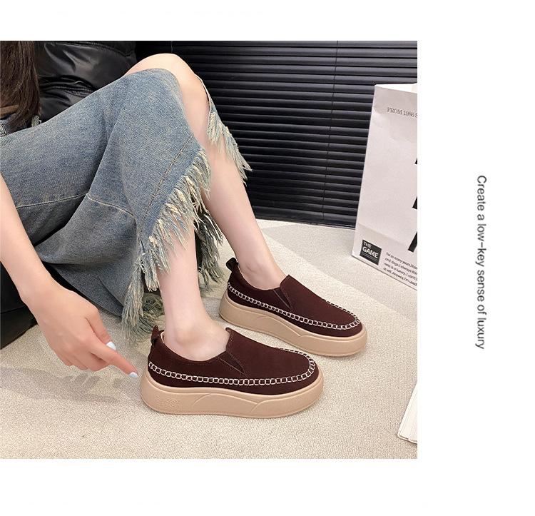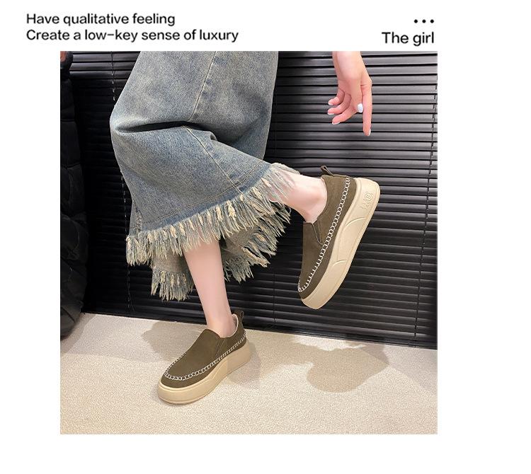 Zapatos de Plataforma de Cuero Genuino Otoño 2025 para Mujer Nueva Moda Zapatos Individuales Mocasines Slip-on Simples Versátiles Suela Gruesa Zapatos Holgazanes