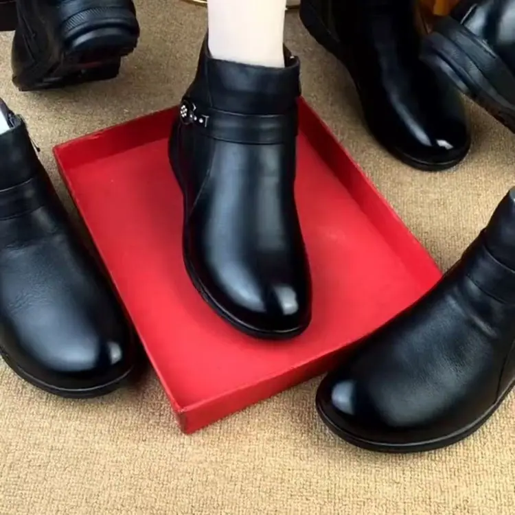 Nuevos Zapatos Cálidos de Algodón con Suela Blanda y Forro Polar para Mujer Invierno 2025 Espesos Antideslizantes Zapatos de Madre para Edad Media y Adulta Botines de Moda para Mujer