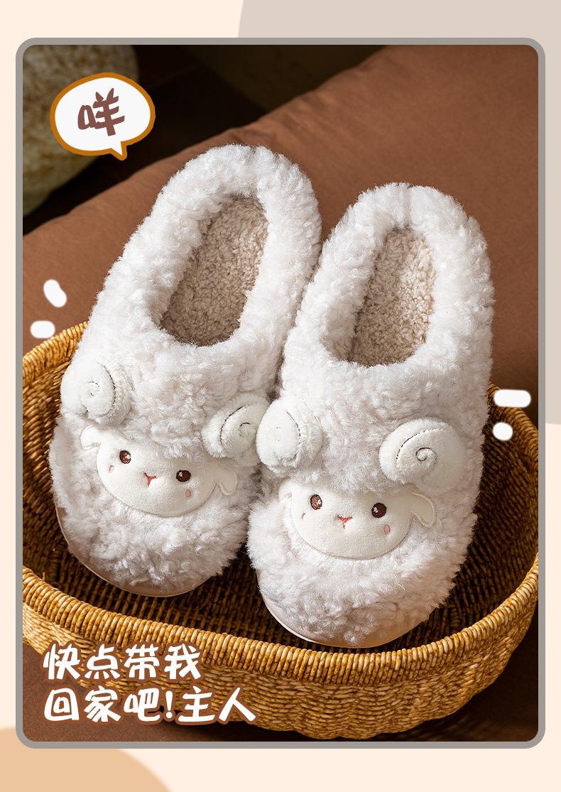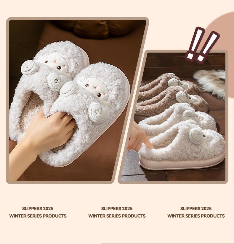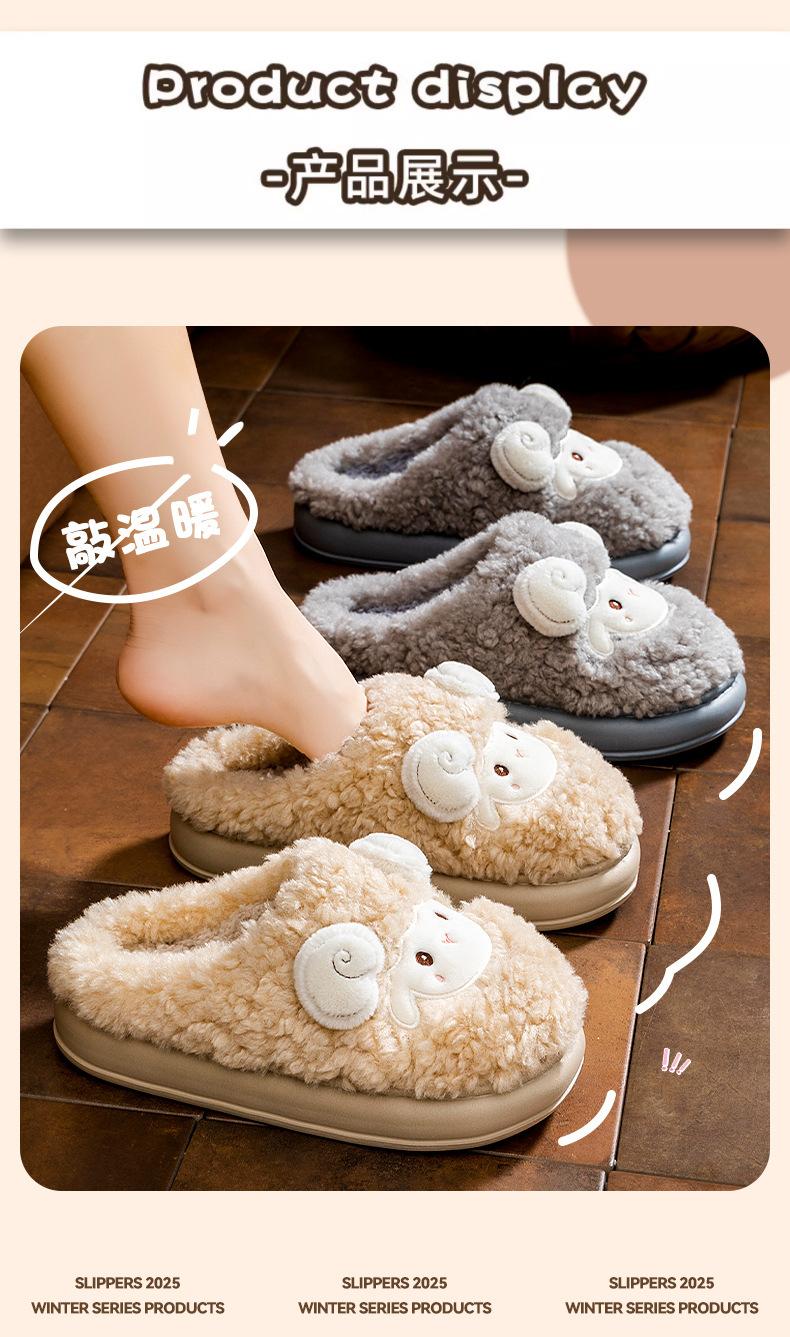 Lindas Pantuflas de Algodón para Mujer 2025 Nuevo Otoño e Invierno Interior Hogar Felpa Suela Gruesa Pantuflas de Dibujos Animados