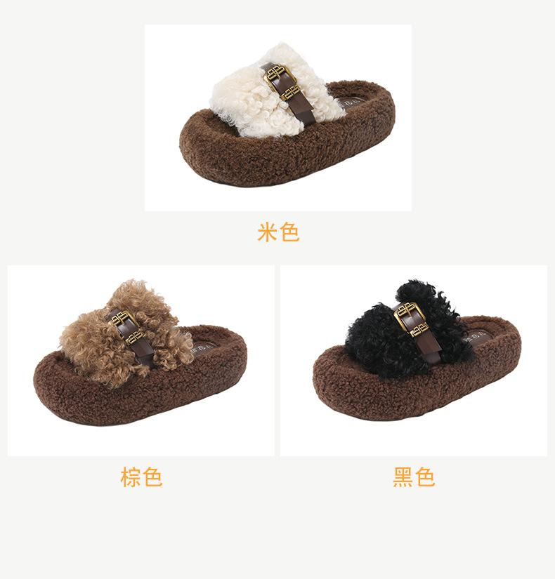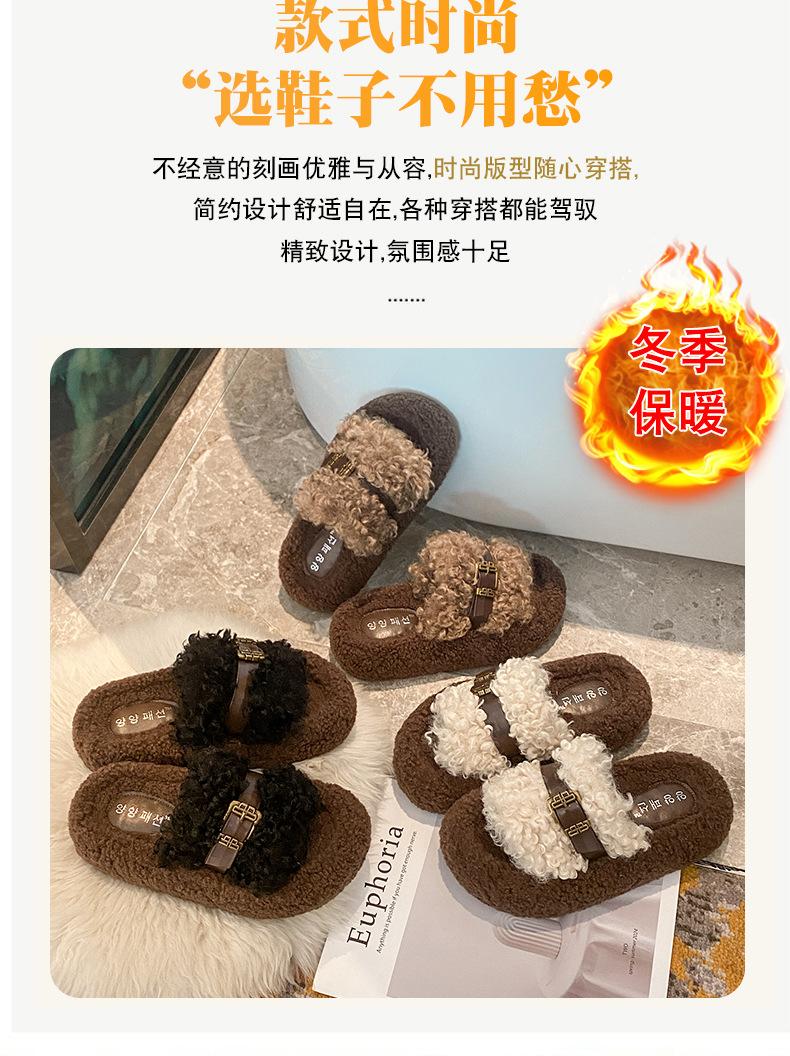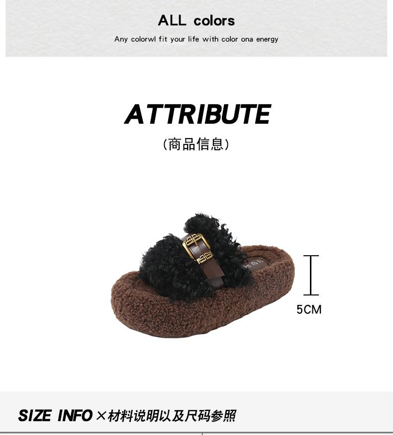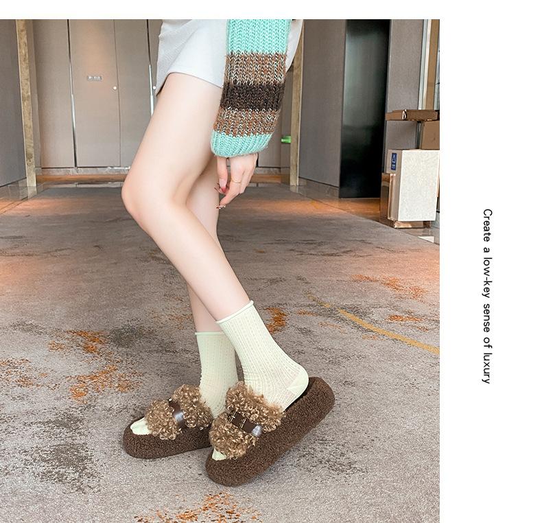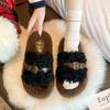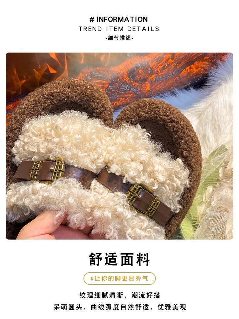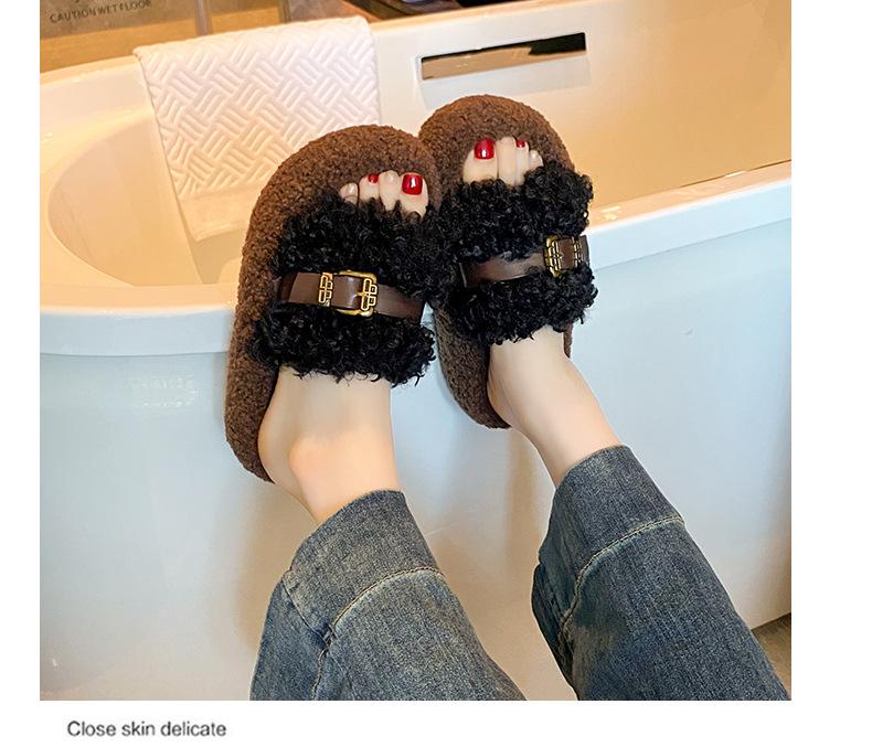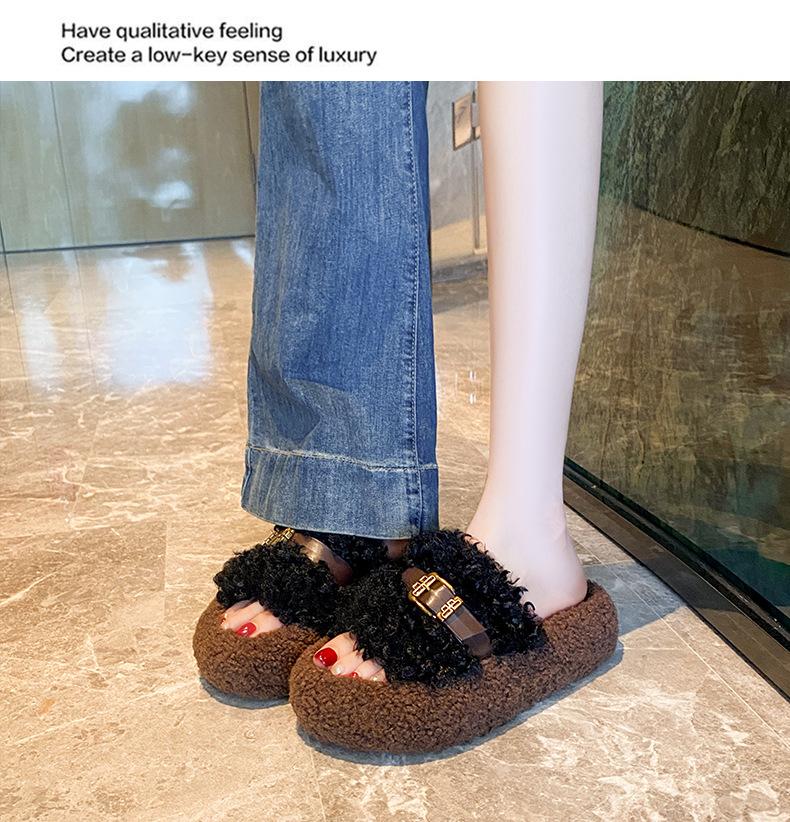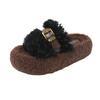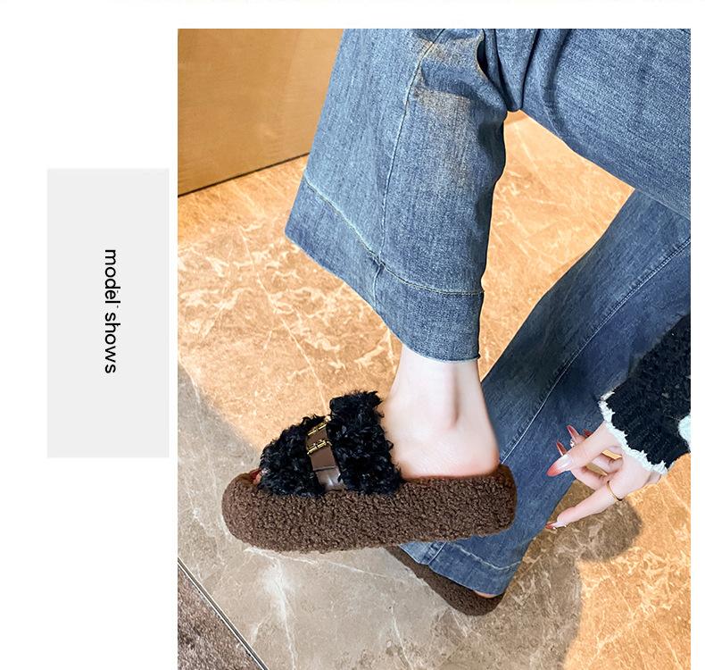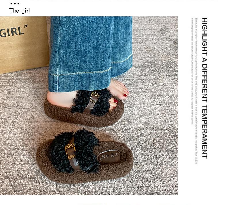 Moda Retro Hebilla Metálica Zapatos Peludos Ropa Exterior 2025 Otoño/Invierno Nuevo Cómodo Suela Suave Casual Versátil Zapatillas de Una Tira Mujer