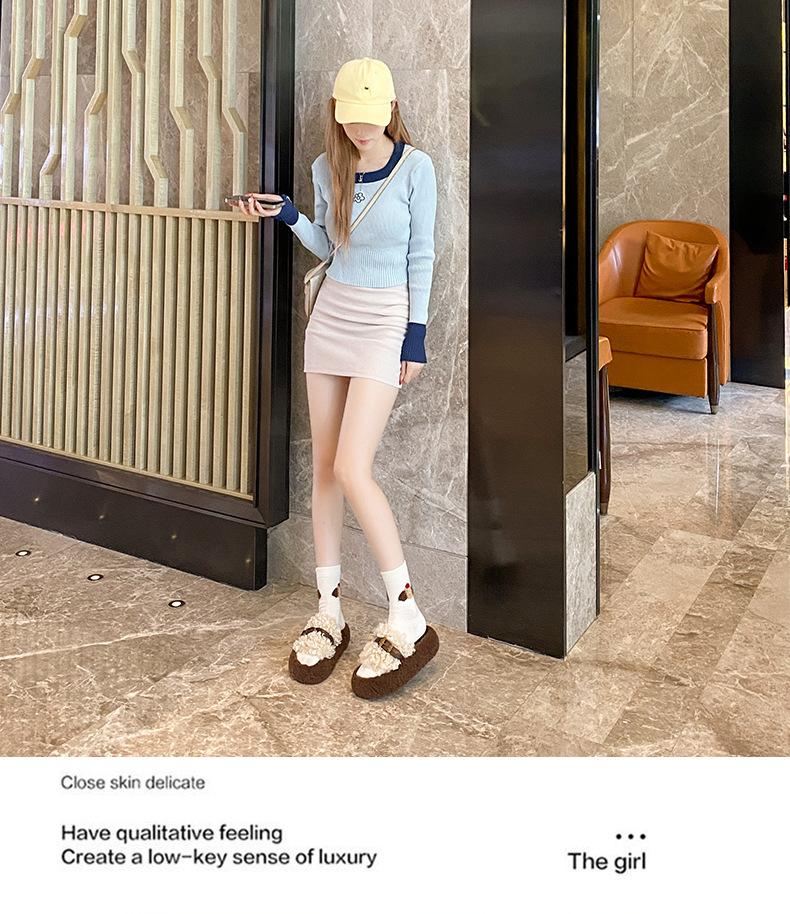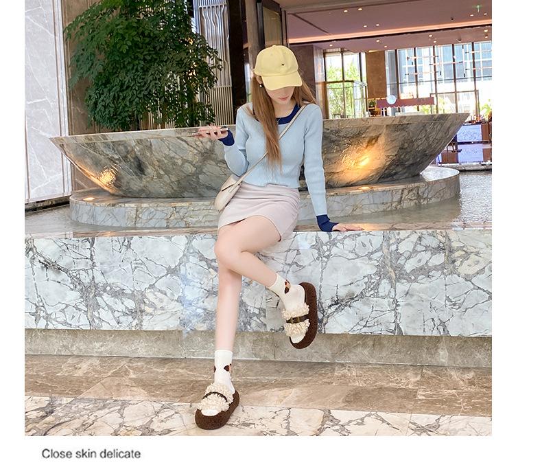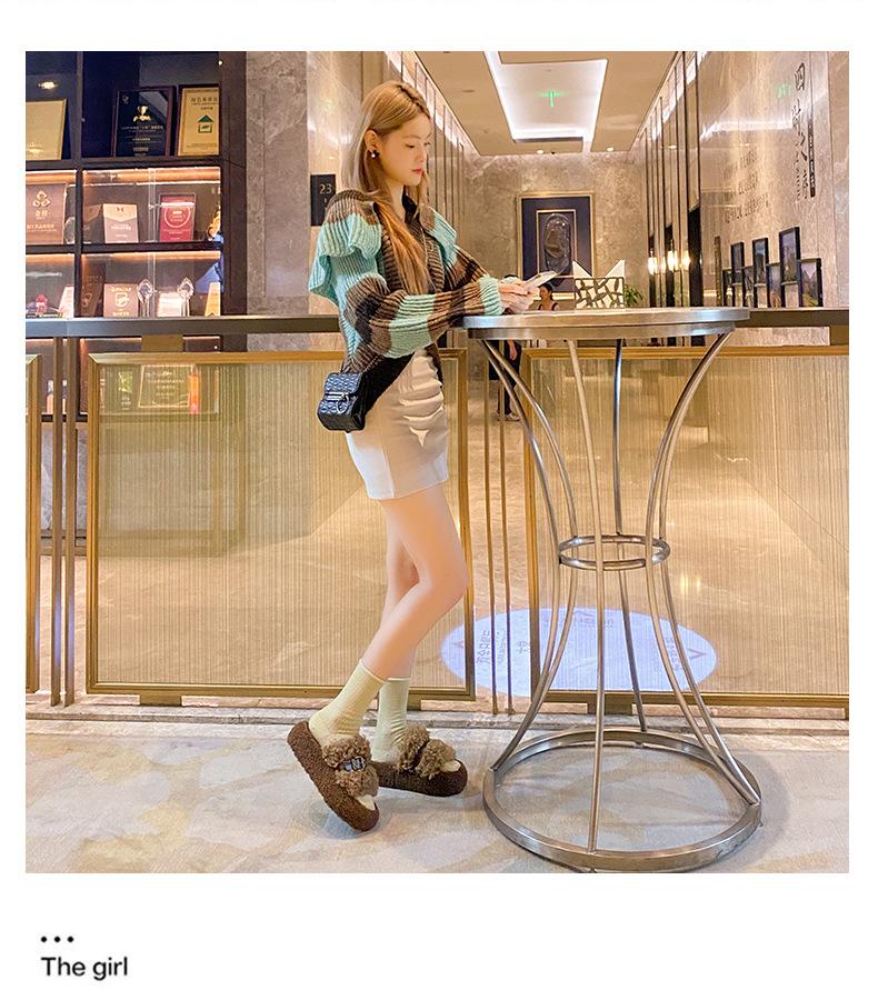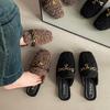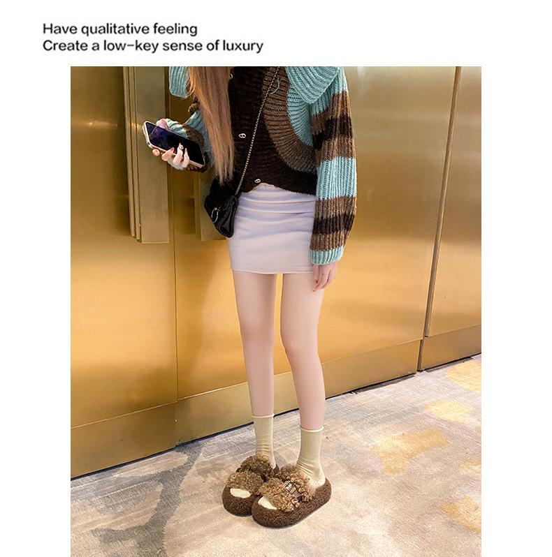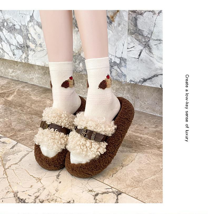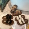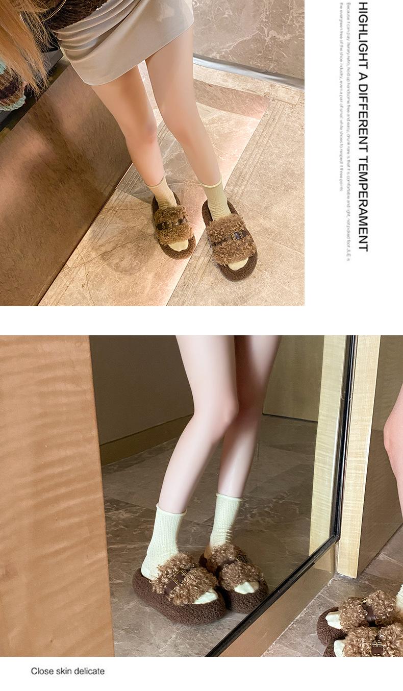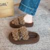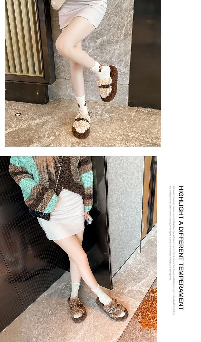 Moda Retro Hebilla Metálica Zapatos Peludos Ropa Exterior 2025 Otoño/Invierno Nuevo Cómodo Suela Suave Casual Versátil Zapatillas de Una Tira Mujer