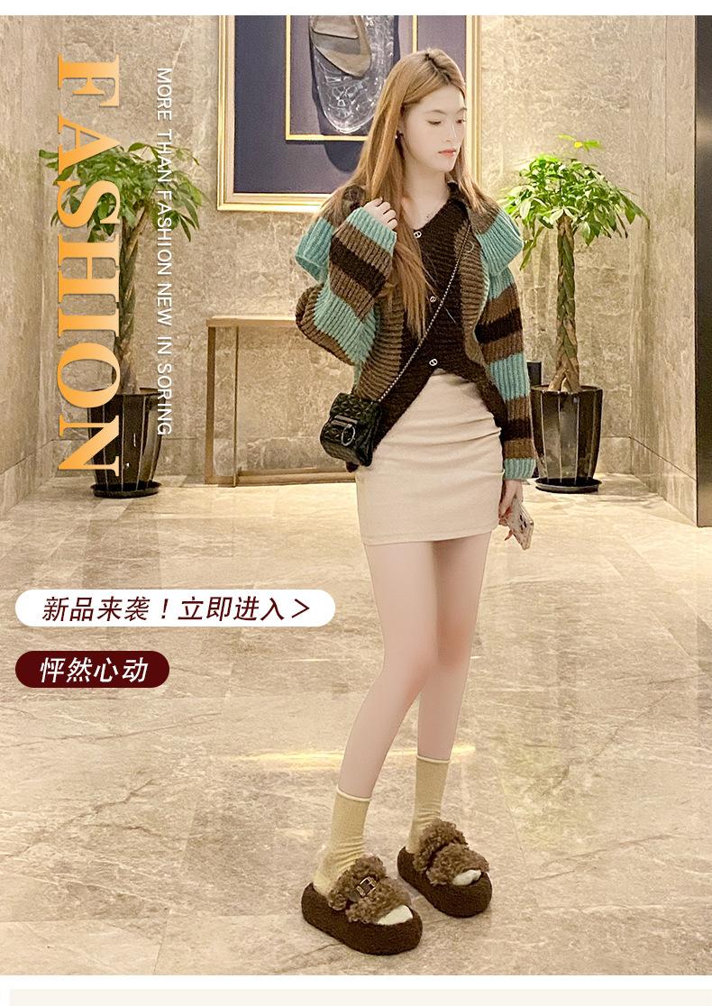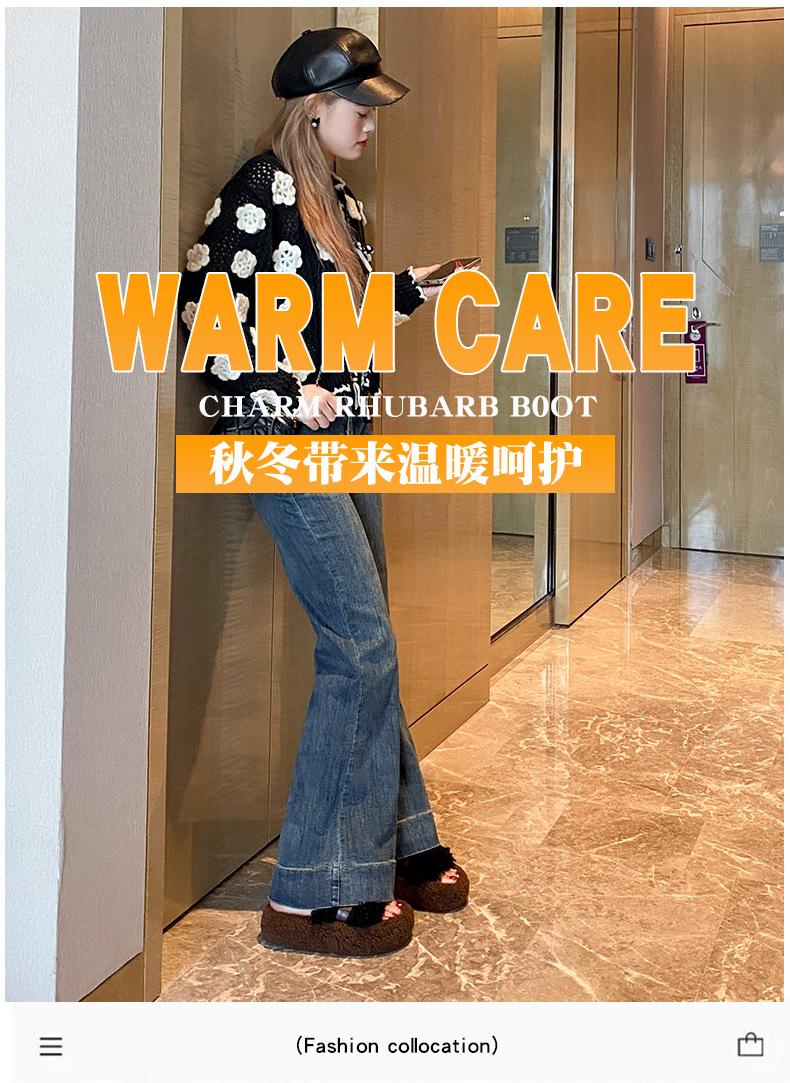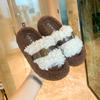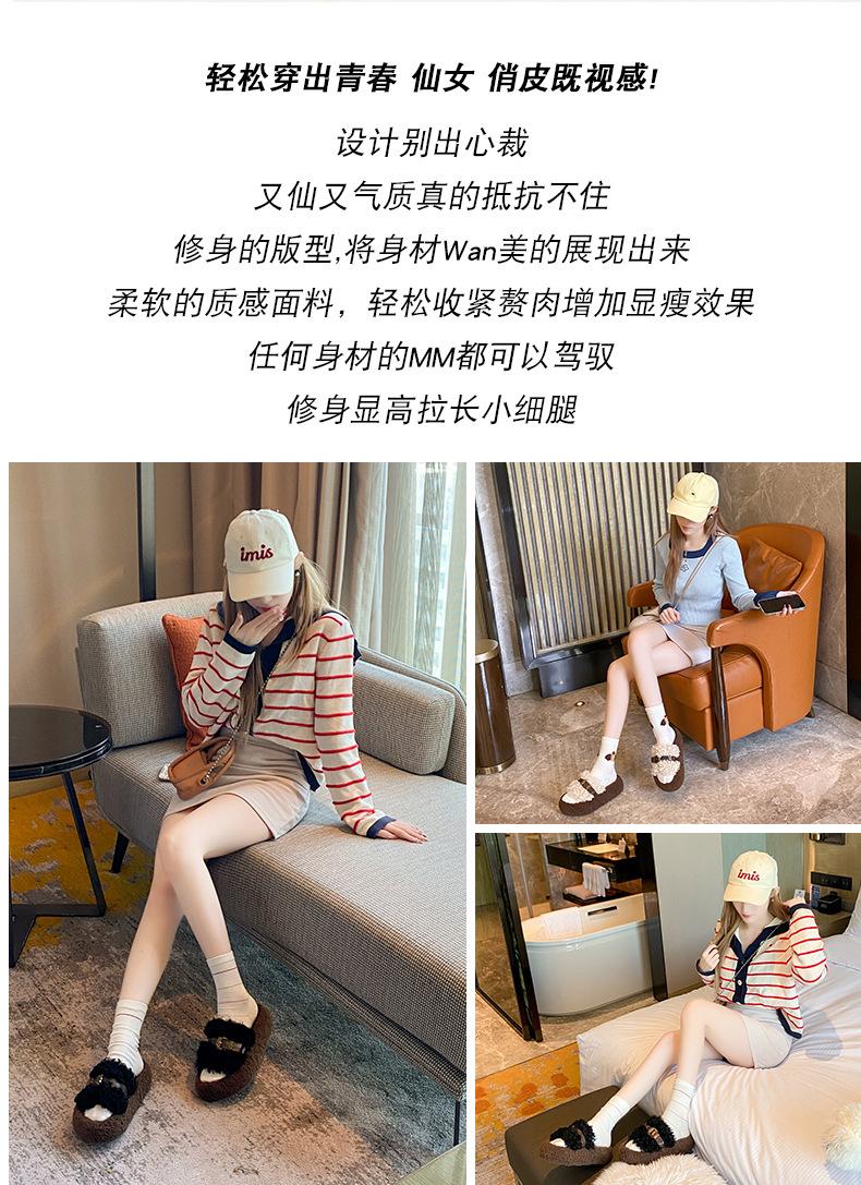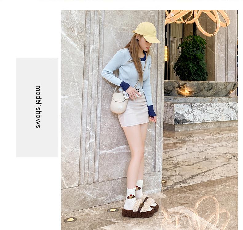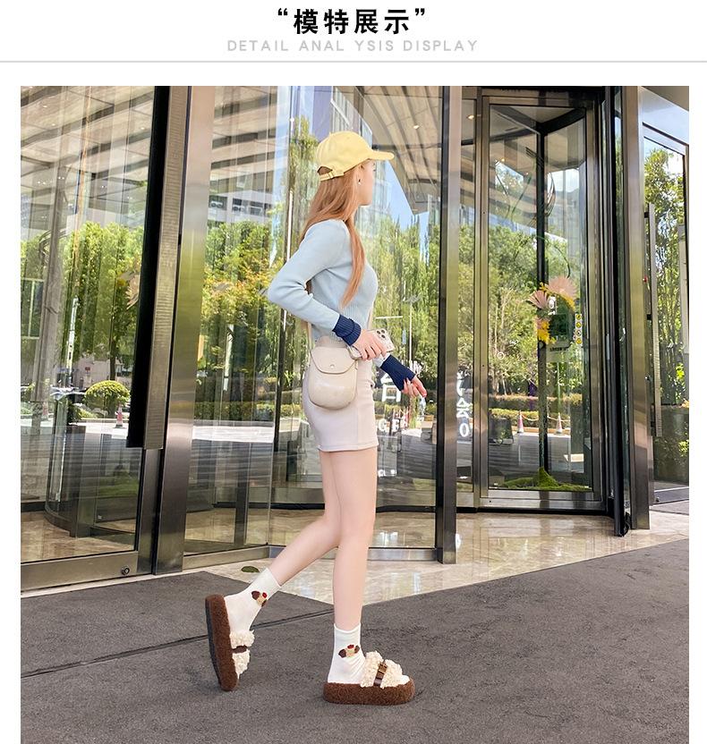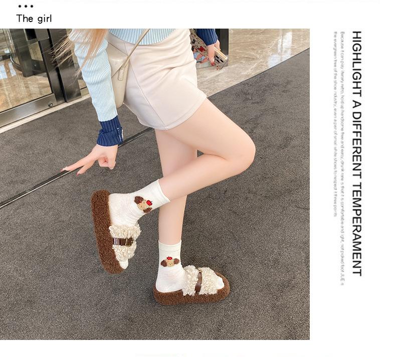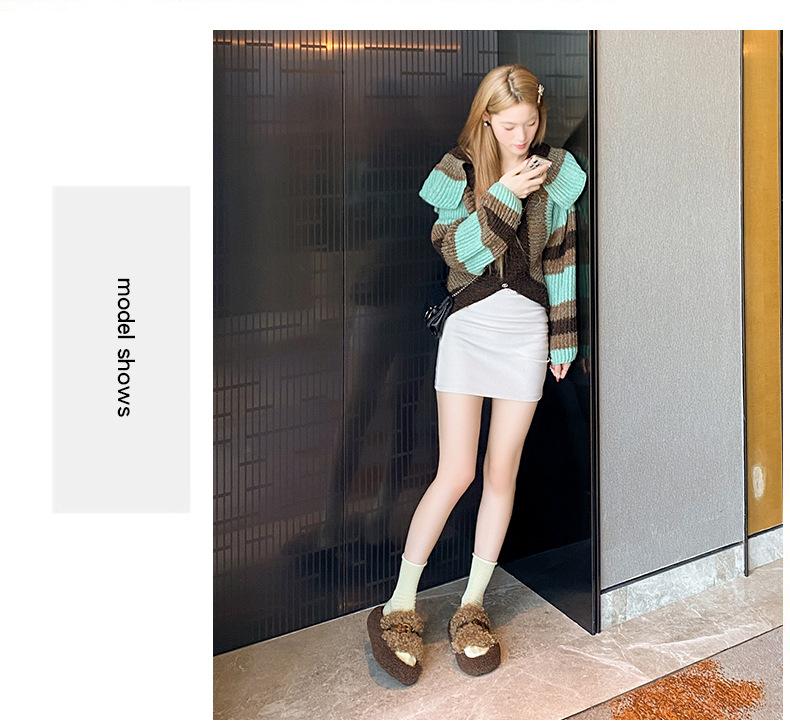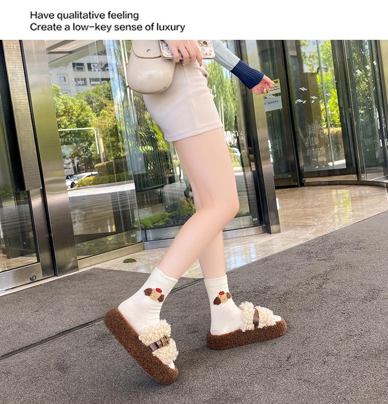 Moda Retro Hebilla Metálica Zapatos Peludos Ropa Exterior 2025 Otoño/Invierno Nuevo Cómodo Suela Suave Casual Versátil Zapatillas de Una Tira Mujer