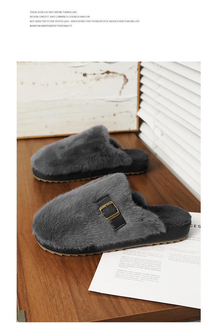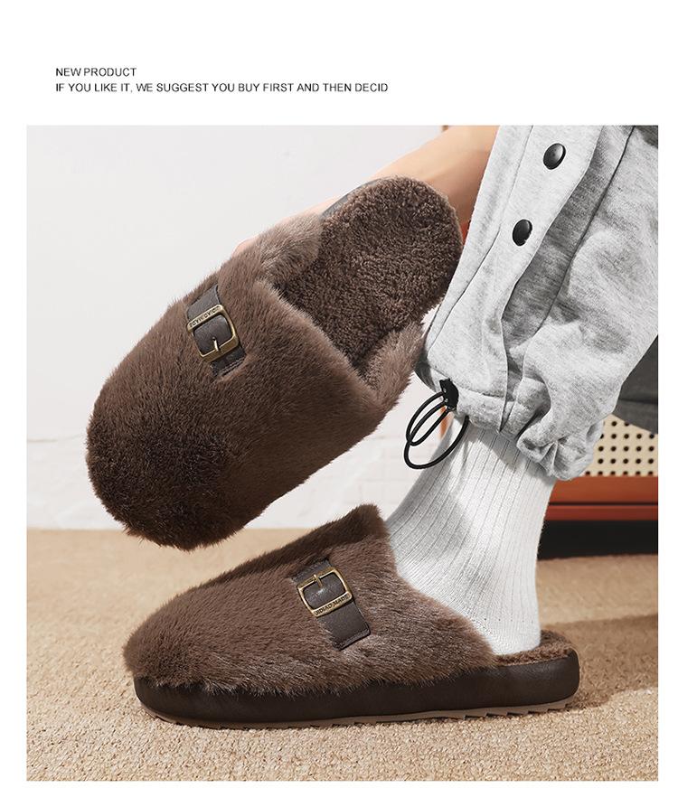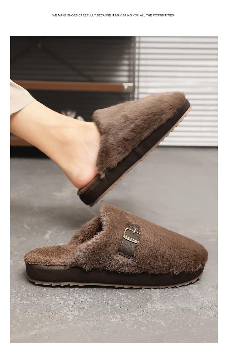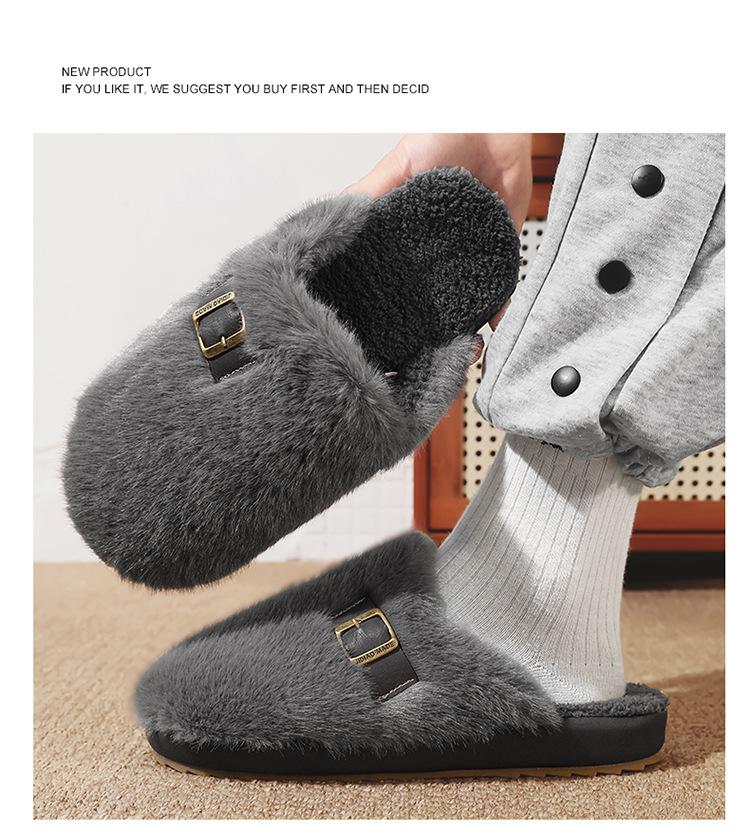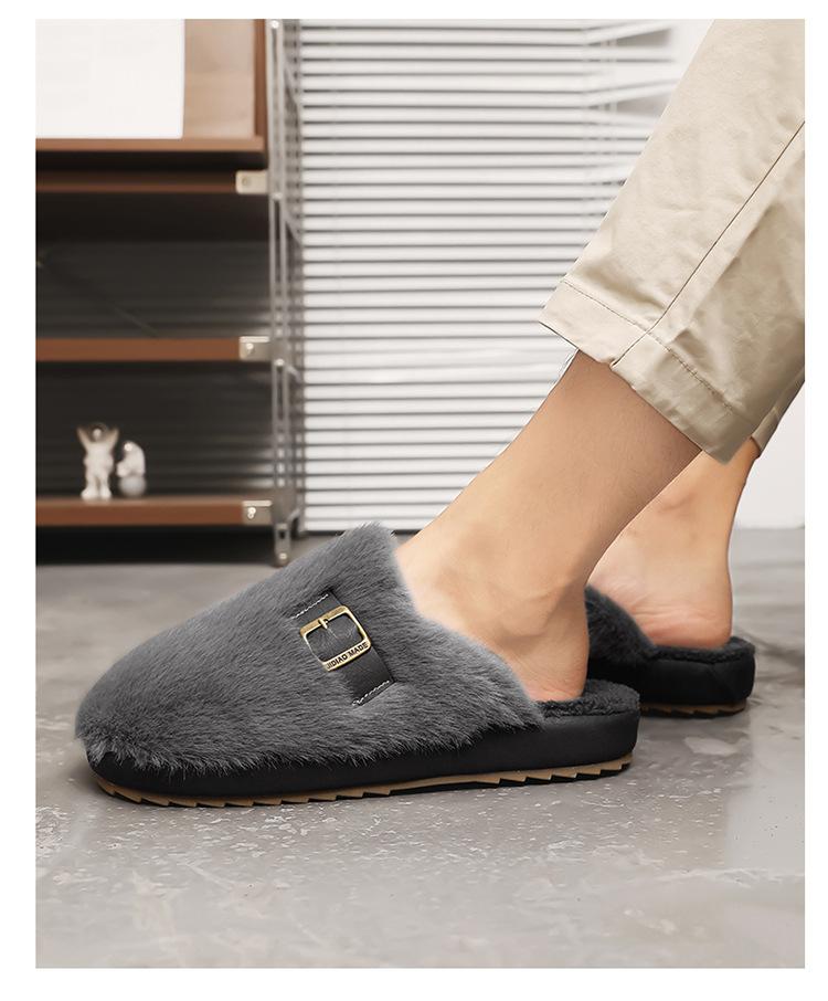 Pantuflas de Algodón Personalizadas Hombre Invierno Antideslizantes Interior Hogar Cálidas Zapatos de Algodón Felpa Engrosadas Simples Media Envoltura Pantuflas Peludas
