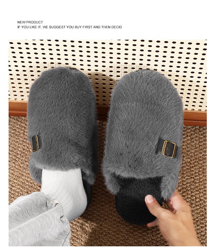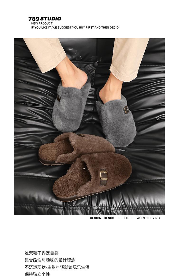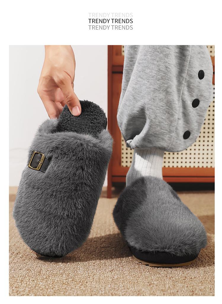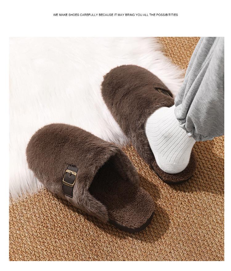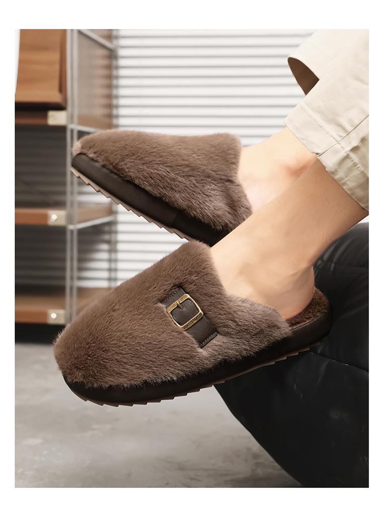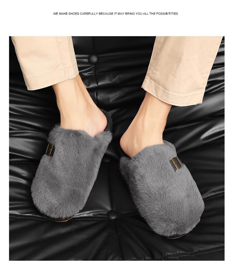 Pantuflas de Algodón Personalizadas Hombre Invierno Antideslizantes Interior Hogar Cálidas Zapatos de Algodón Felpa Engrosadas Simples Media Envoltura Pantuflas Peludas