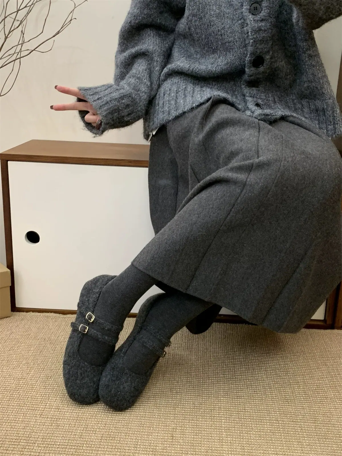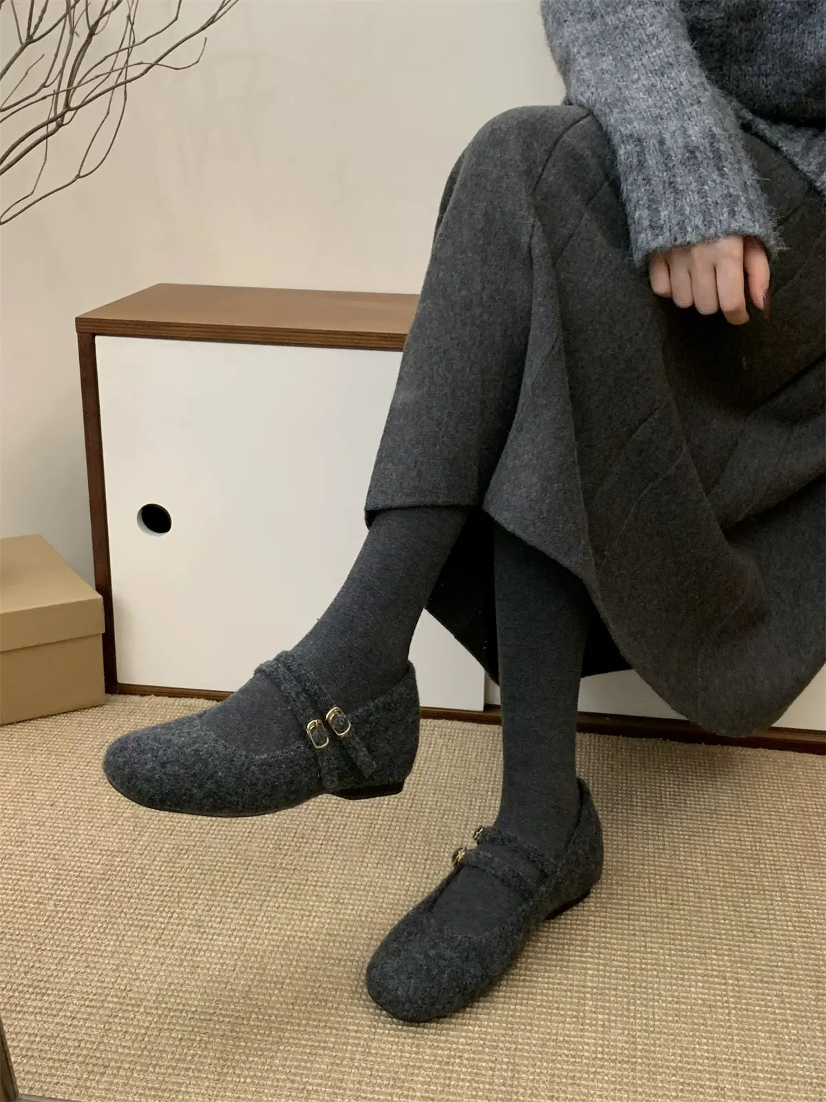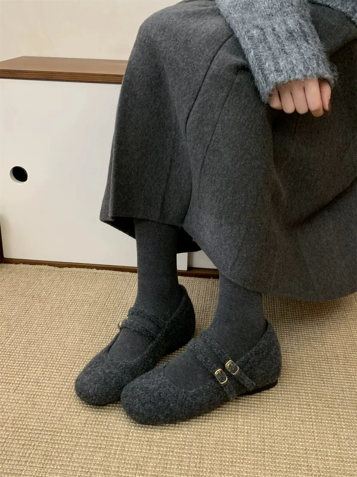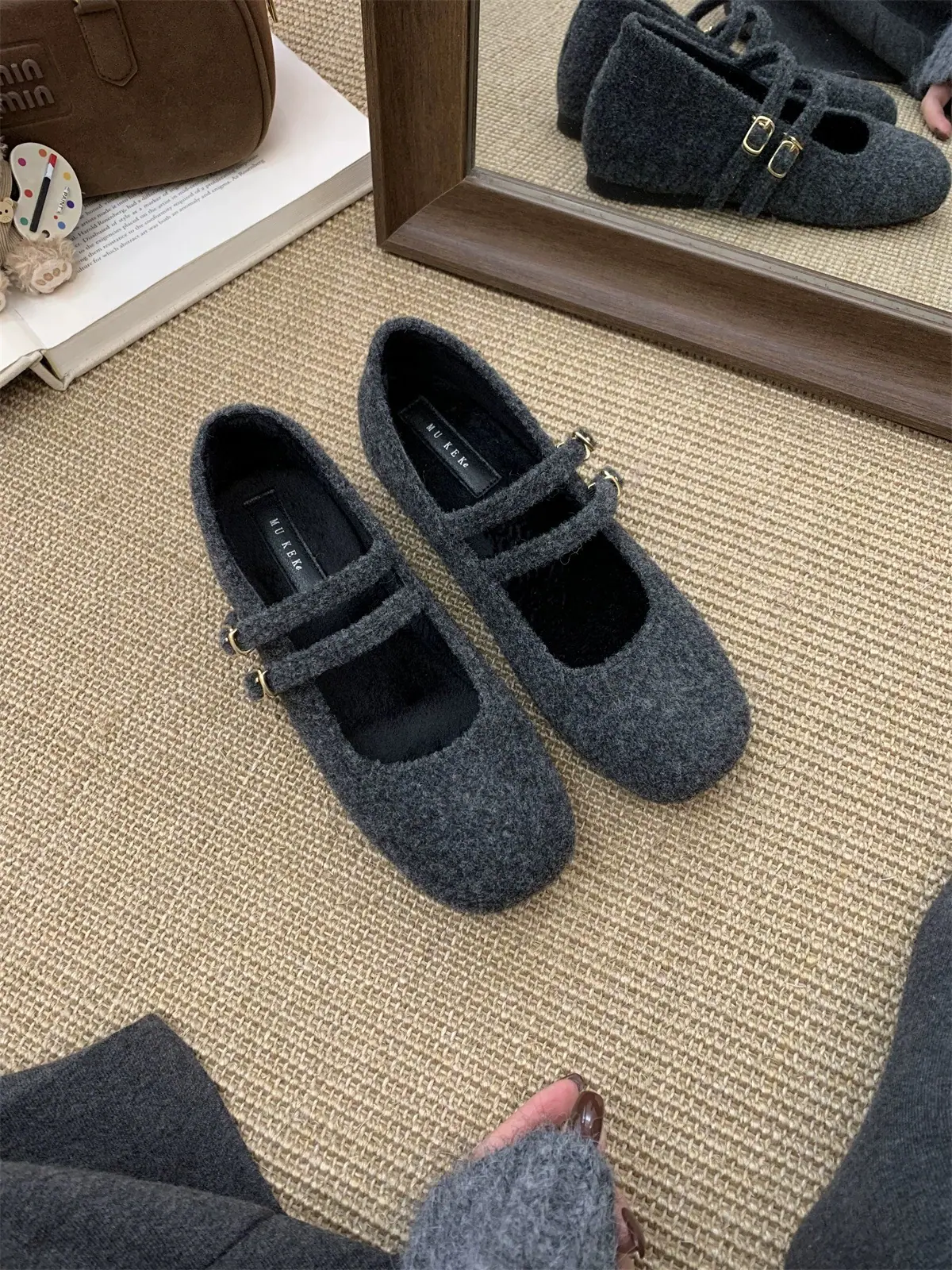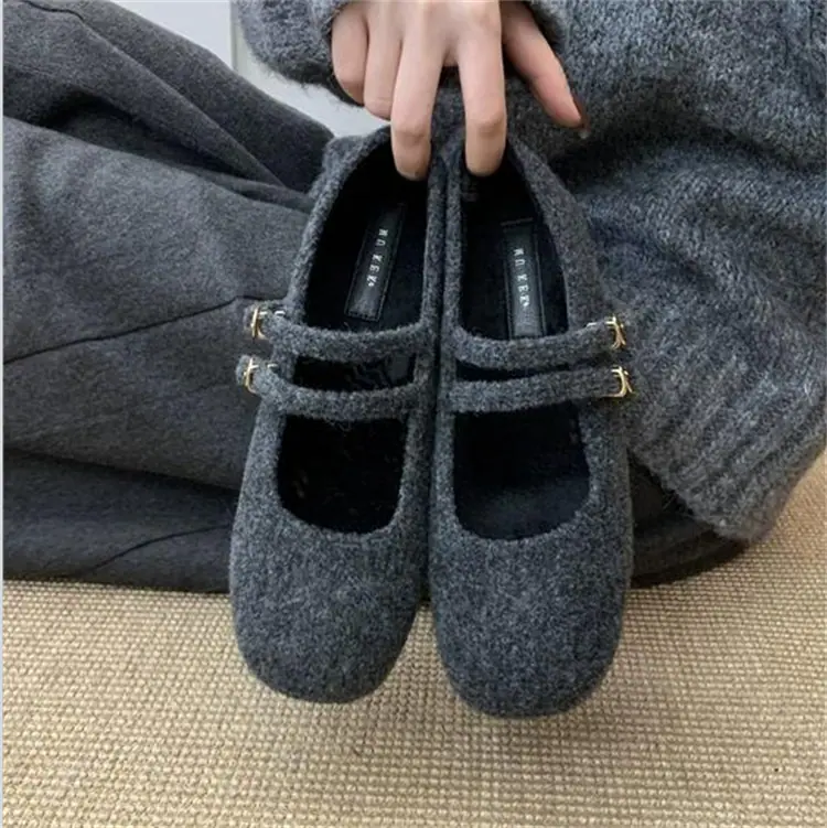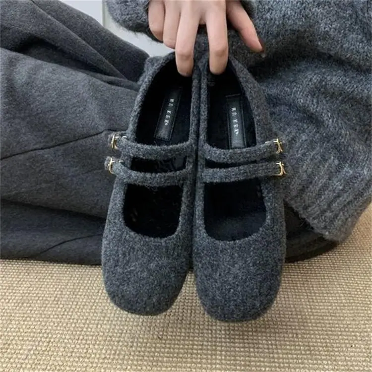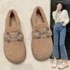 Temperamental Ligero Retro Estilo Chanel Forrado de Felpa Cálido Plano Zapatos de Algodón Mujer 2025 Nuevo Invierno Suela Suave Zapatos Mary Jane