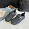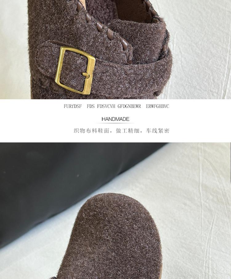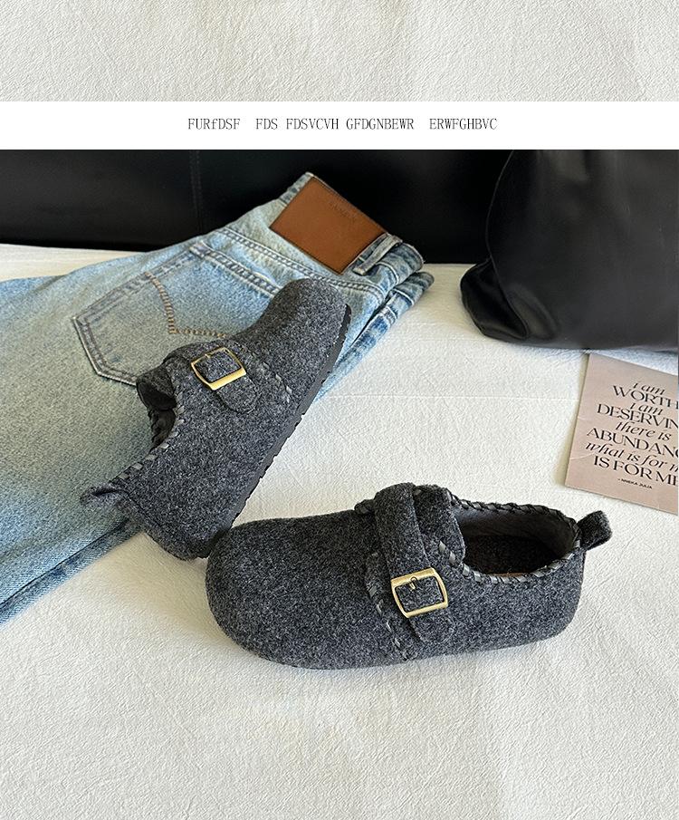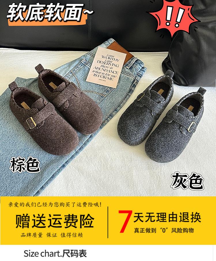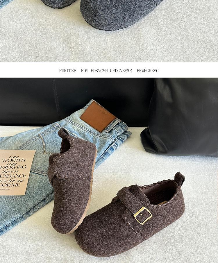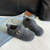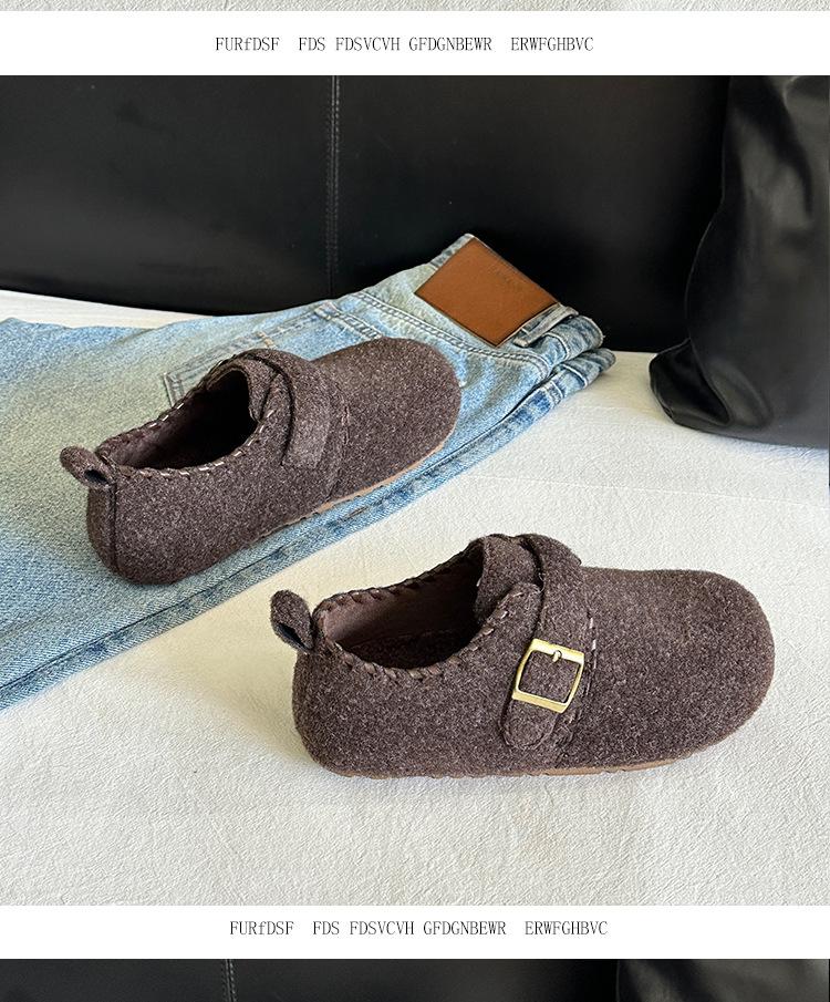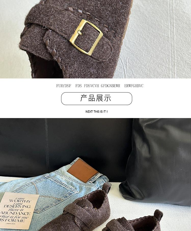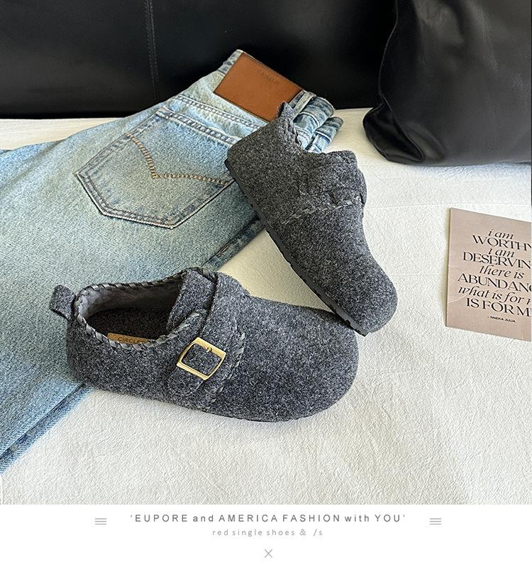 Invierno 2025 Nuevo Retro Casual Forrado de Forro Polar Cálido Birkenstock de Punta Redonda Versátil Slip-on Plano Zapatos Individuales para Mujer