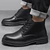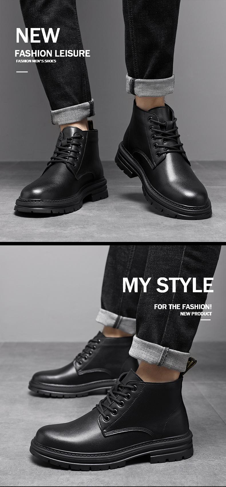 Botas Martin para hombre estilo británico negras de suela gruesa botas de trabajo para ir al trabajo de negocios ropa formal de alta gama zapatos de cuero de caña alta de cuero genuino tendencia