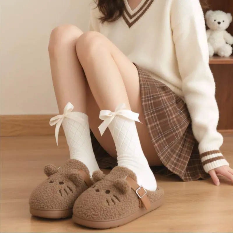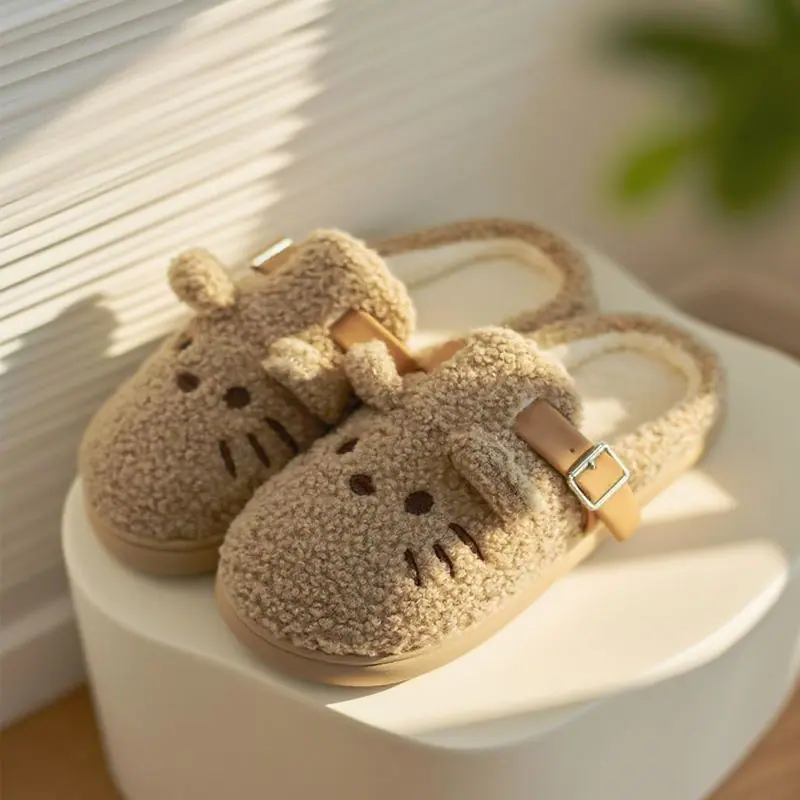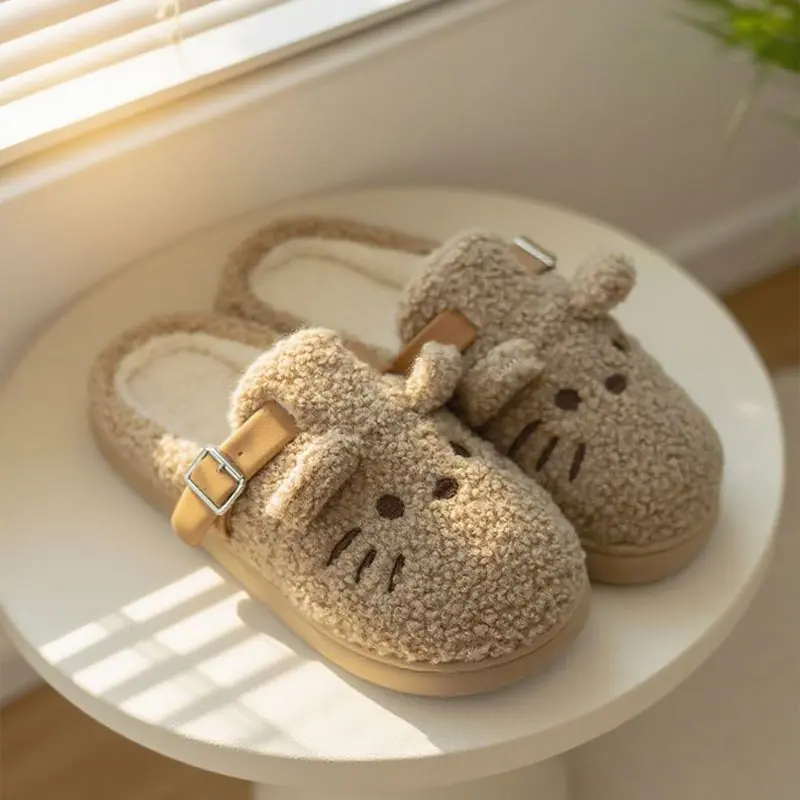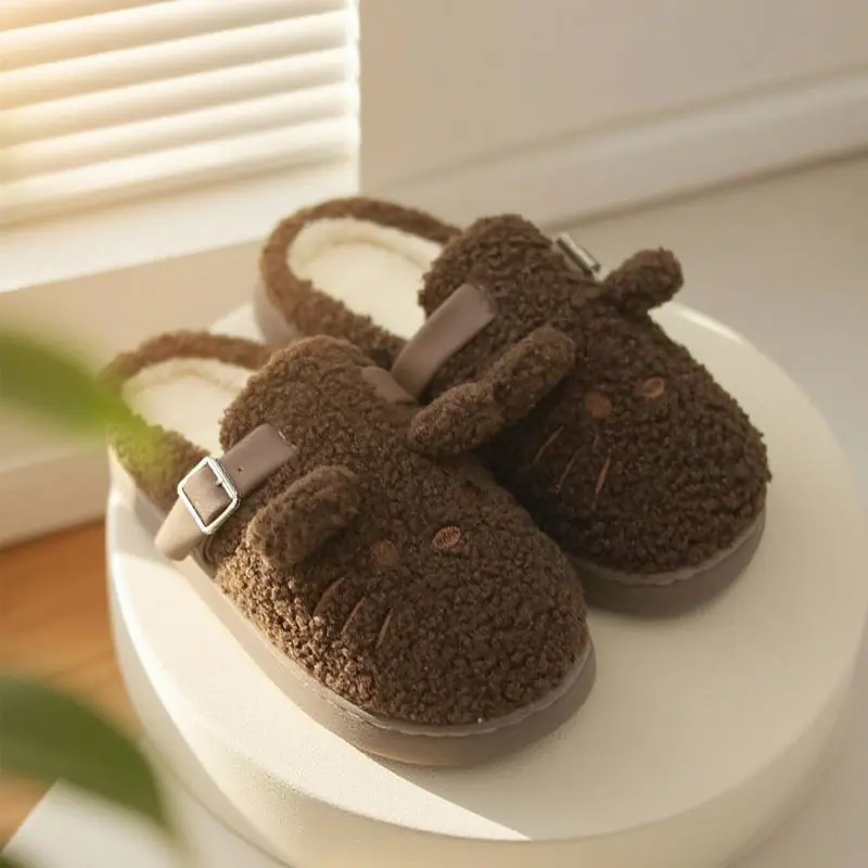2025 Otoño/Invierno Nueva Moda Versátiles Pantuflas de Algodón para Mujer Dibujos Animados Lindas Pantuflas Cálidas de Punta Cerrada para Mujer