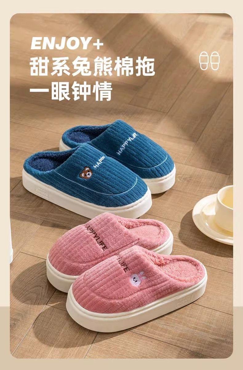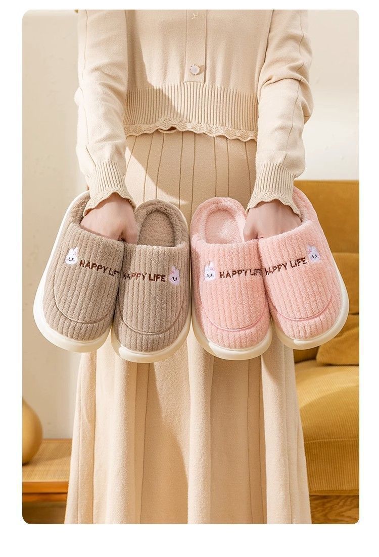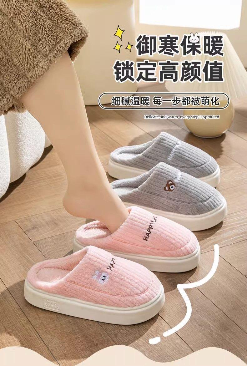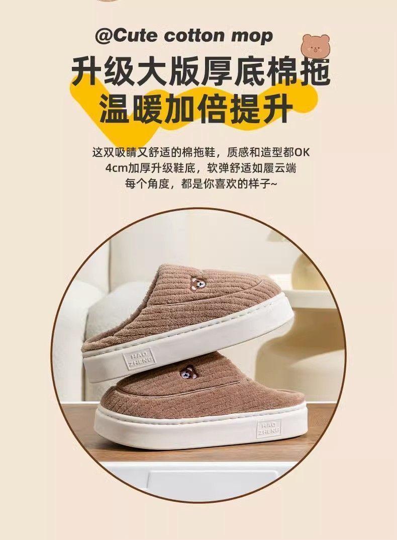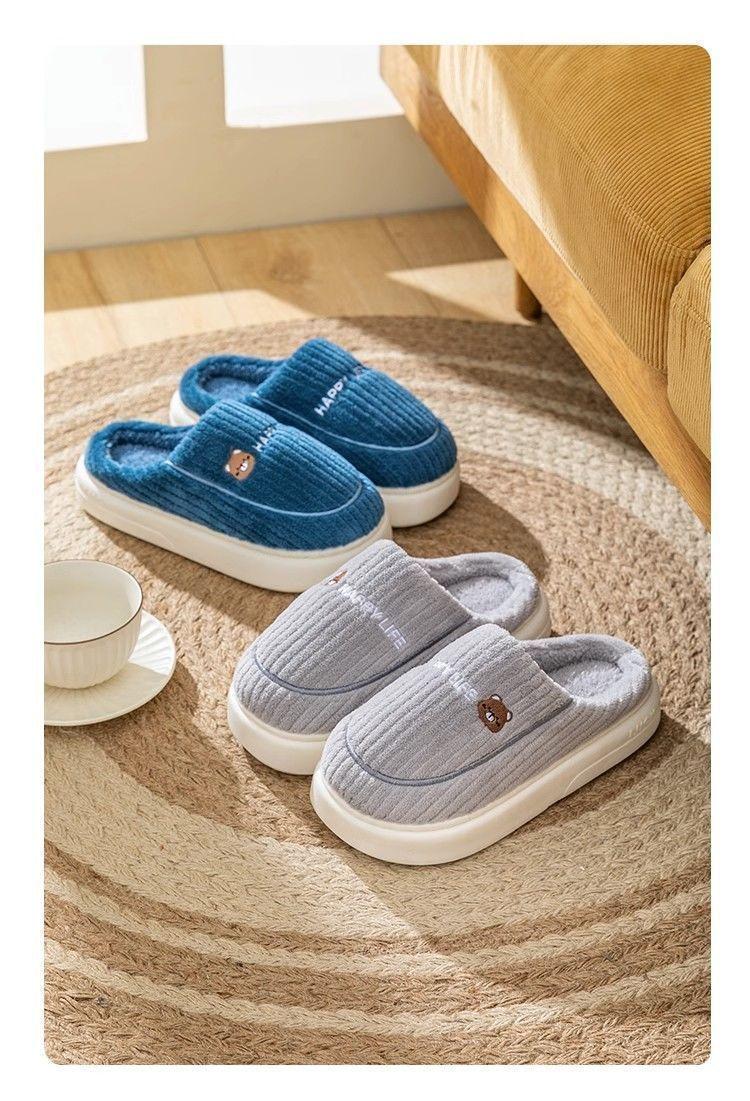 Pantuflas de Algodón para Mujer Cubre Talón Pareja Suela Gruesa Hogar Suela Suave Invierno Interior Estilo Coreano Antideslizante Lindas Zapatos de Confinamiento en Casa para Hombre