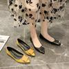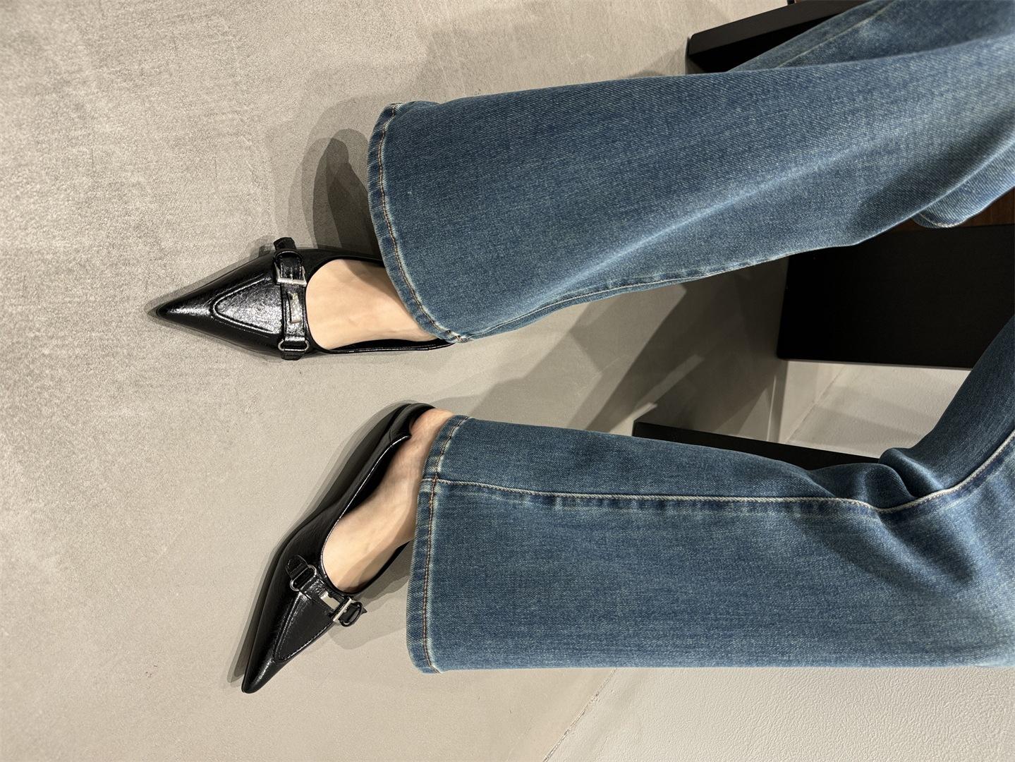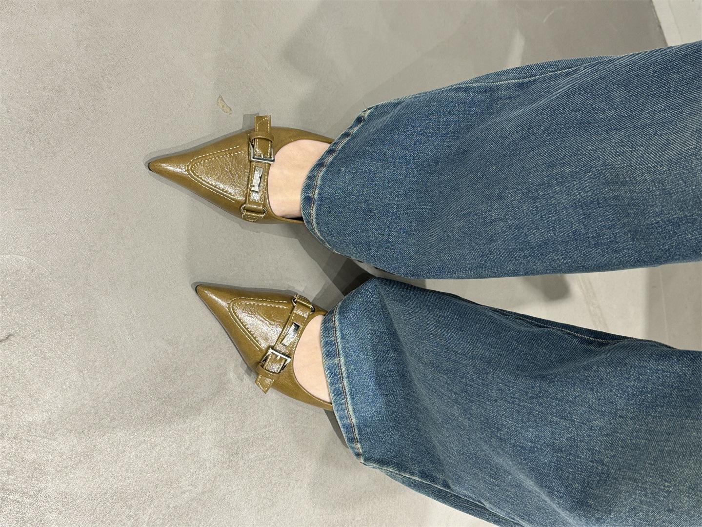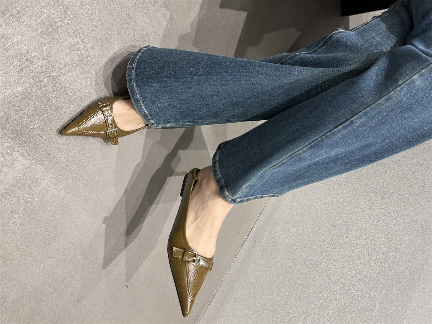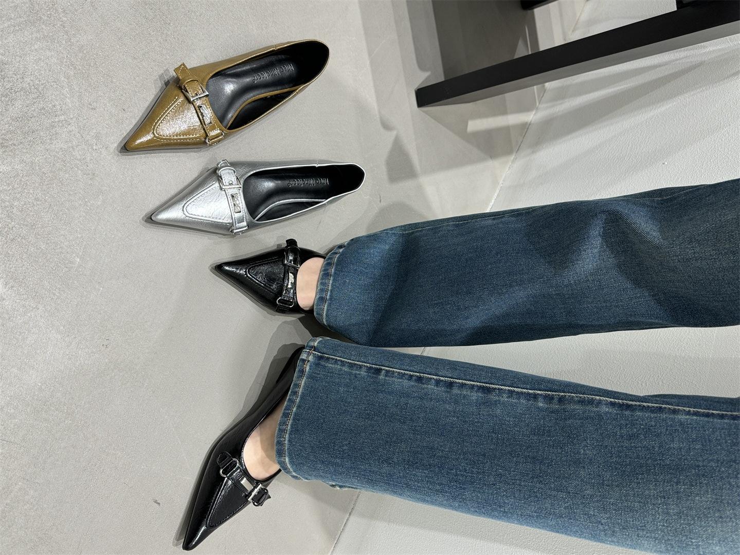 Zapatos planos de punta para primavera 2025 con hebilla metálica, zapatos de mujer de boca baja con suela blanda, mocasines cómodos de tacón bajo