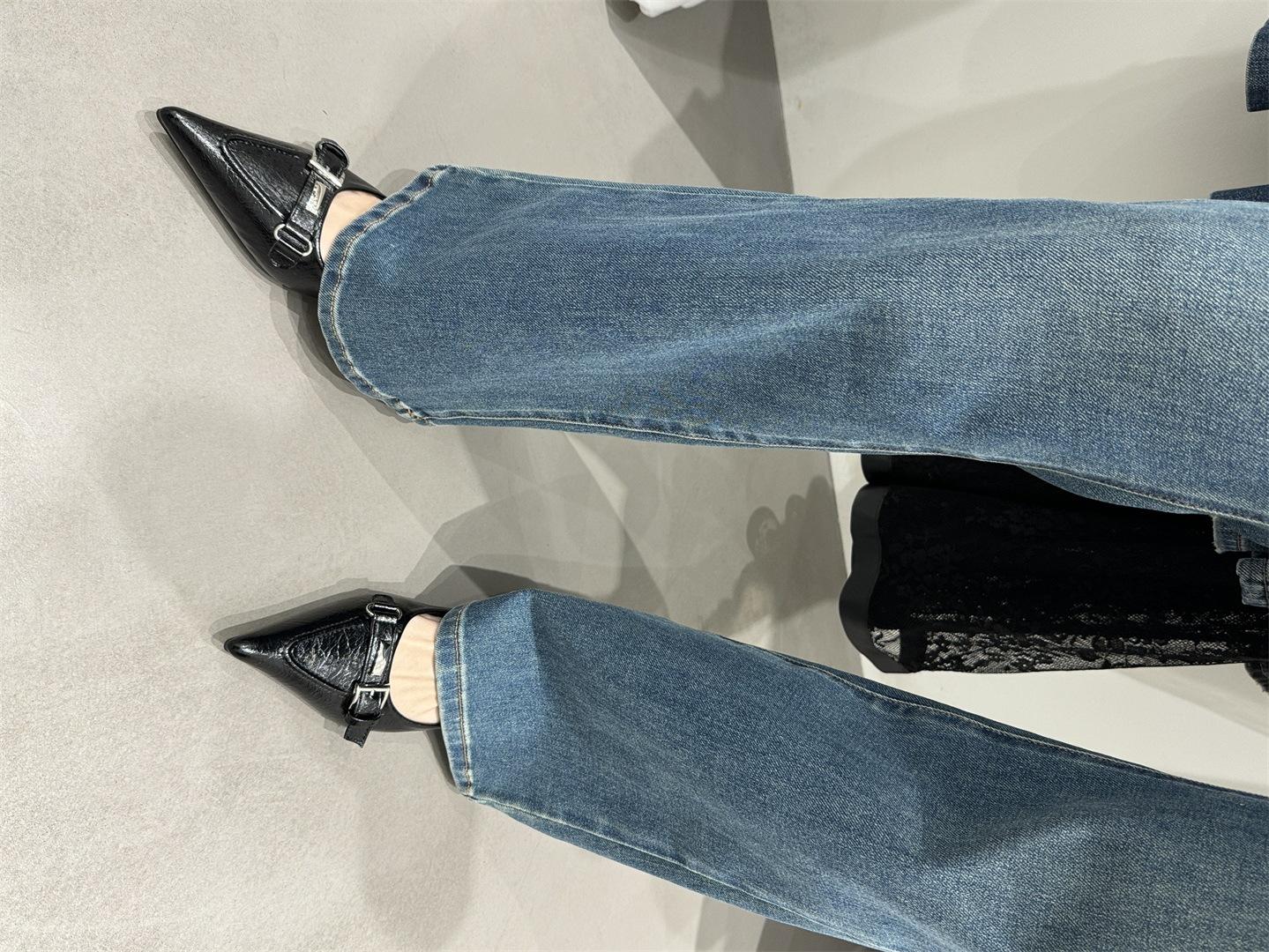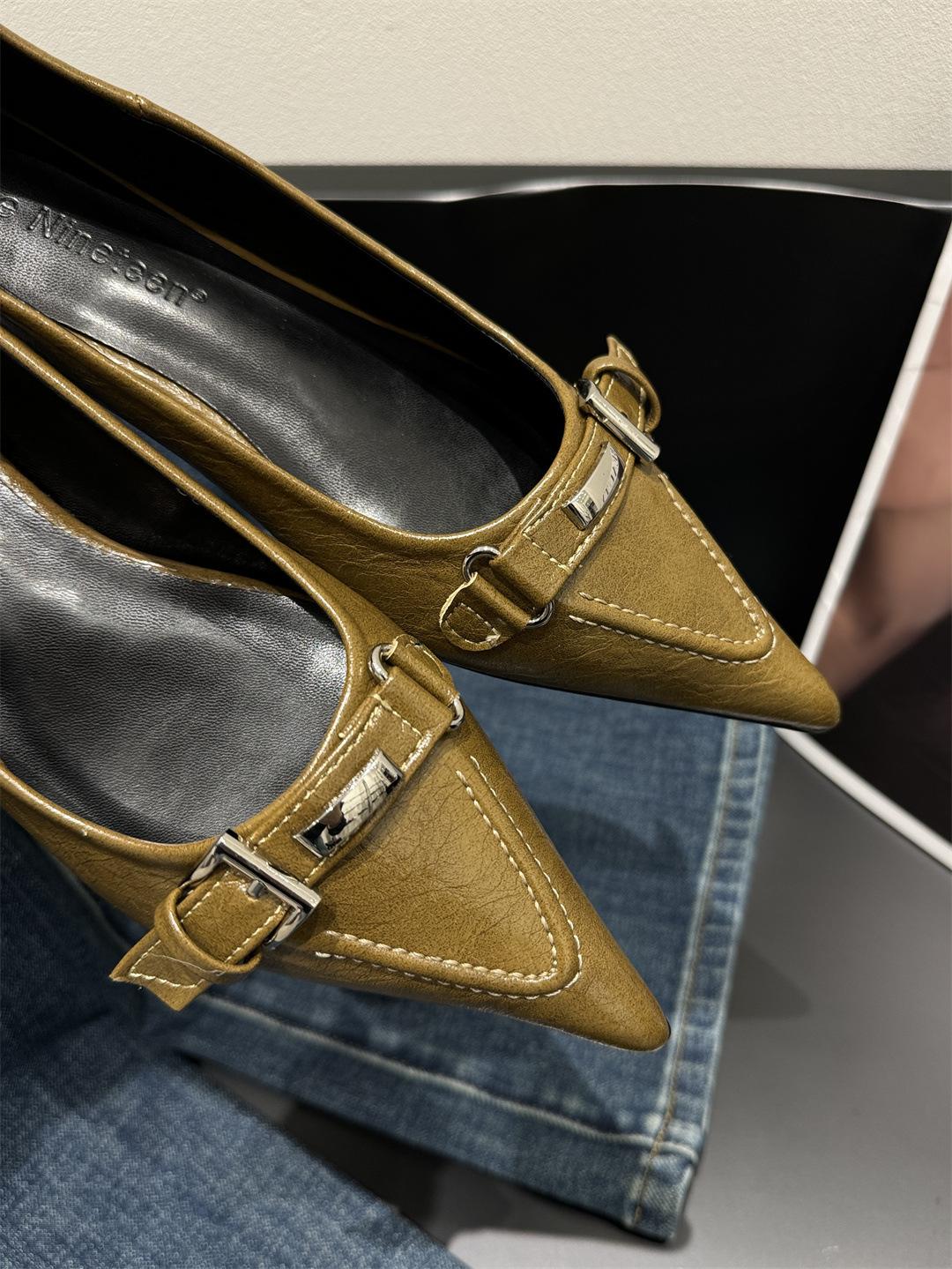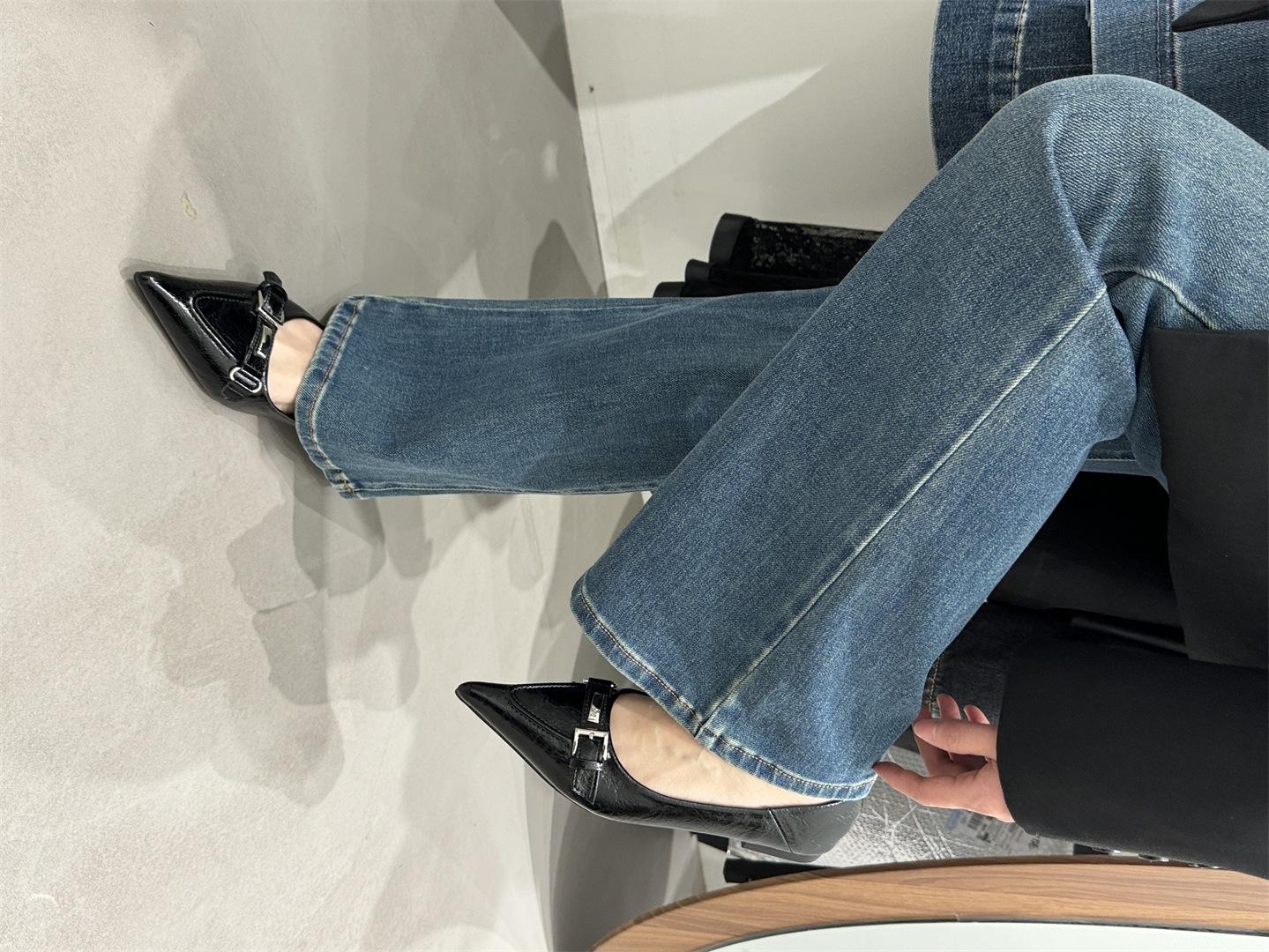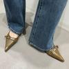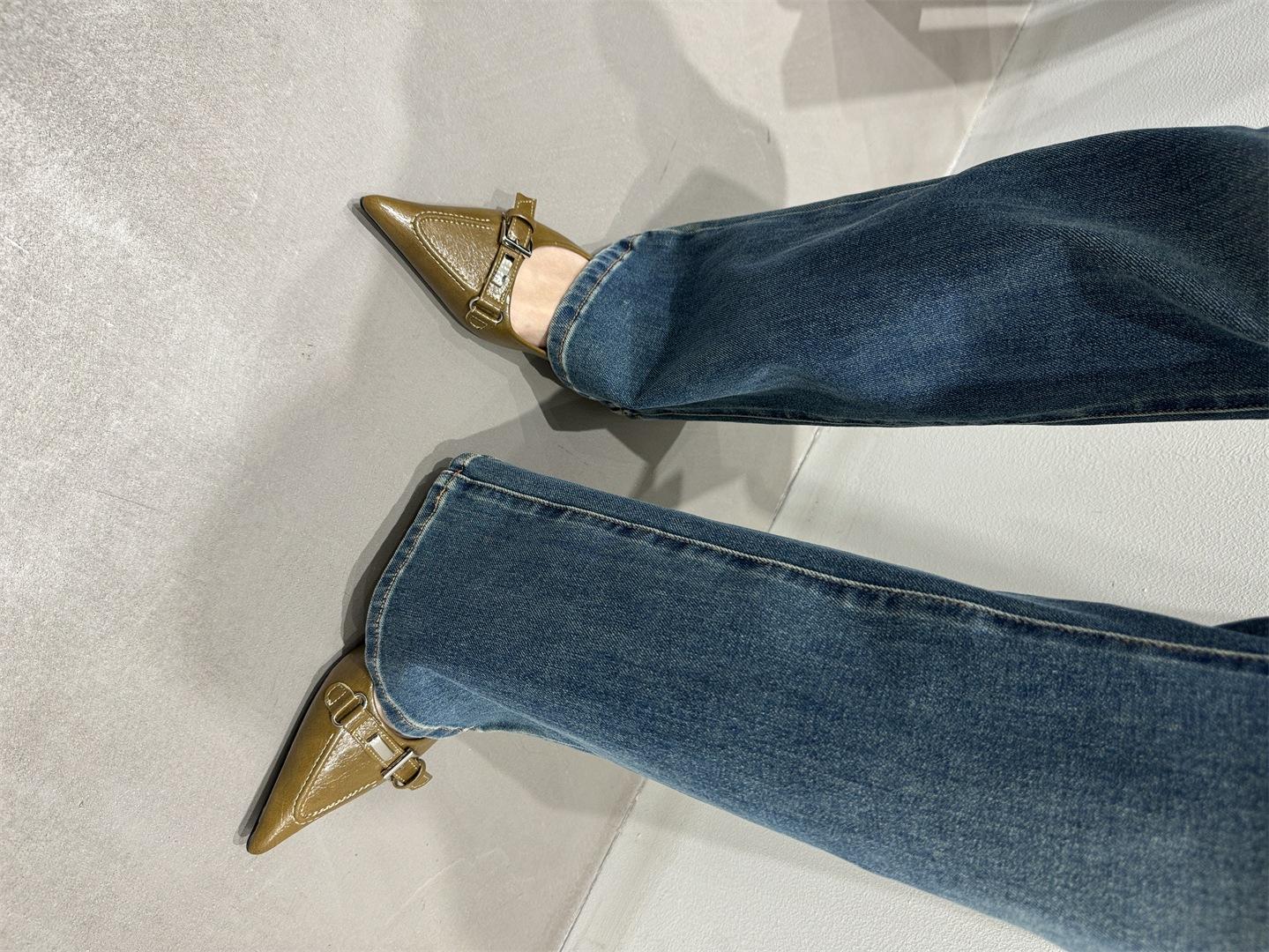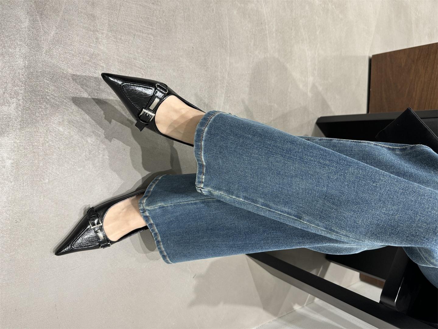 Zapatos planos de punta para primavera 2025 con hebilla metálica, zapatos de mujer de boca baja con suela blanda, mocasines cómodos de tacón bajo