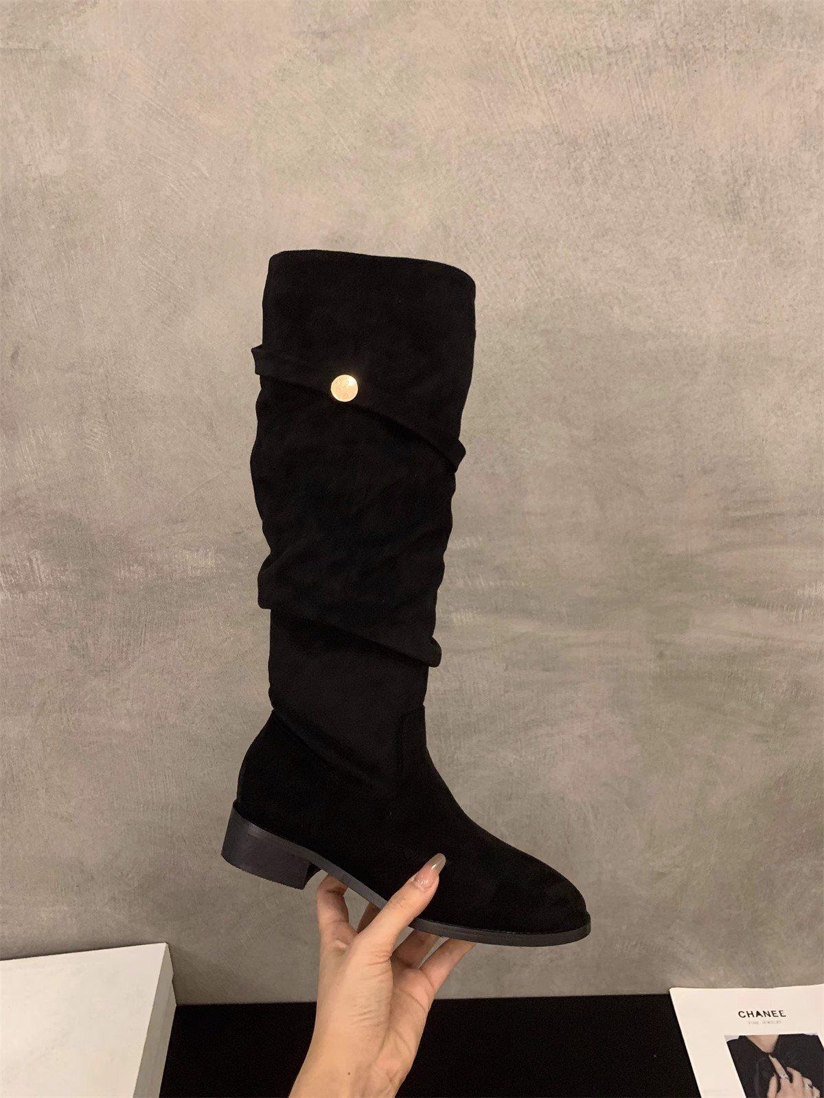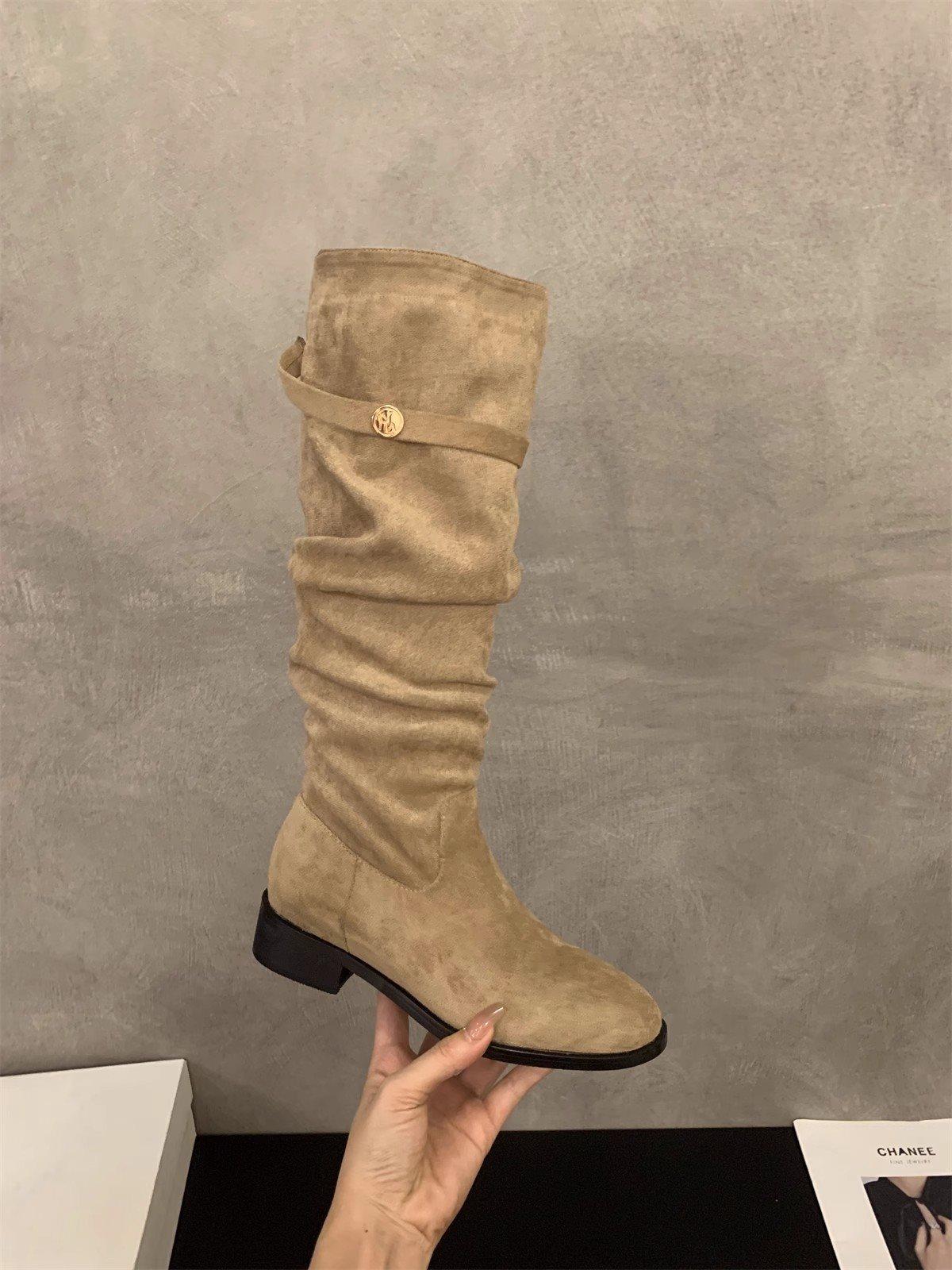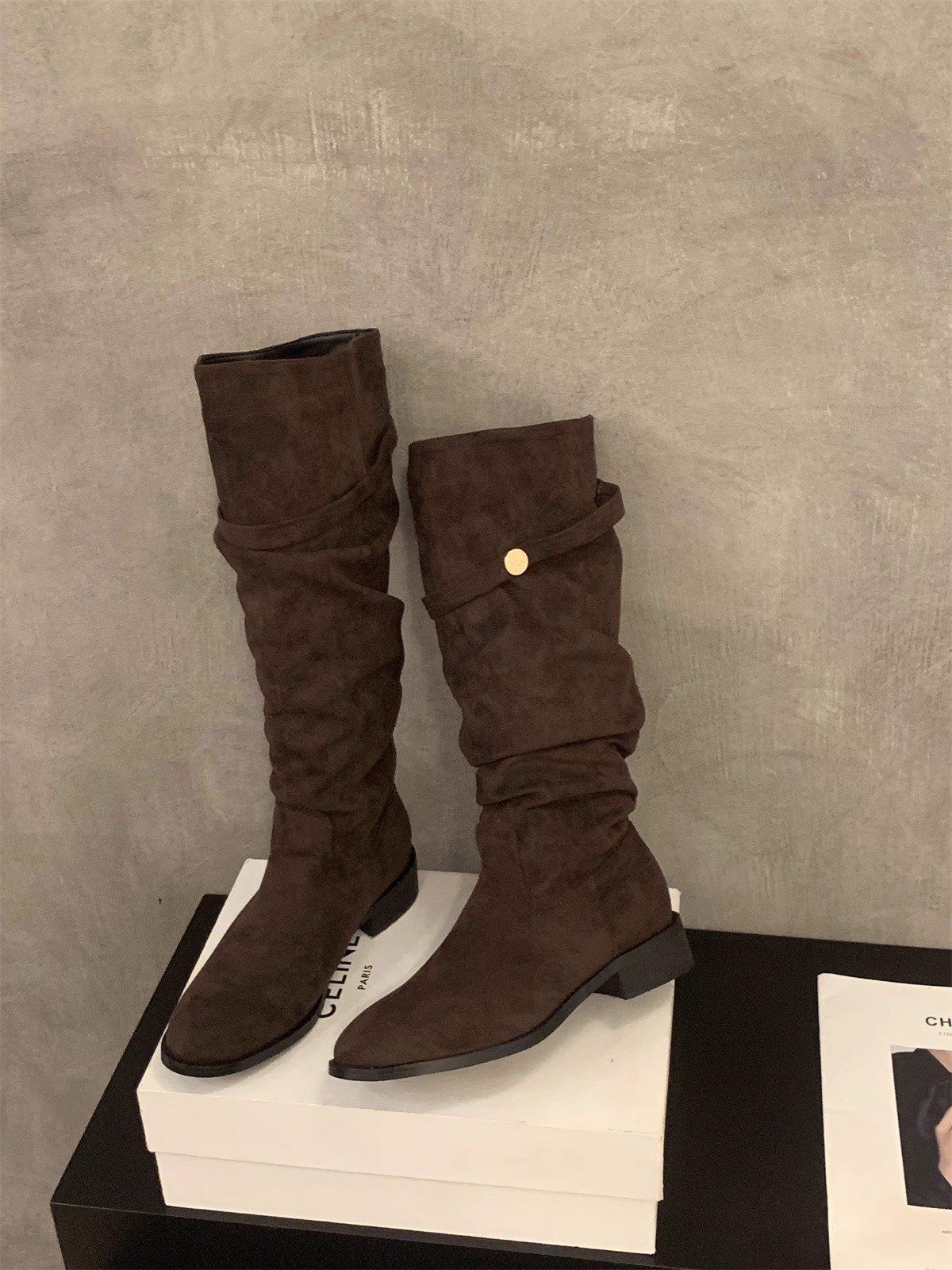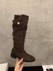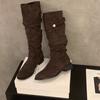 Botas hasta la rodilla skinny gamuza 2025 versátiles albaricoque tacón grueso invierno zapatos franceses botas largas de mujer nuevas slouchy primavera otoño
