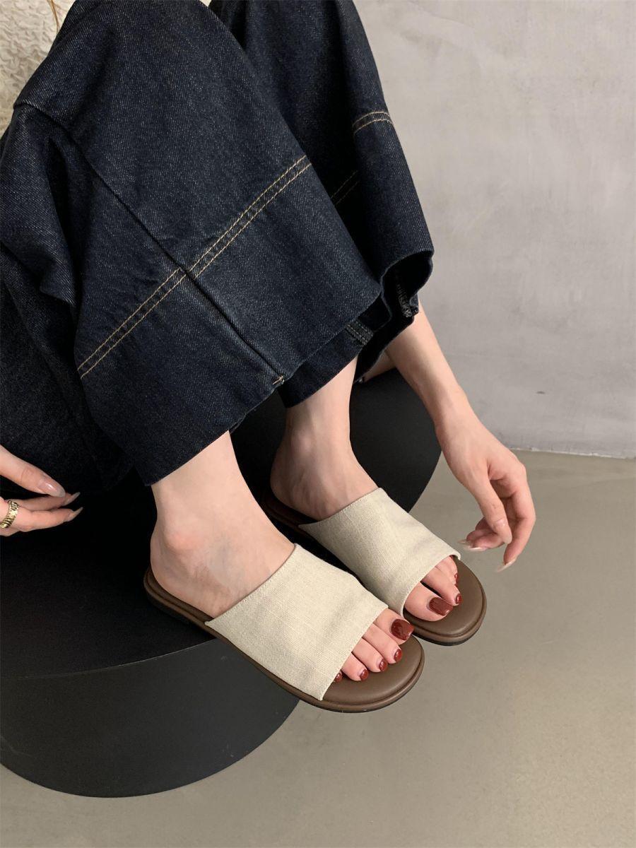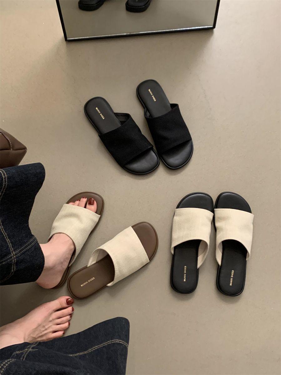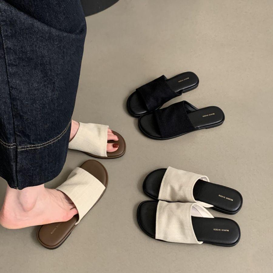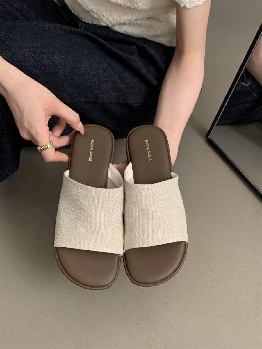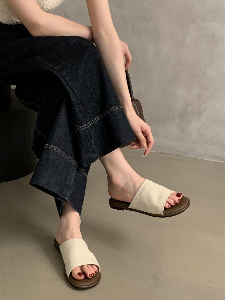 Pantuflas Mujer Verano Casual Hada Coreanas Sandalias Planas Retro Damas Zapatos de Playa Vacaciones Nuevo