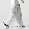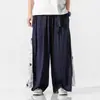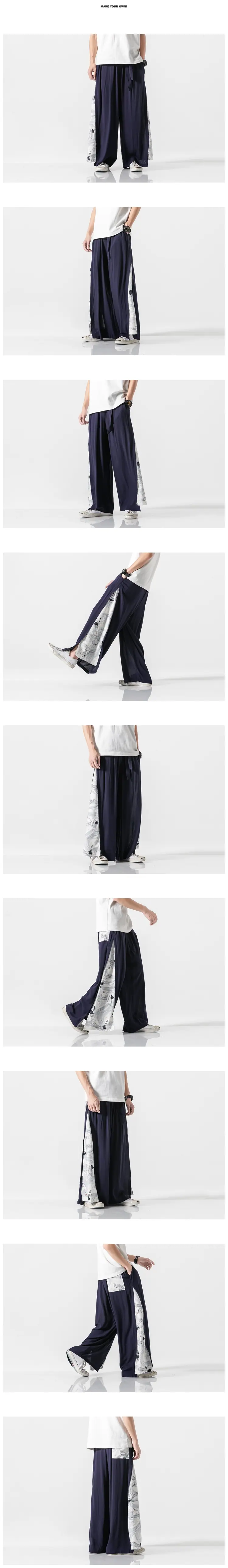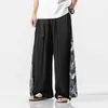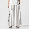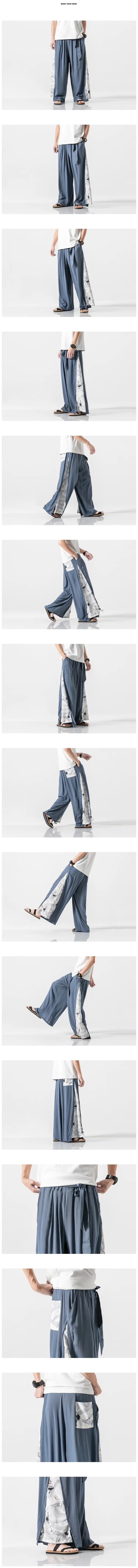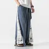 2019 Otoño e Invierno Nuevo Estilo Chino Algodón y Lino Estampado Pantalones Casuales de Hombre Retro Talla Grande Lino Sueltos Pierna Ancha