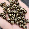 Piedra Jade Borde Amarillo Marfil Cuentas Dzi de Tres Ojos Jade Cuentas Sueltas Ágata Amarilla Negra Cuentas Redondas Pulsera Collar Accesorios de Joyería Cuentas de Jade Hechas a Mano