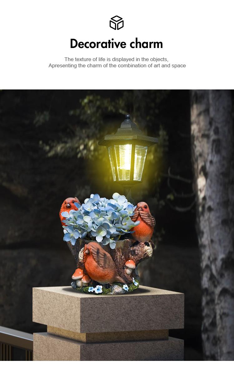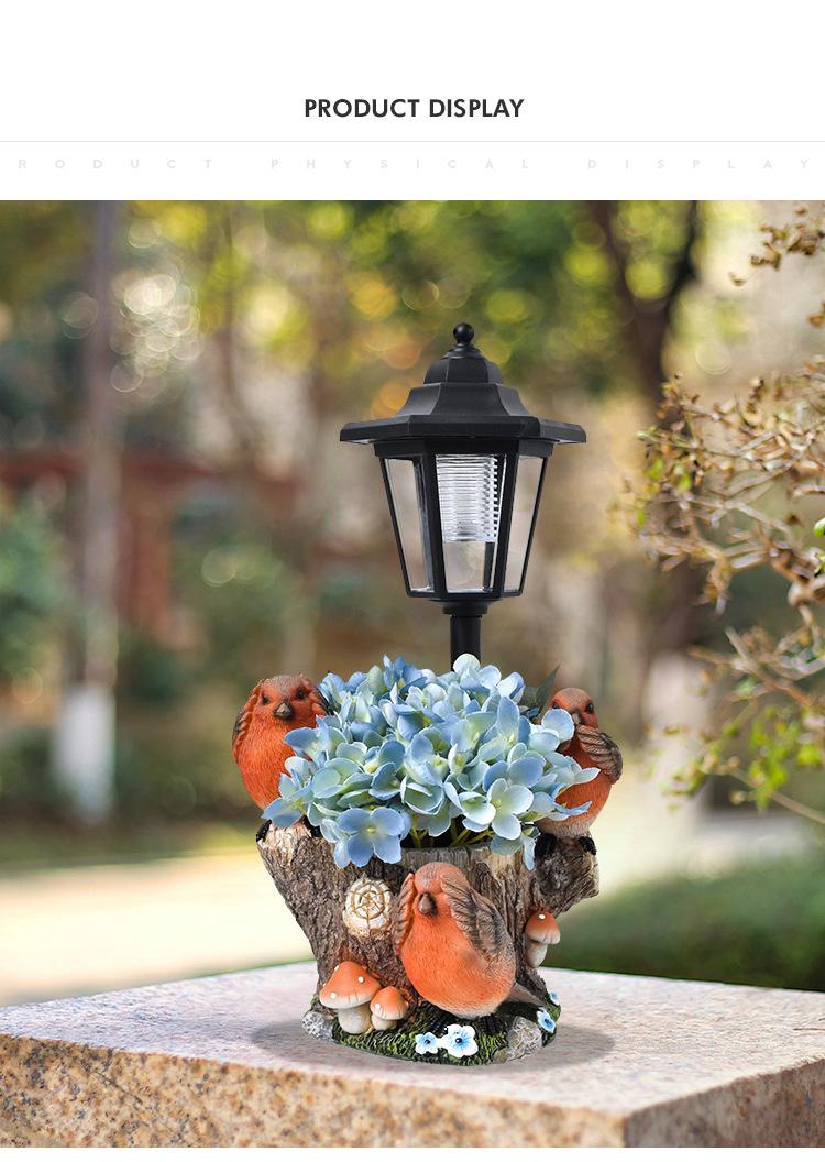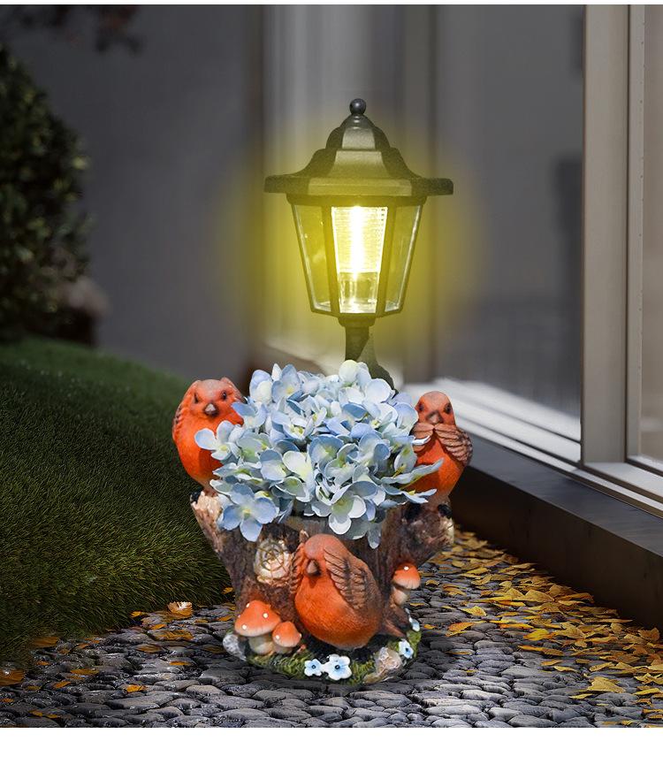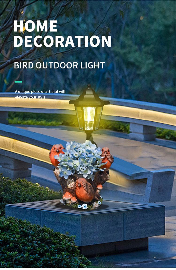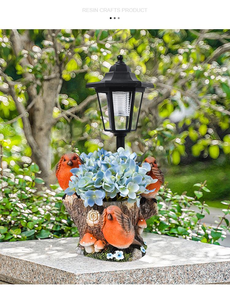 Maceta de resina creativa para pájaros y flores de gran venta transfronteriza, luz solar para exteriores, estatua, adornos, camino de patio, decoración del hogar