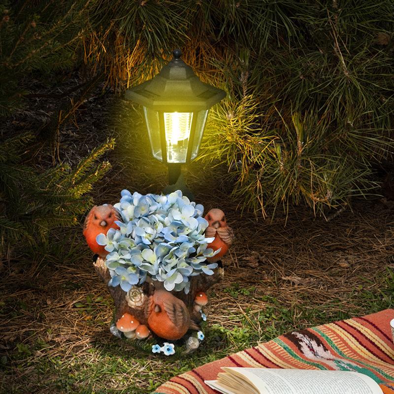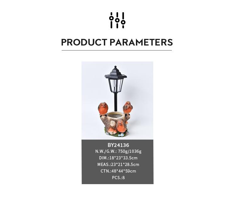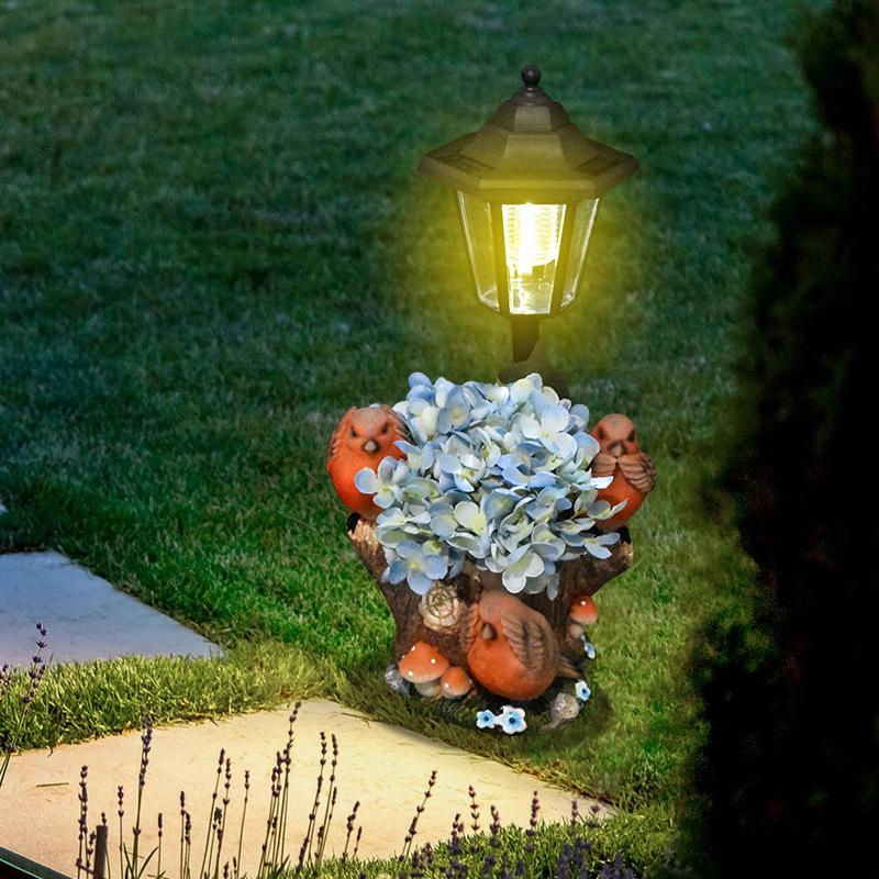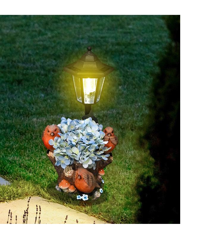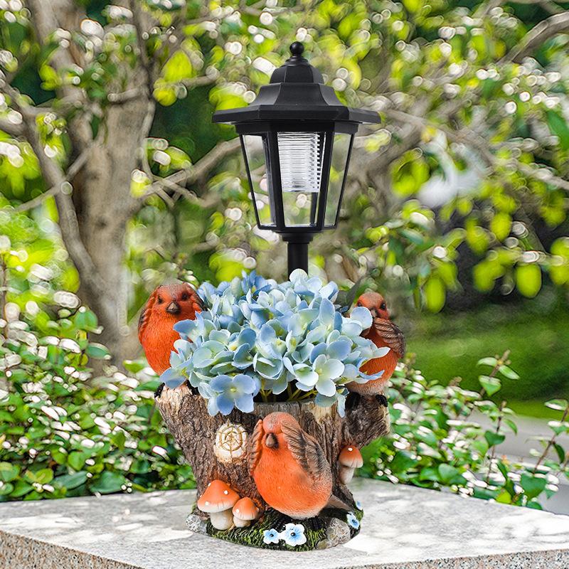 Maceta de resina creativa para pájaros y flores de gran venta transfronteriza, luz solar para exteriores, estatua, adornos, camino de patio, decoración del hogar