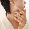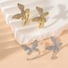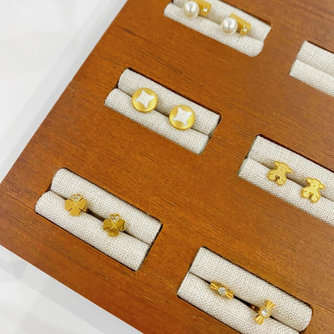 Nuevos Aretes de Acero de Titanio Chapado en Oro de 18K con Patrón de Oso de Seda Durazno, Exquisitos, de Nicho, Versátiles, para Niñas